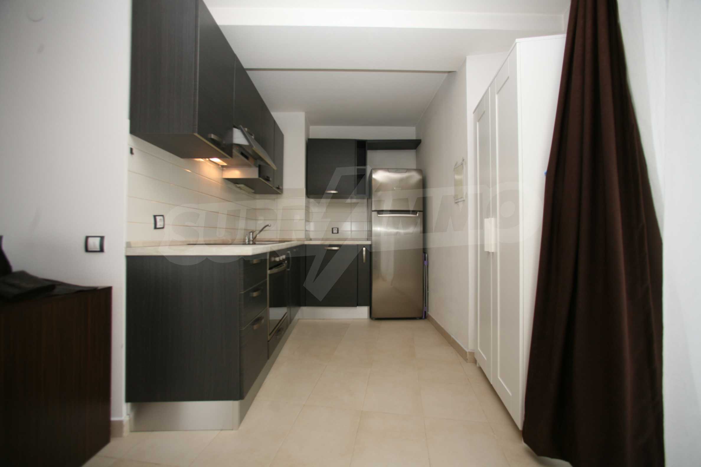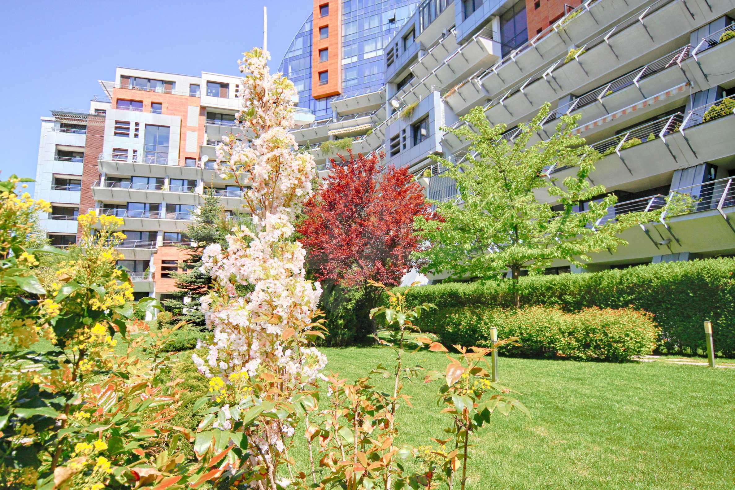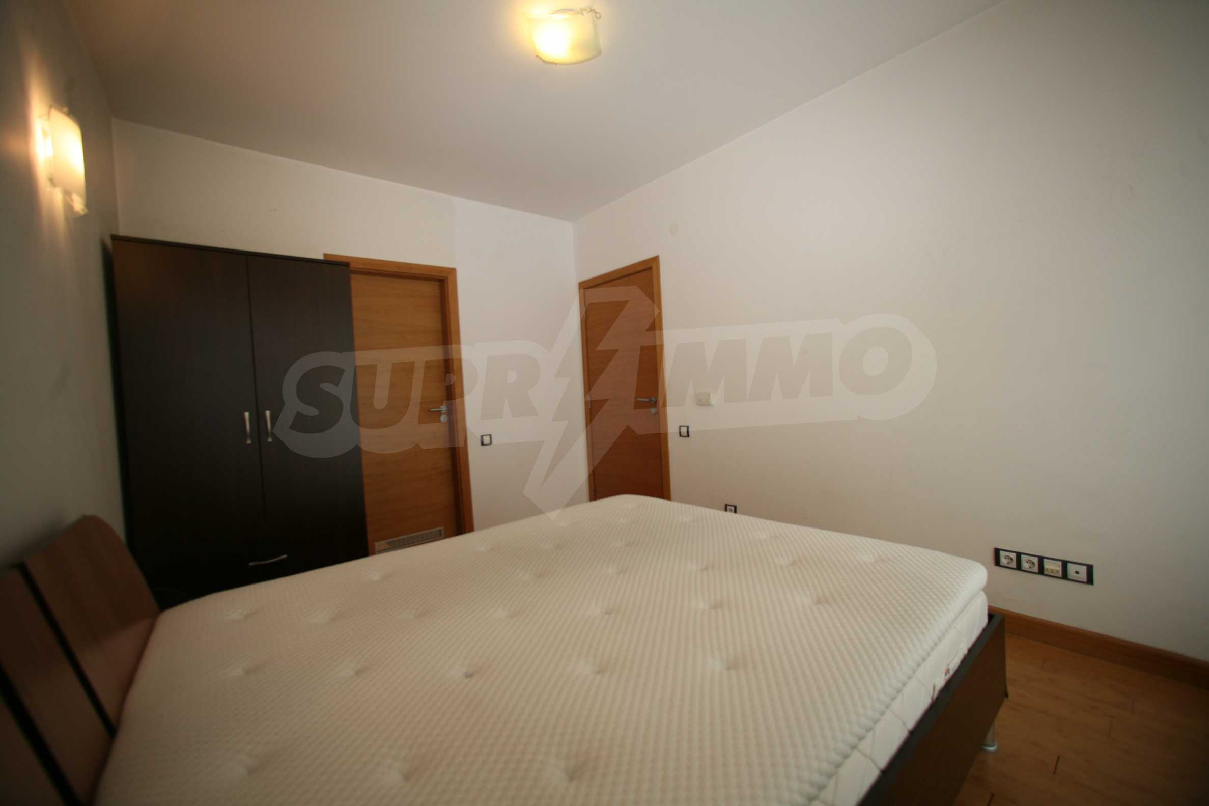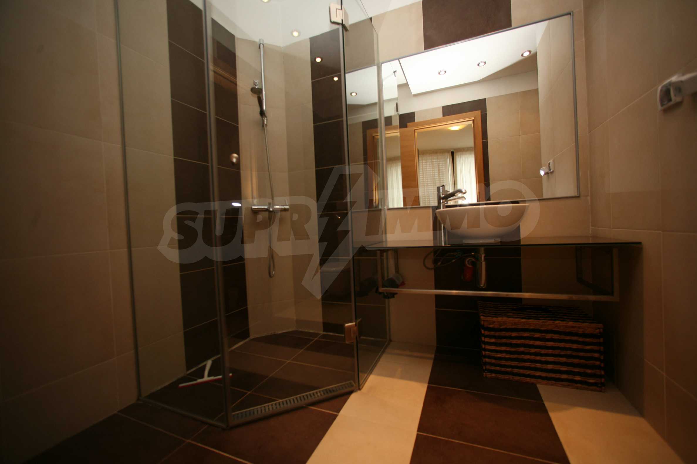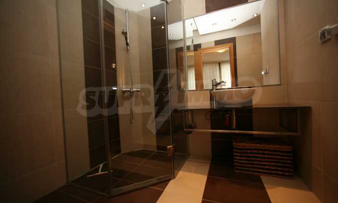 We offer you this 1-bedroom apartment with a total area of 87 m2 which is situated in a gated development. It was constructed in 2011 and has luxury common parts. The property has local heating. Aluminium window frames, external insulation, interior doors, latex painted walls, parquet flooring and tiled flooring are available in the property. The property is connected to electricity, gas heating, water and communal sewage system. Some of the other available facilities that you will certainly consider important include: a balcony, a bathroom with toilet, an internal bathroom, an internal toilet, a parking space, a storage room, a gym, a lift, a porter, a swimming pool, internet and a wi-fi. From the inside you will be able to enjoy wonderful town views.