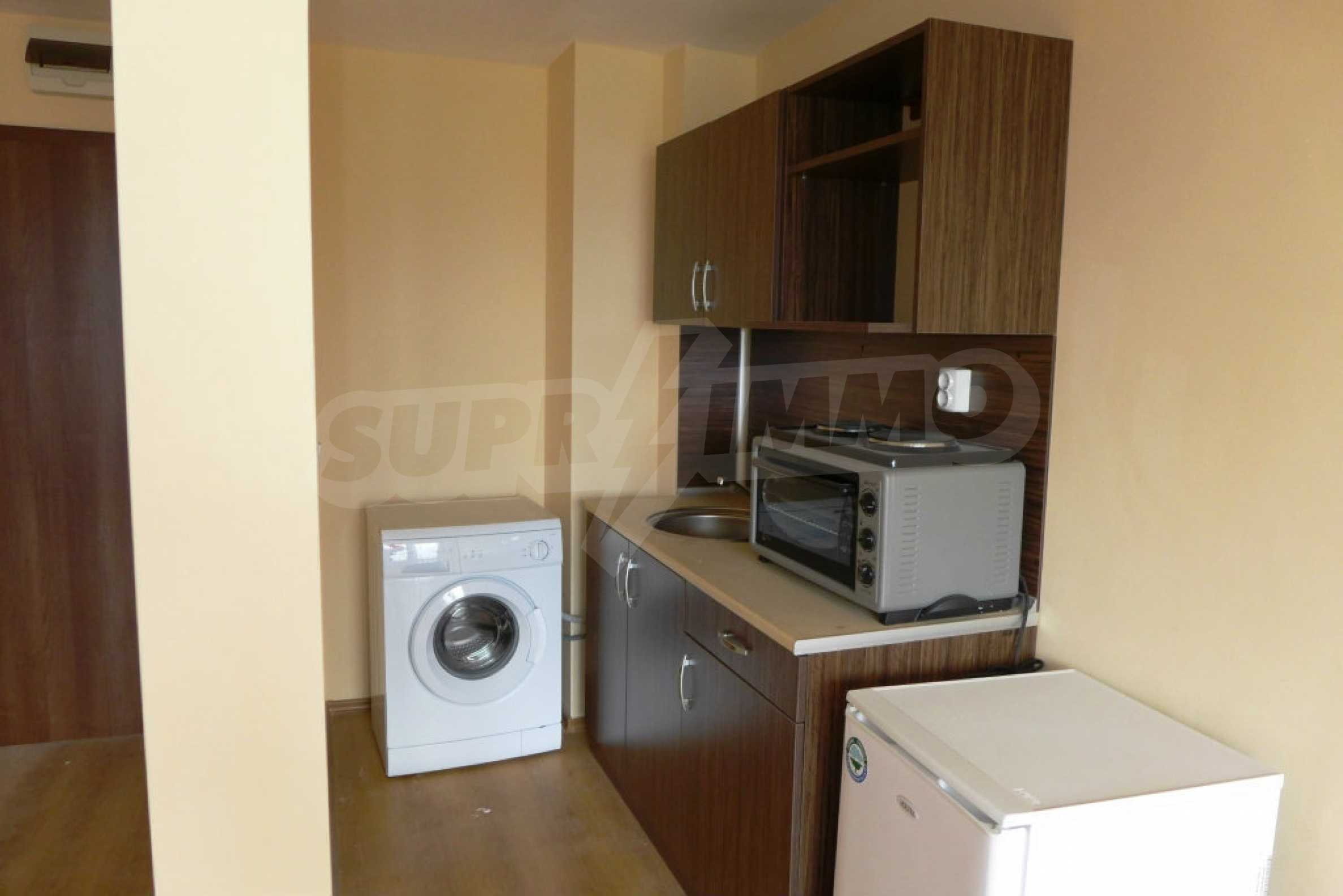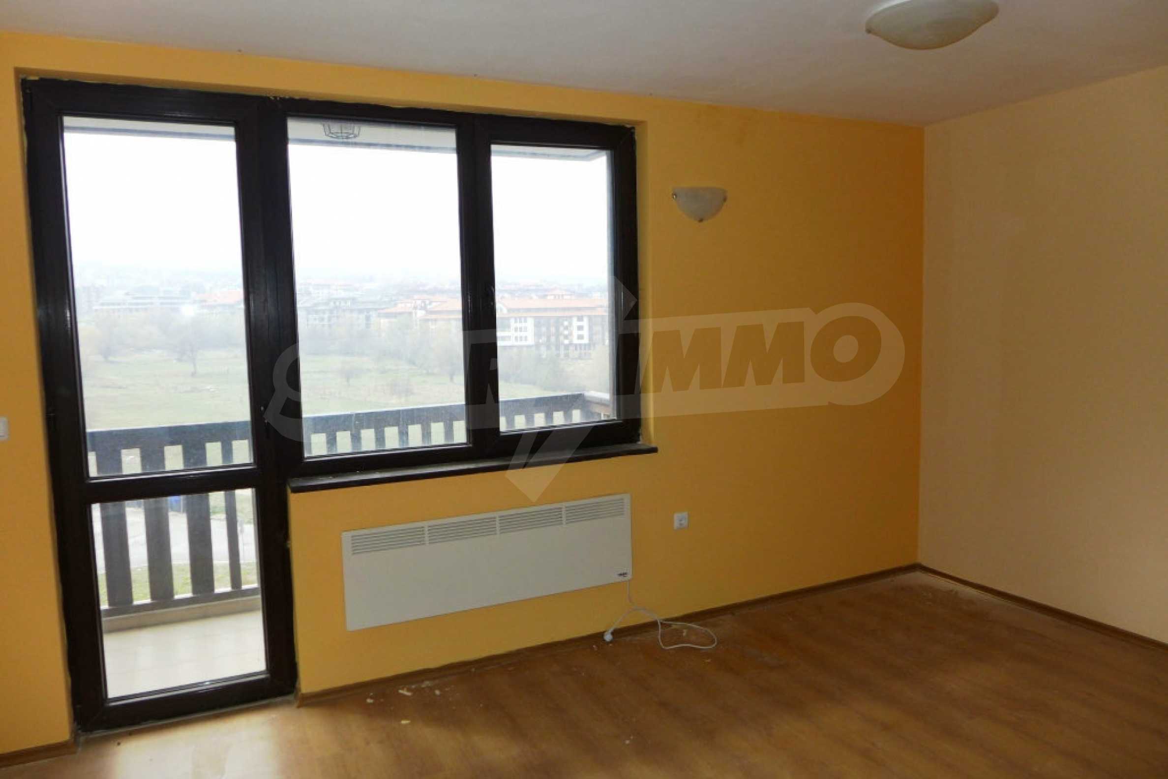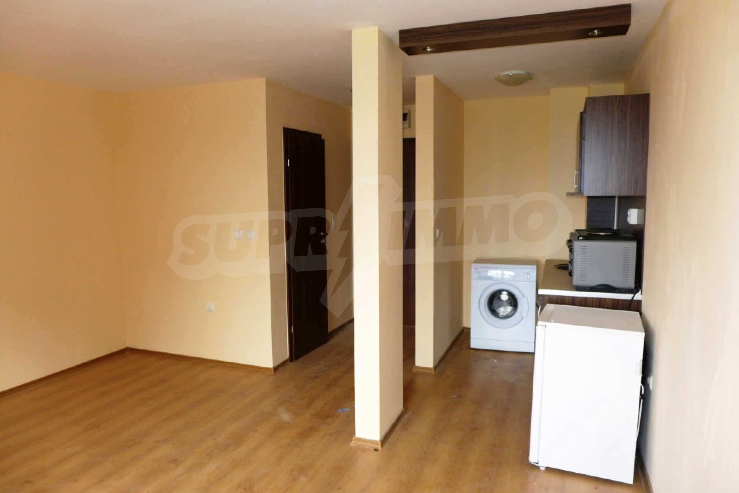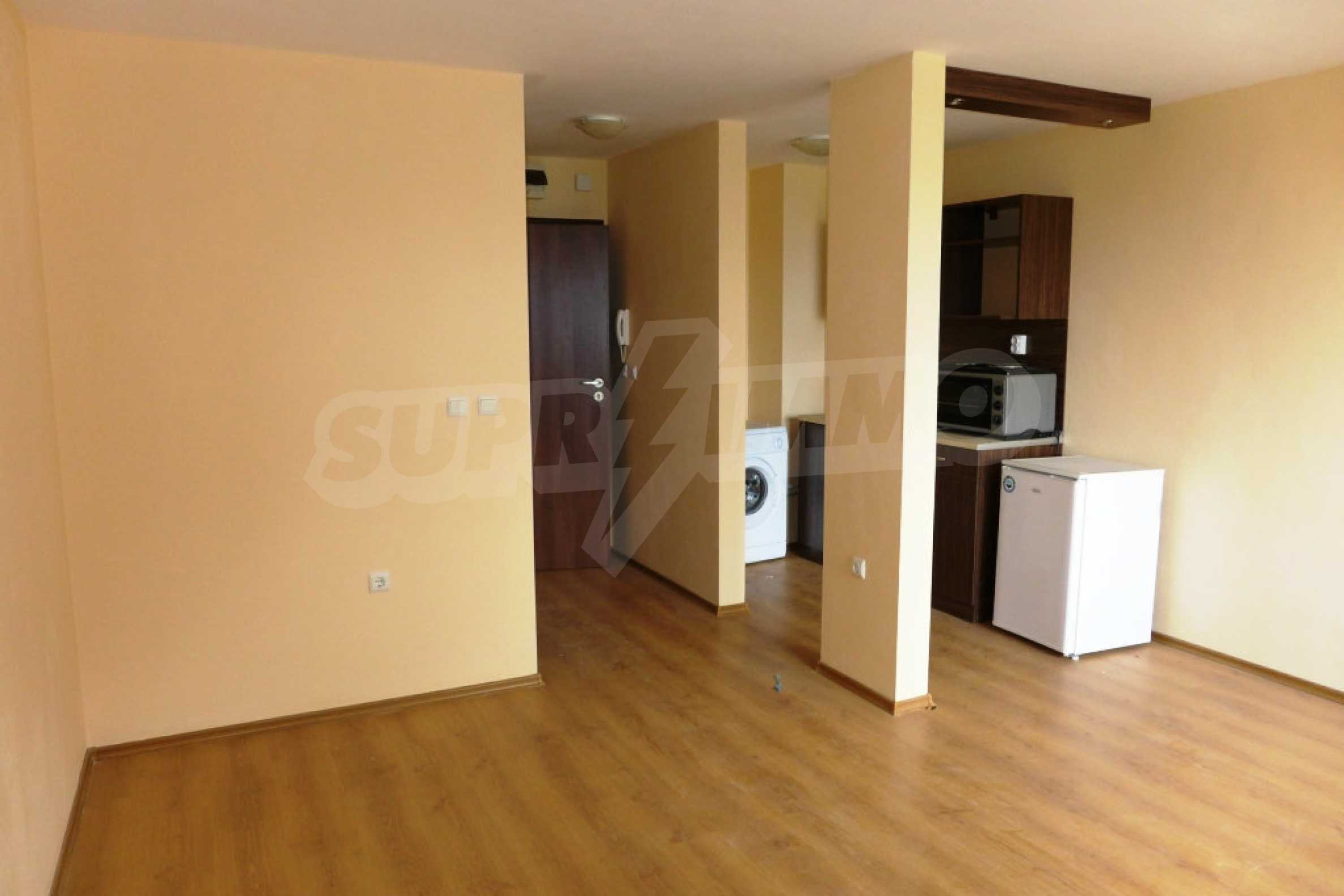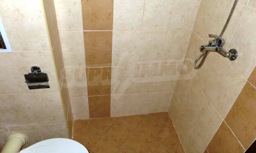 The apartment is facing south. It is located on the second floor. Its total area is 42.27 sq.m., living area - 34.66 sq.m. The kitchen is equipped with a stove, a sink, a refrigerator, a washing machine. The bathroom with WC - a shower, a sink, a mirror. The property is equipped with telephone, cable TV, internet. The flooring is with laminate, the walls are painted, the windows - with PVC joinery.
