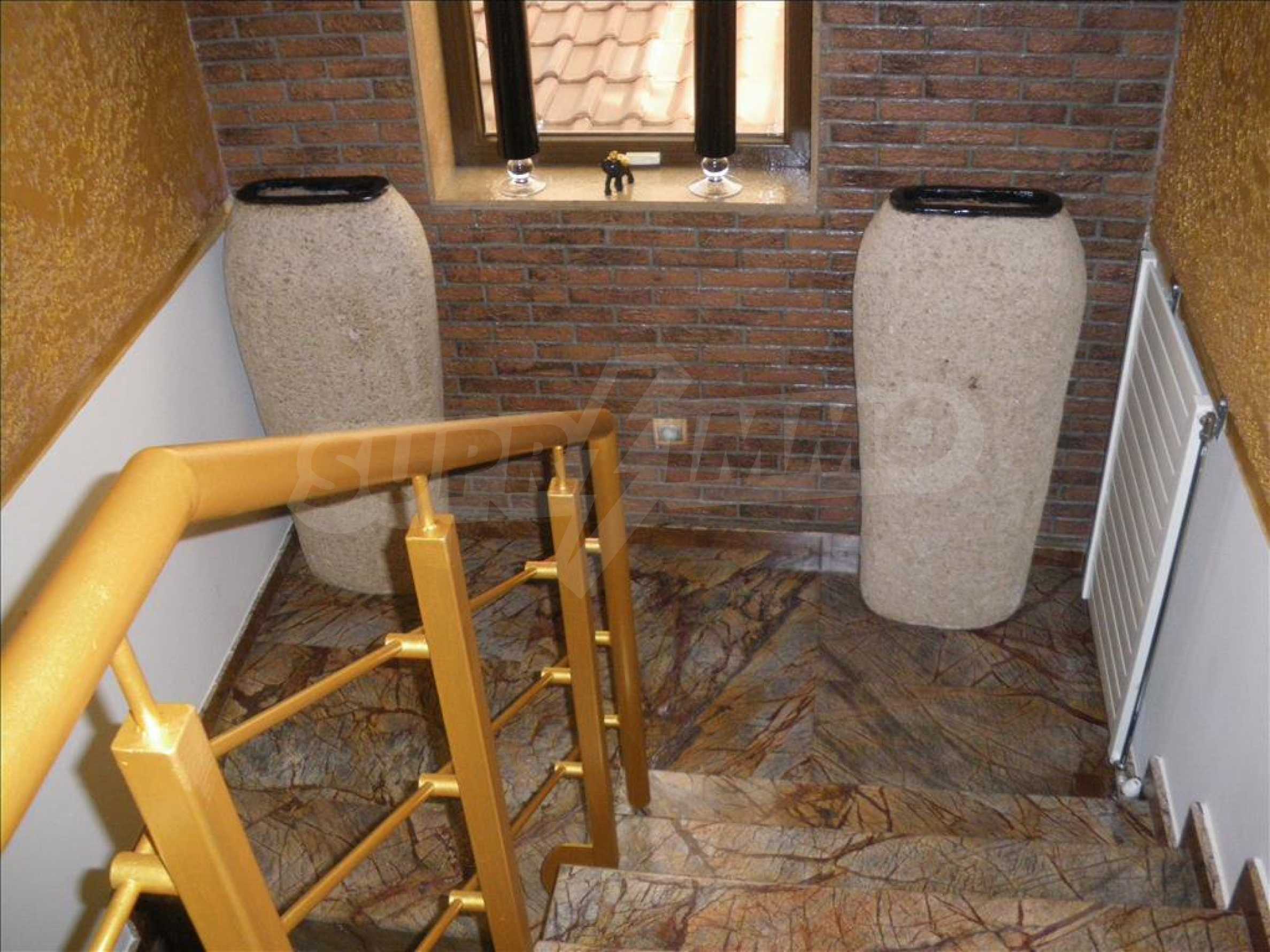 We offer you this villa with a total area of 190 m2. It was constructed in 2006. The property has fireplace and local heating. An air-conditioning system - also available. Parquet flooring, tiled flooring and upvc window frames are available in the property. The property is connected to electricity, communal water supply and communal sewage system. Some of the other available facilities that you will certainly consider important include: a balcony, a balcony, a bathroom, a bathroom with toilet, a garage, a storage room, a veranda and internet. From the inside you will be able to enjoy wonderful forest views and town views.