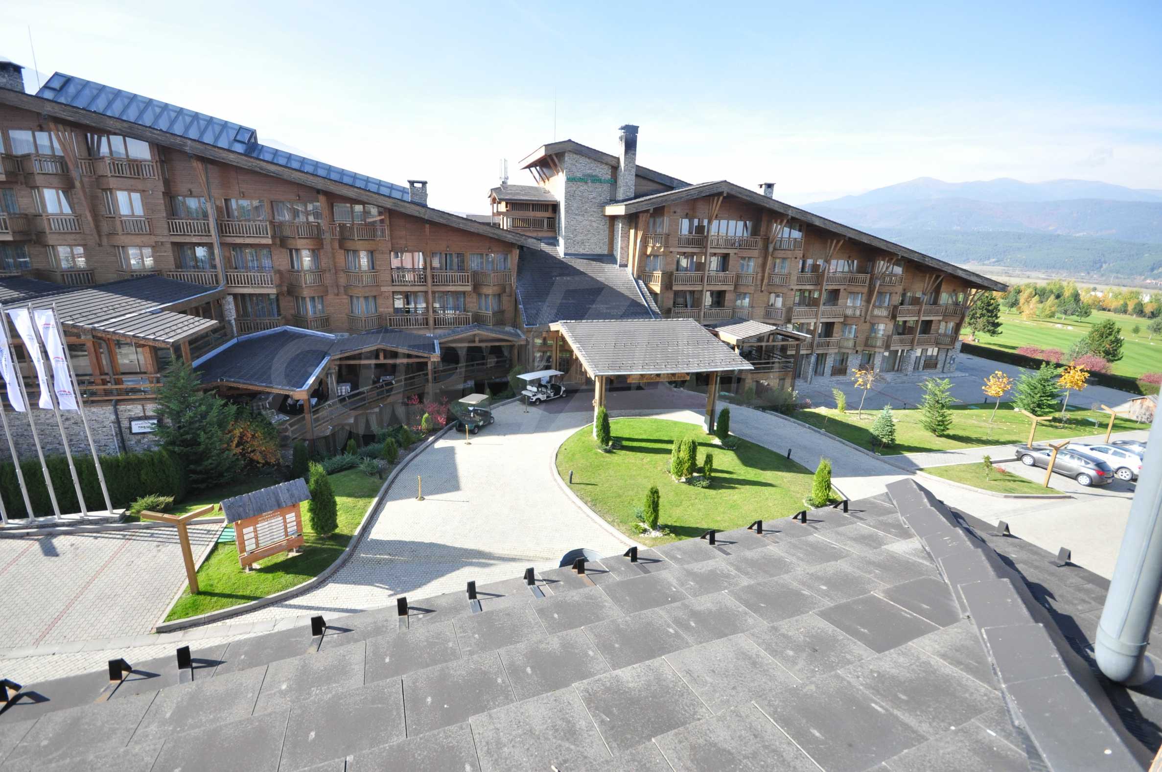 The Pirin Golf & Country Club complex is located at the foot of the Pirin Mountain, in proximity to a lovely artificial lake, in an area with complete and well-maintained infrastructure. The basic services and amenities in Pirin Golf & Country Club include parking lot, 24-hour security, unlimited opportunities for entertainment and sports (golf, skiing, mountain biking, ATV & hiking trails, horseback riding, tennis, billiards, bowling). At the territory of the complex you can organize your business meetings, seminars, cocktails. The great variety of bars and restaurants, as well as SPA and wellness treatments will ensure many unforgettable moments spent here in the company of your family and friends.