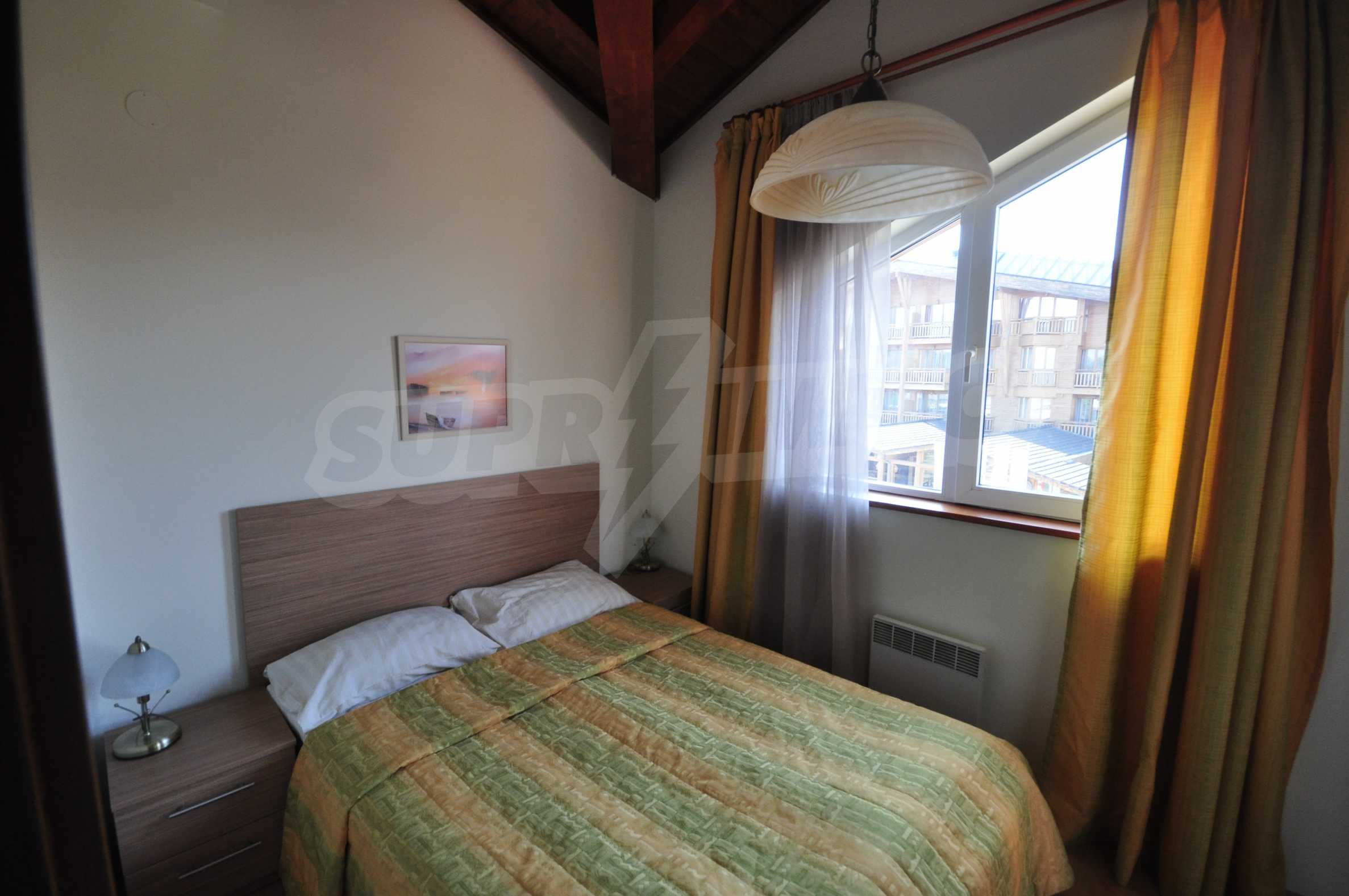 We present for sale a wonderful one-bedroom with spacious living area and beautiful views of the golf course, the mountains and the inner yard of the complex. The apartment is a part of Pirin Golf & Country Club complex (Downtown area) - an impressive 5-star holiday apart-hotel, located near the world class golf course, designed by Ian Woosnam. The complex covers an area of 150 hectares and is placed near Bansko (8 km), the most modern ski resort on the Balkans. It is set in the beautiful Razlog valley, surrounded by three of the most beautiful mountains - Rila, Pirin and Rhodope Mountains, just 12 km from the thermal springs in Banya village, 3 km from the town of Razlog, 150 km from the coast of the Aegean Sea and 160 km from the capital Sofia. Pirin Golf & Country Club is an exclusive complex, offering wonderful opportunities for recreation, as well as for skiing, golf or relaxing spa treatments.
