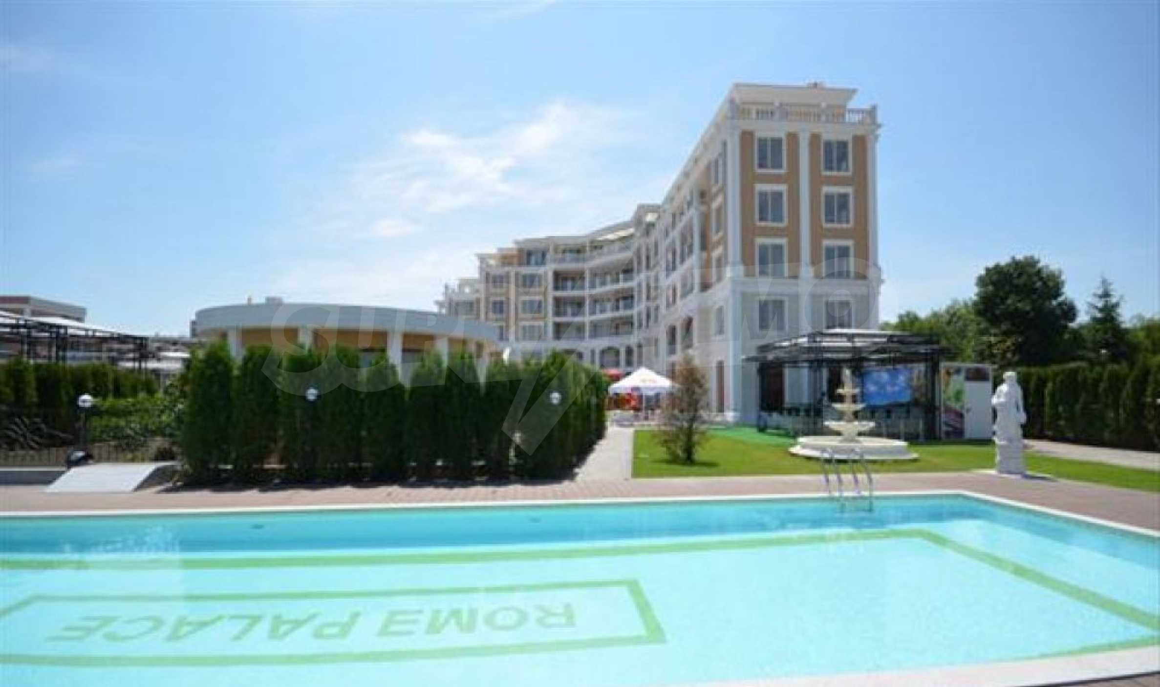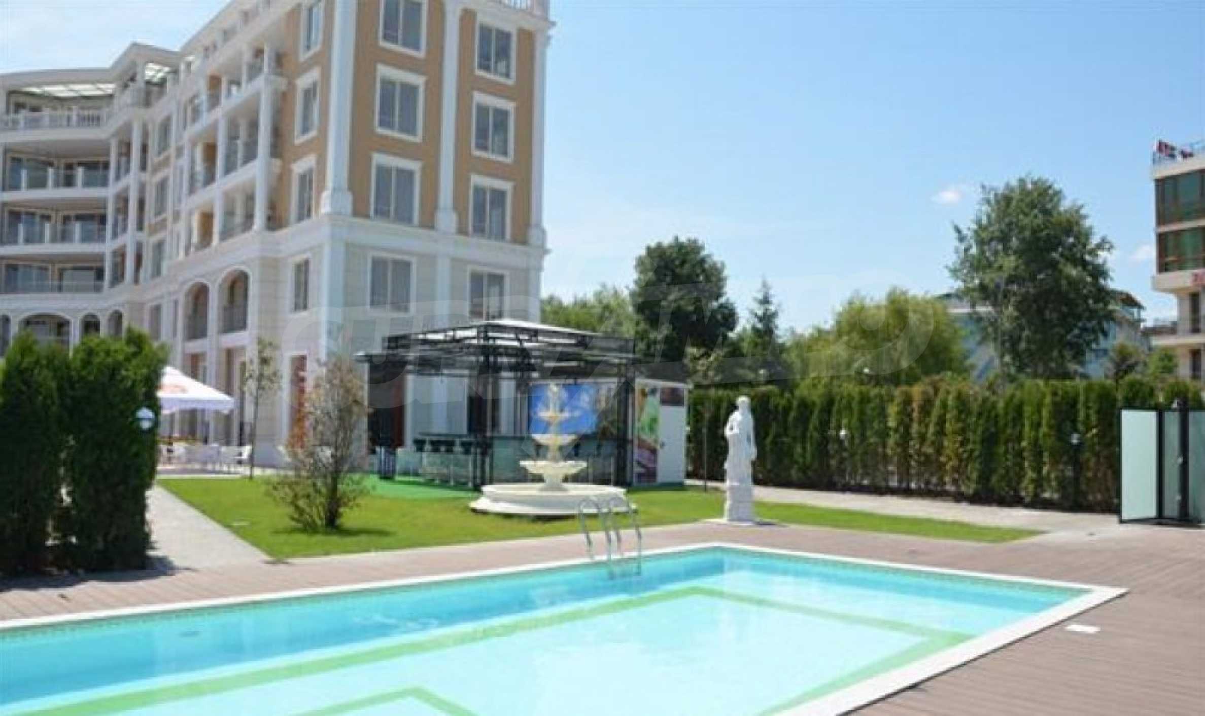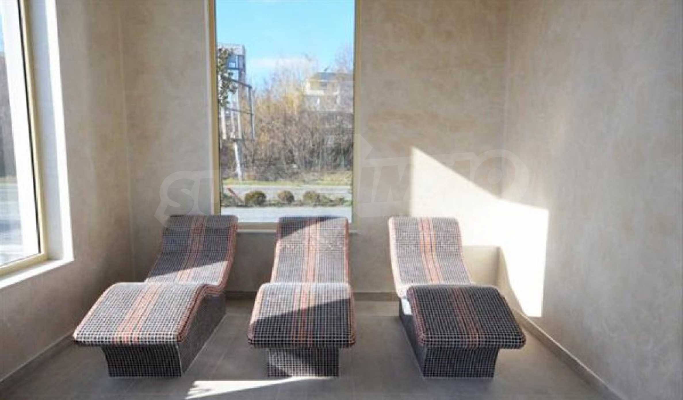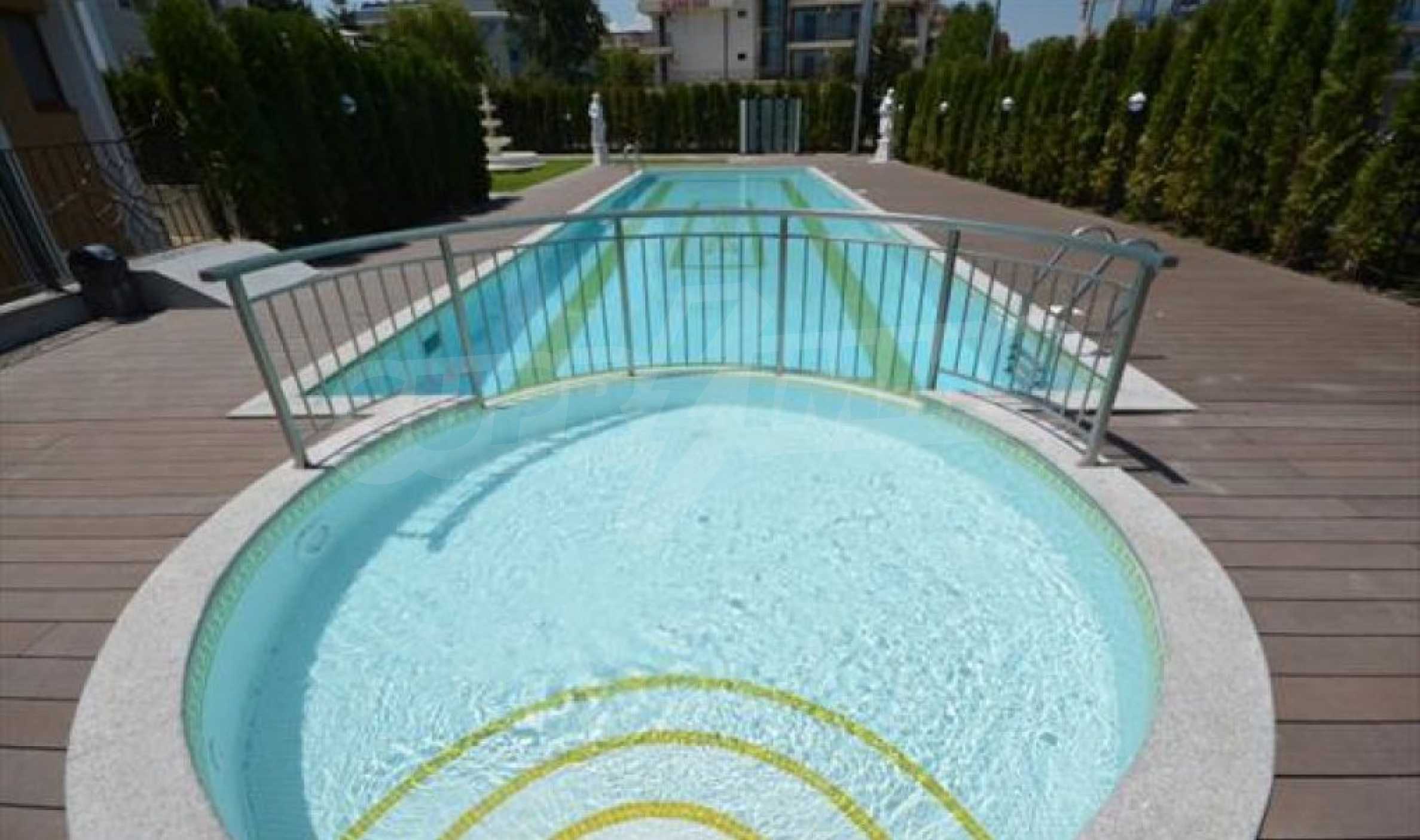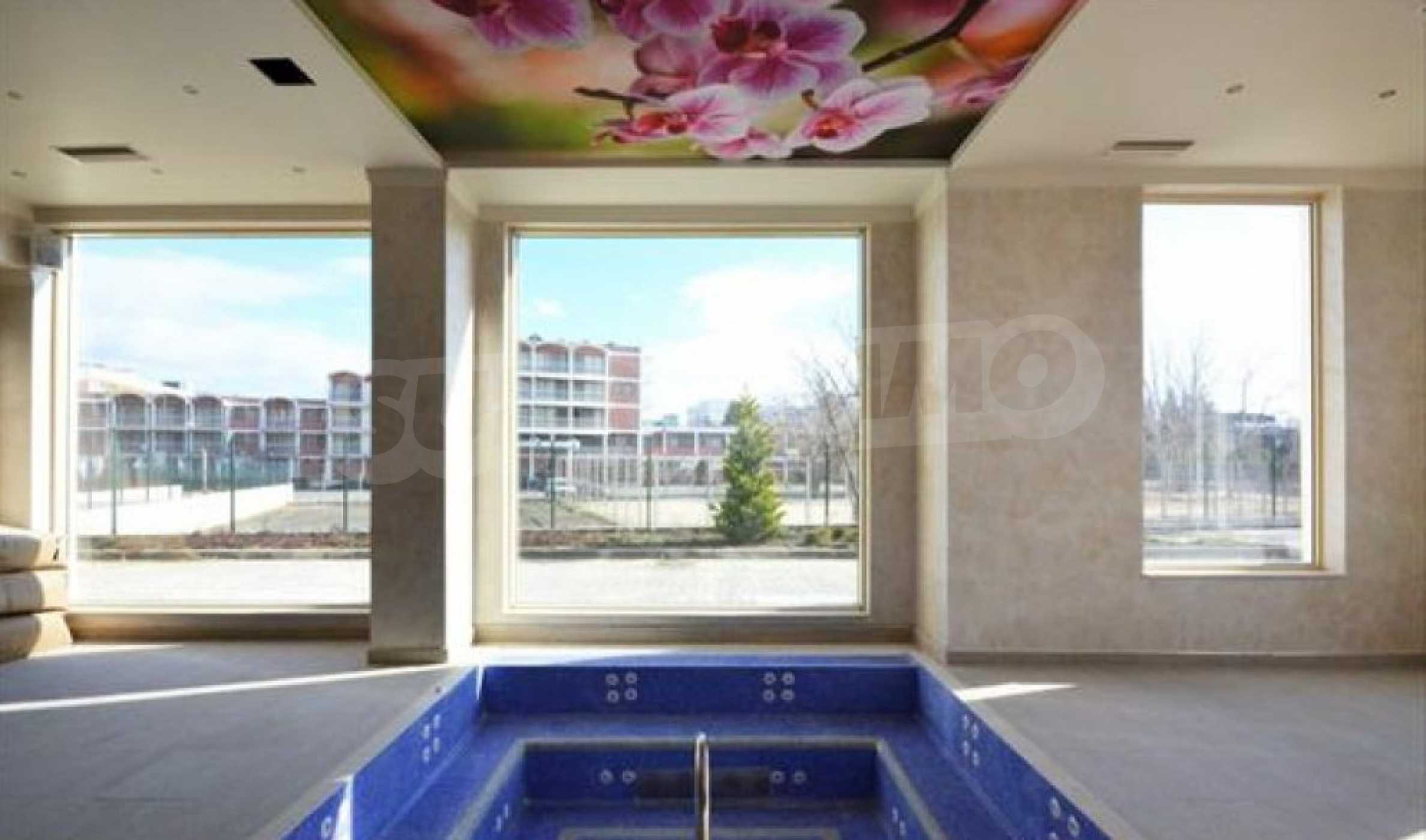 We offer you this apartment with a total area of 60 m2 which is situated in a gated development. It was constructed in 2015 and has luxury common parts. An air-conditioning system - also available. External insulation, internal insulation, laminate flooring, tiled flooring and upvc window frames are available in the property. The furniture and appliances that are available include: an air-conditioner, a fully fitted bathroom and a shower box. The property is connected to electricity, communal water supply and communal sewage system. Some of the other available facilities that you will certainly consider important include: a balcony, a balcony, a bathroom with toilet, a parking space, a jacuzzi, a lift, a porter, a sauna, a swimming pool, a cable tv, internet, a satellite tv, a secure entry system, a telephone line and a wi-fi. From the inside you will be able to enjoy wonderful town views and views to inner garden.