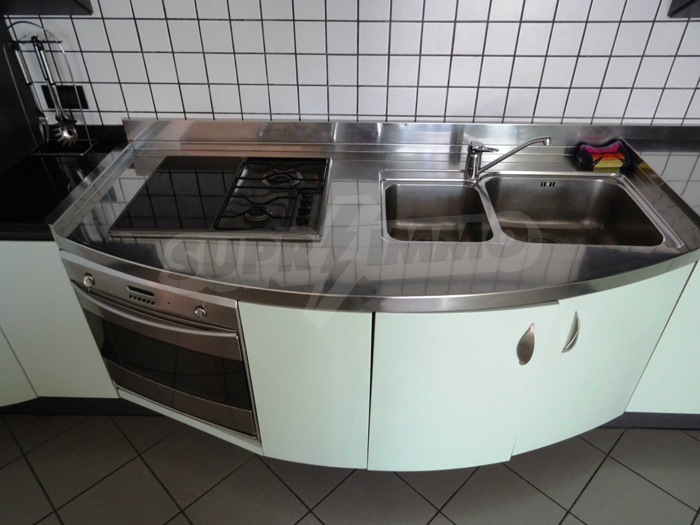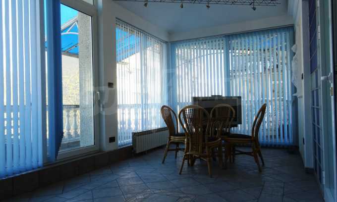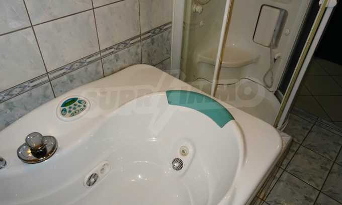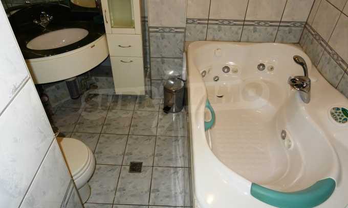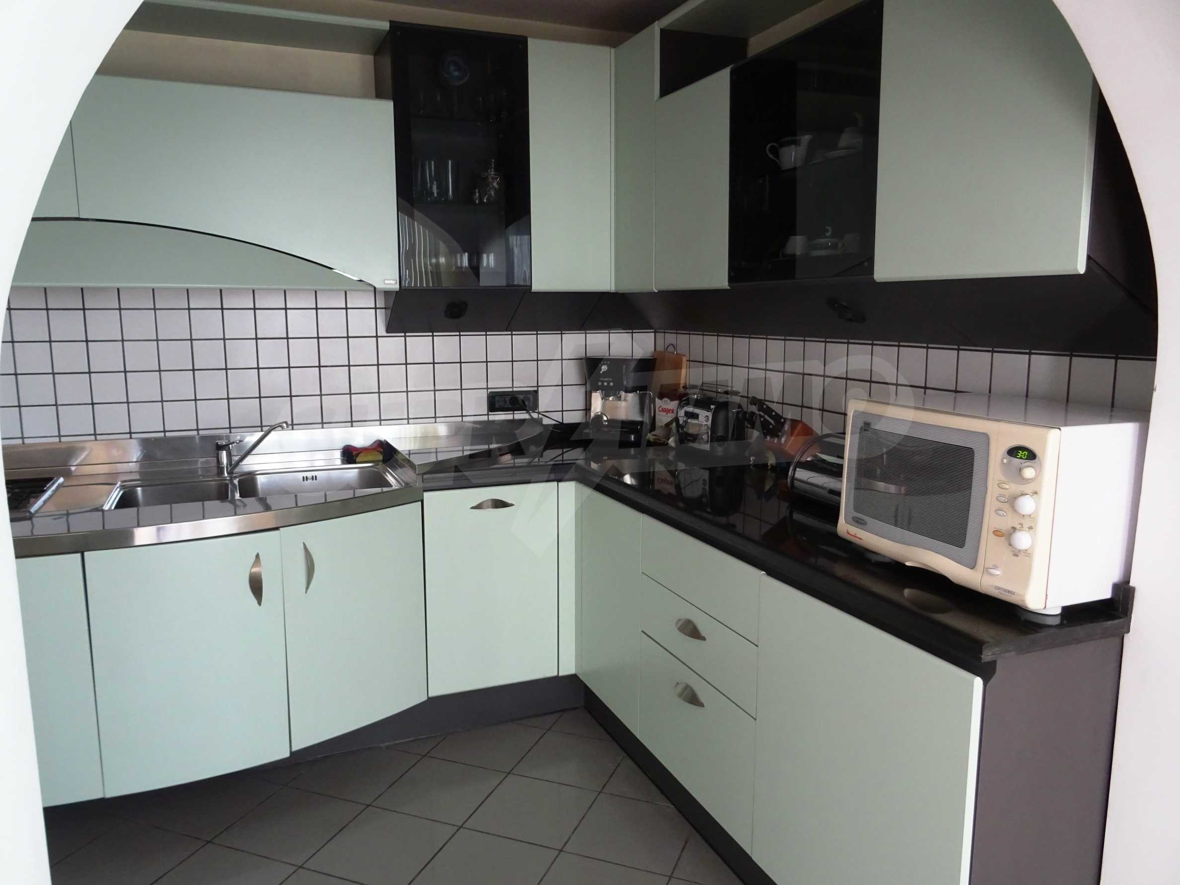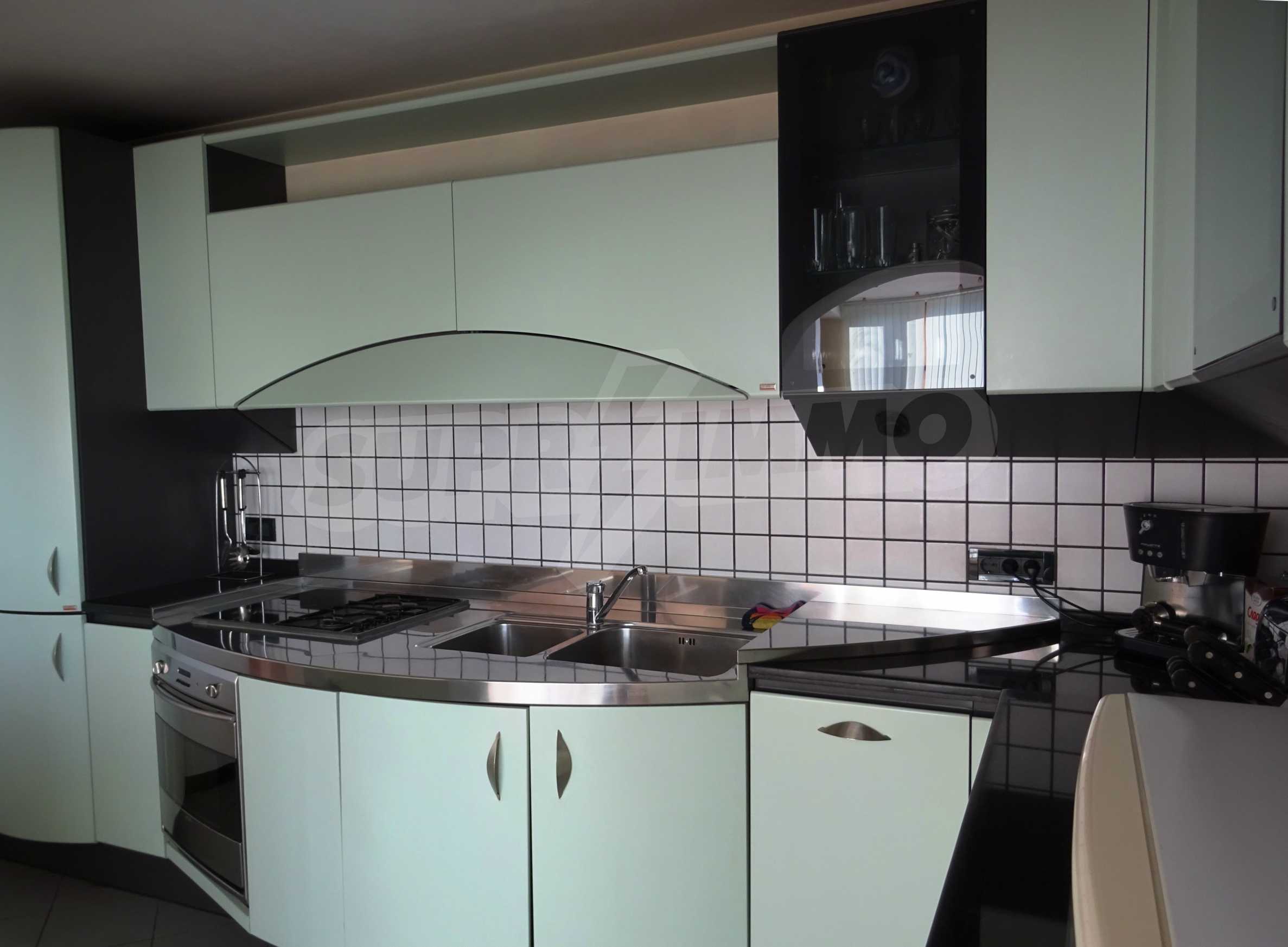 On an area of 173 sq.m, there is a spacious living room with kitchenette and breathtaking views to the sea and the Greek district, master bedroom with winter garden and a terrace, children's room with two single beds and a balcony, bathroom with Jacuzzi and shower cabin, toilet, laundry room and boiler room and a hallway.