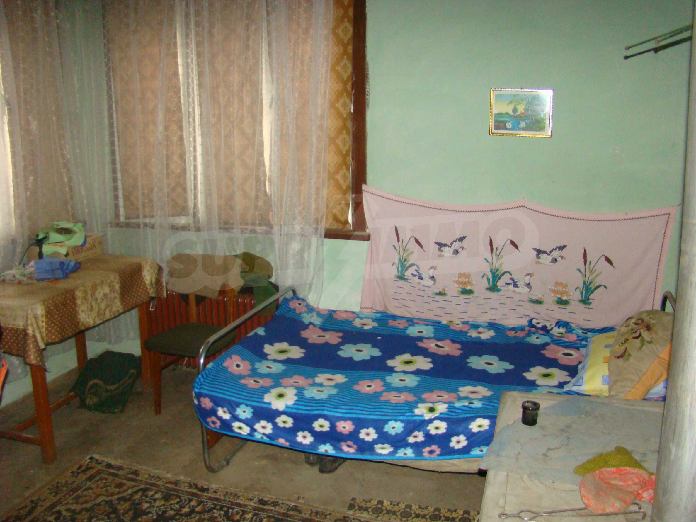 1-storey solid house near the center of Gradets village, 10 km from Vidin. The property includes a garden of 835 sq.m., a basement (20 sq.m.), a summer kitchen (47 sq.m.), a garage (18 sq.m.) and a two-storey outbuilding (60 sq.m.).