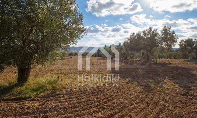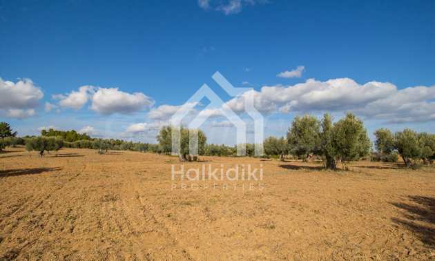 Field in Kassandra, Halkidiki, on a perfect spot close to the new highway of Kassandra. The field is 115558 sqm, complete and buildable and ideal for the construction of a detached house or even some smaller houses. It is slanted and has a large facade to a street.