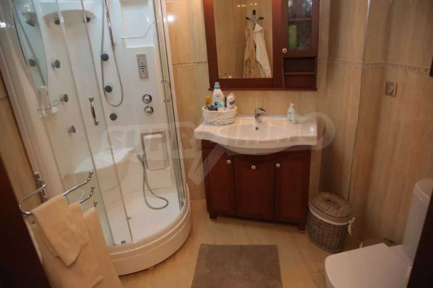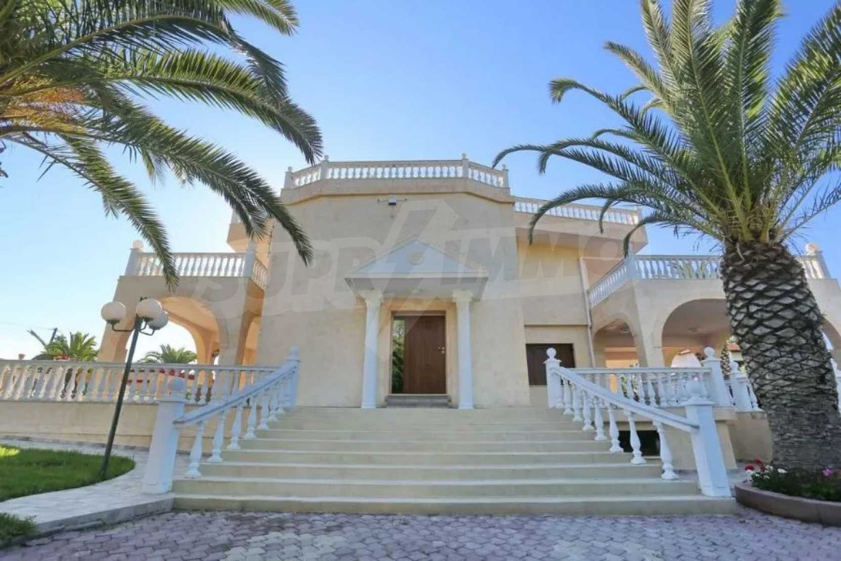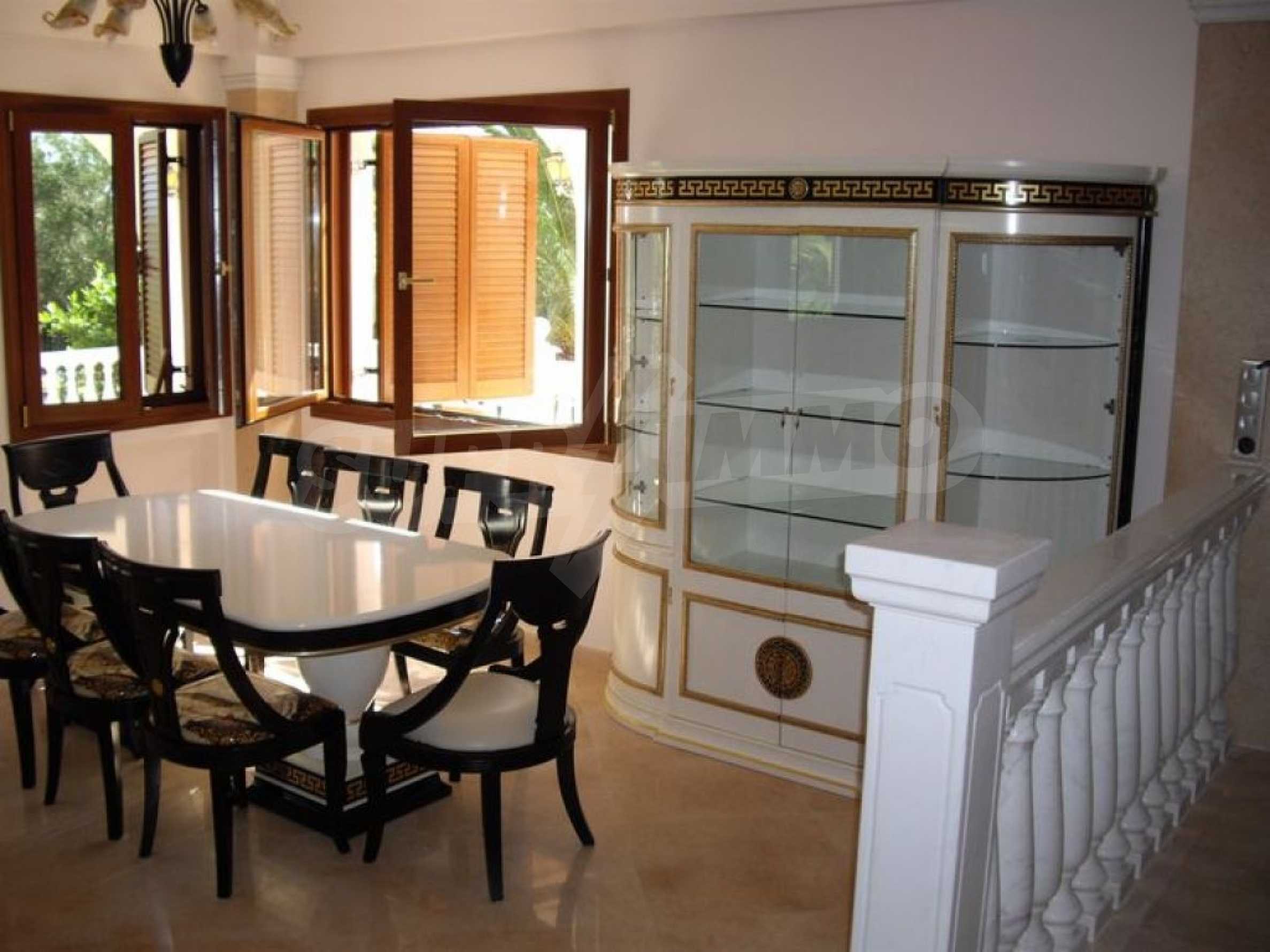 We offer you this villa with a total area of 350 m2. It was constructed in 2006. The property has fireplace, local heating and solar panels. An air-conditioning system - also available. Aluminum joinery and armored front door are available in the property. The property is connected to communal sewage system. Some of the other available facilities that you will certainly consider important include: a balcony, a bathroom with toilet, a garage, a parking space, a storage room, a jacuzzi and a secure entry system. From the inside you will be able to enjoy wonderful sea views.