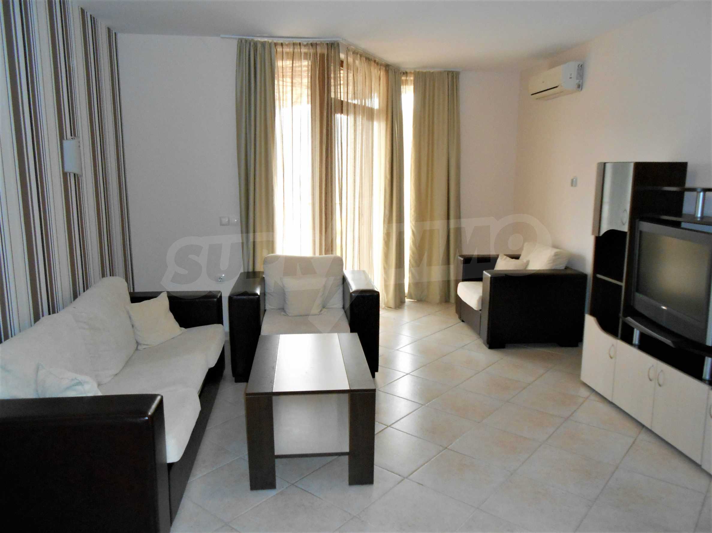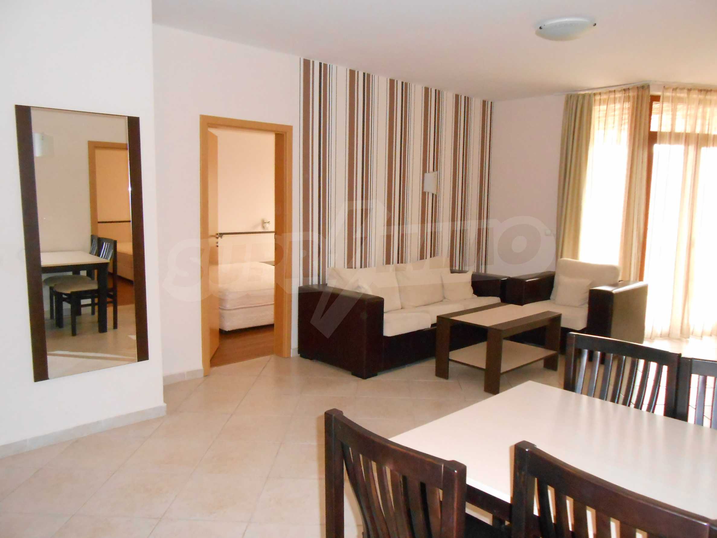 We offer for sale a ready to move in two-bedroom apartment in Laguna Beach gated complex, just 3 km from Sozopol, 43 km from Burgas airport, on the main road Burgas-Sozopol, at the exit to the beautiful coastal town and 50 m from the beach Goldfish.