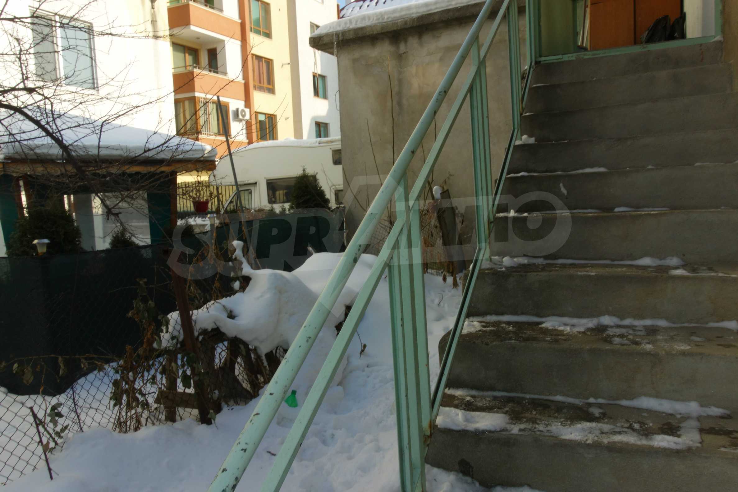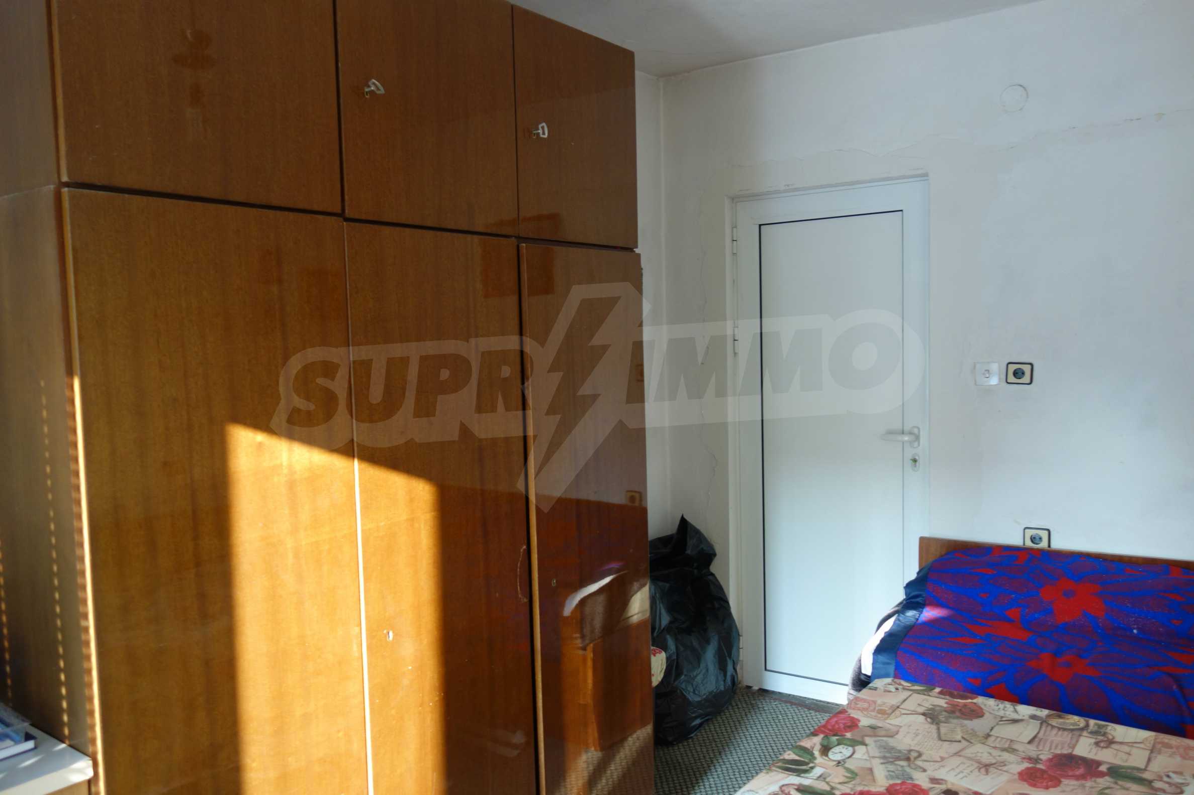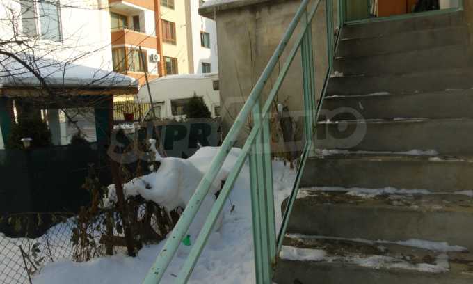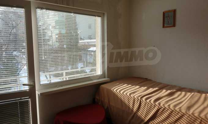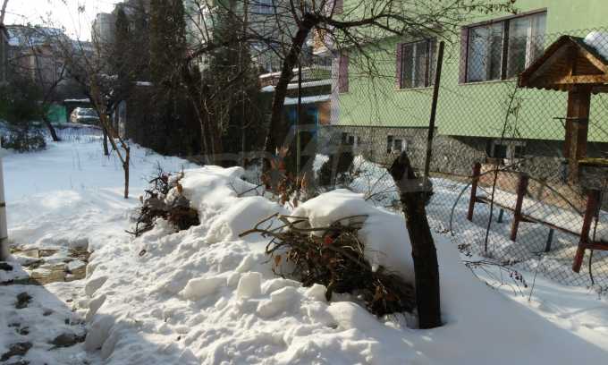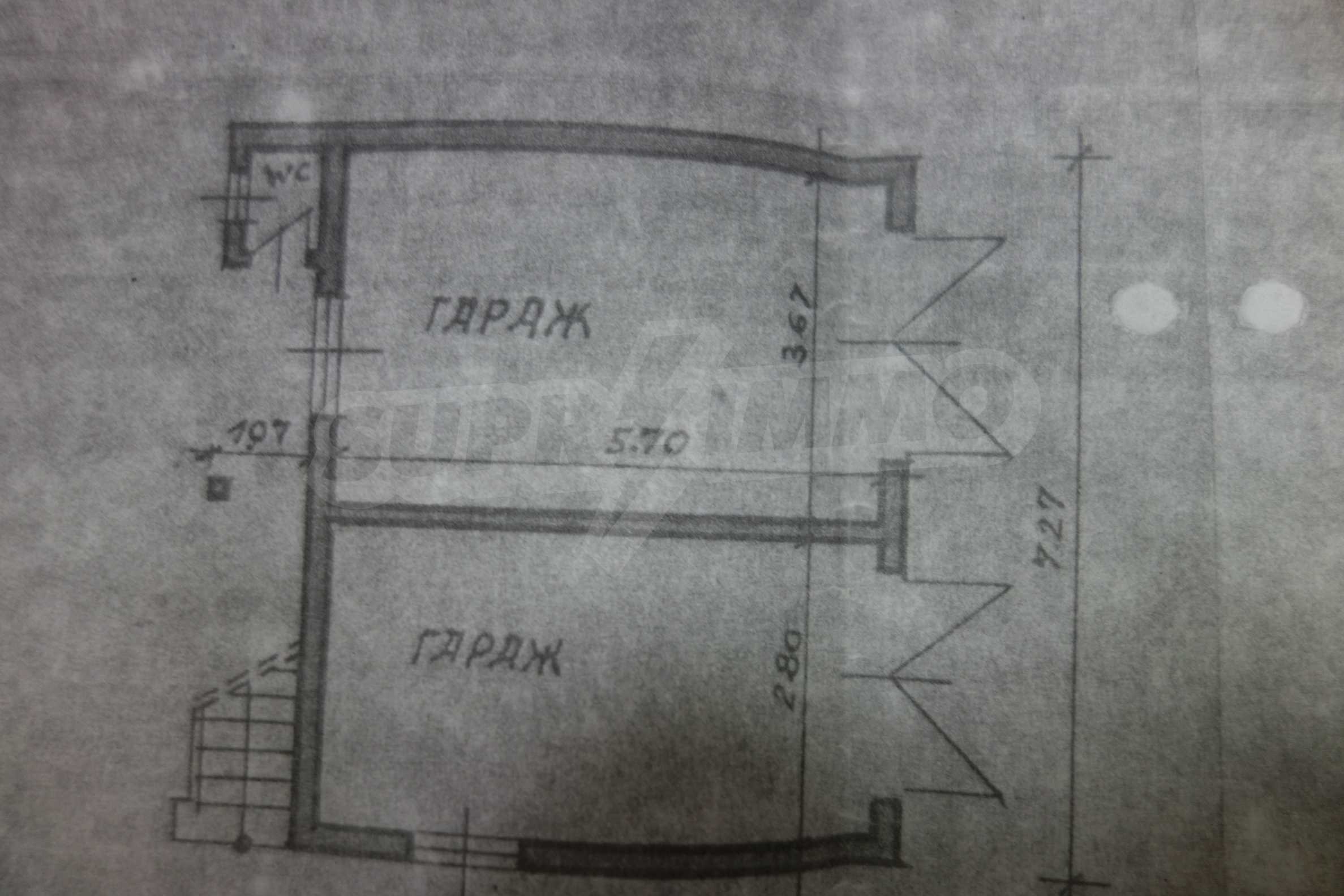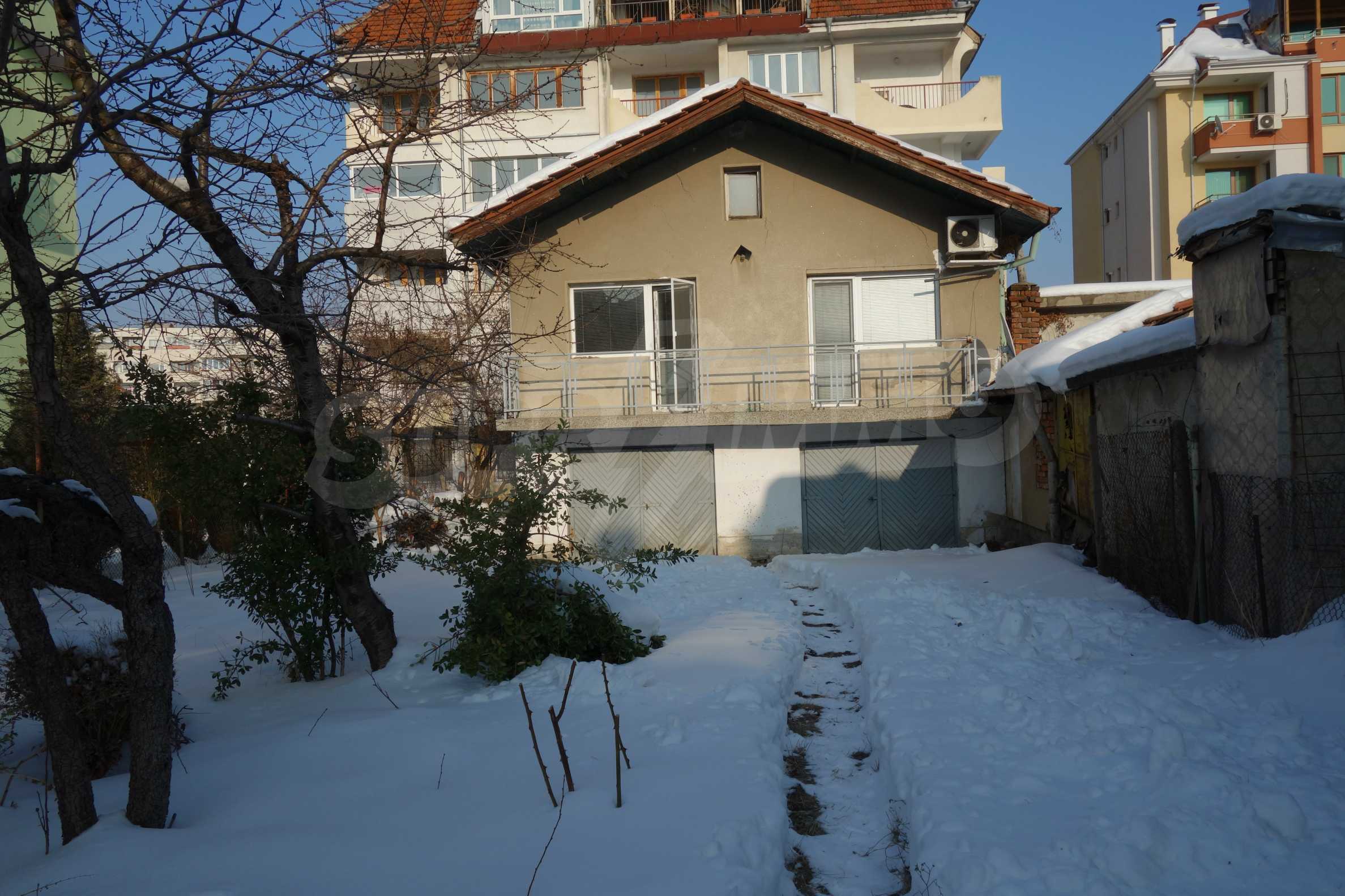The two-storey house, located in the plot, was built in 1975 with an area of 46 sq.m. and two garages - 23.4 sq.m. and 21.5 sq.m. The property is facing south, but needs repairs. It is divided between 2 rooms, a kitchen, a hallway, a bathroom with WC, a veranda. The rooms are finished with painted walls, parquet floors, PVC joinery.