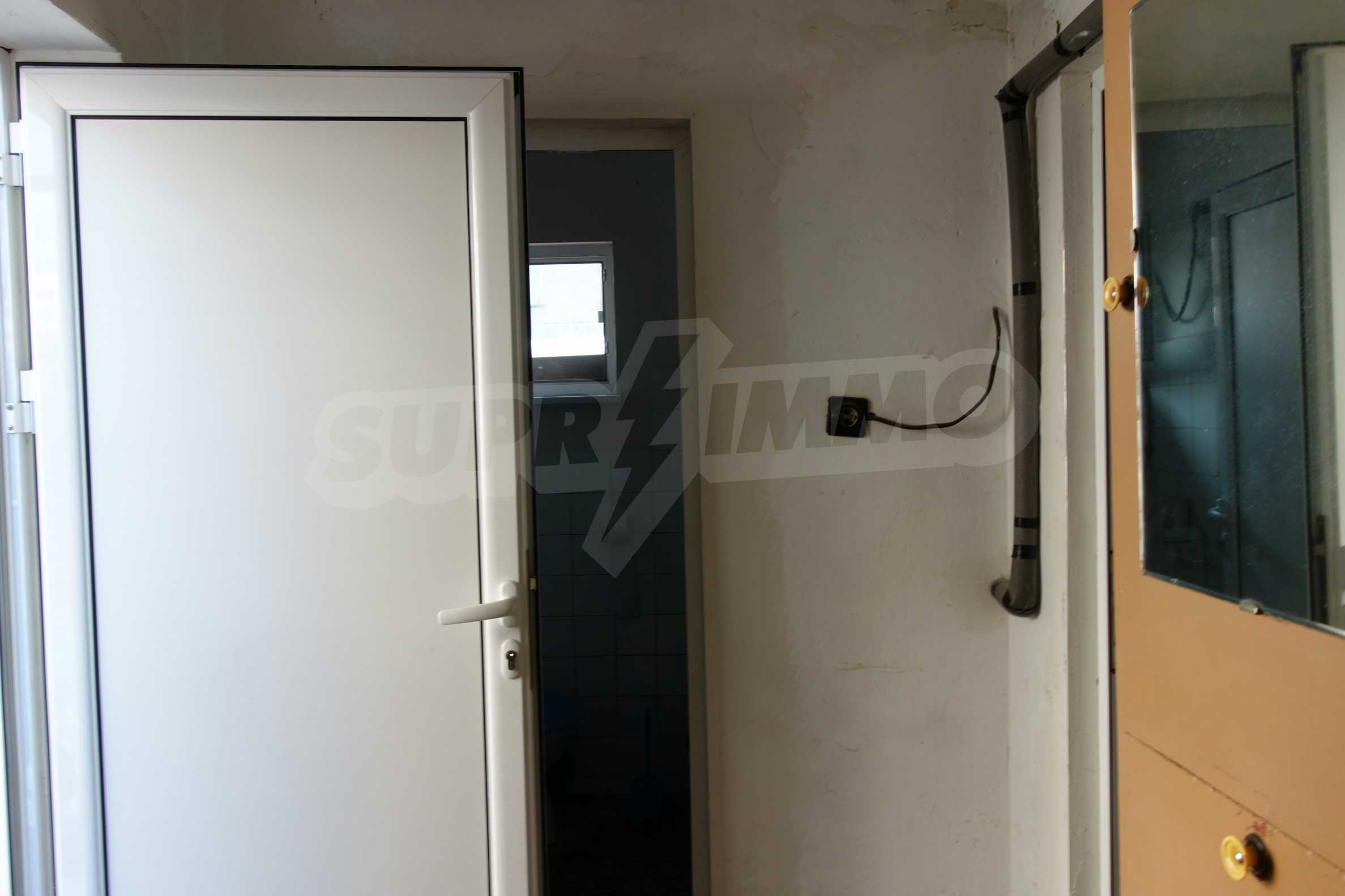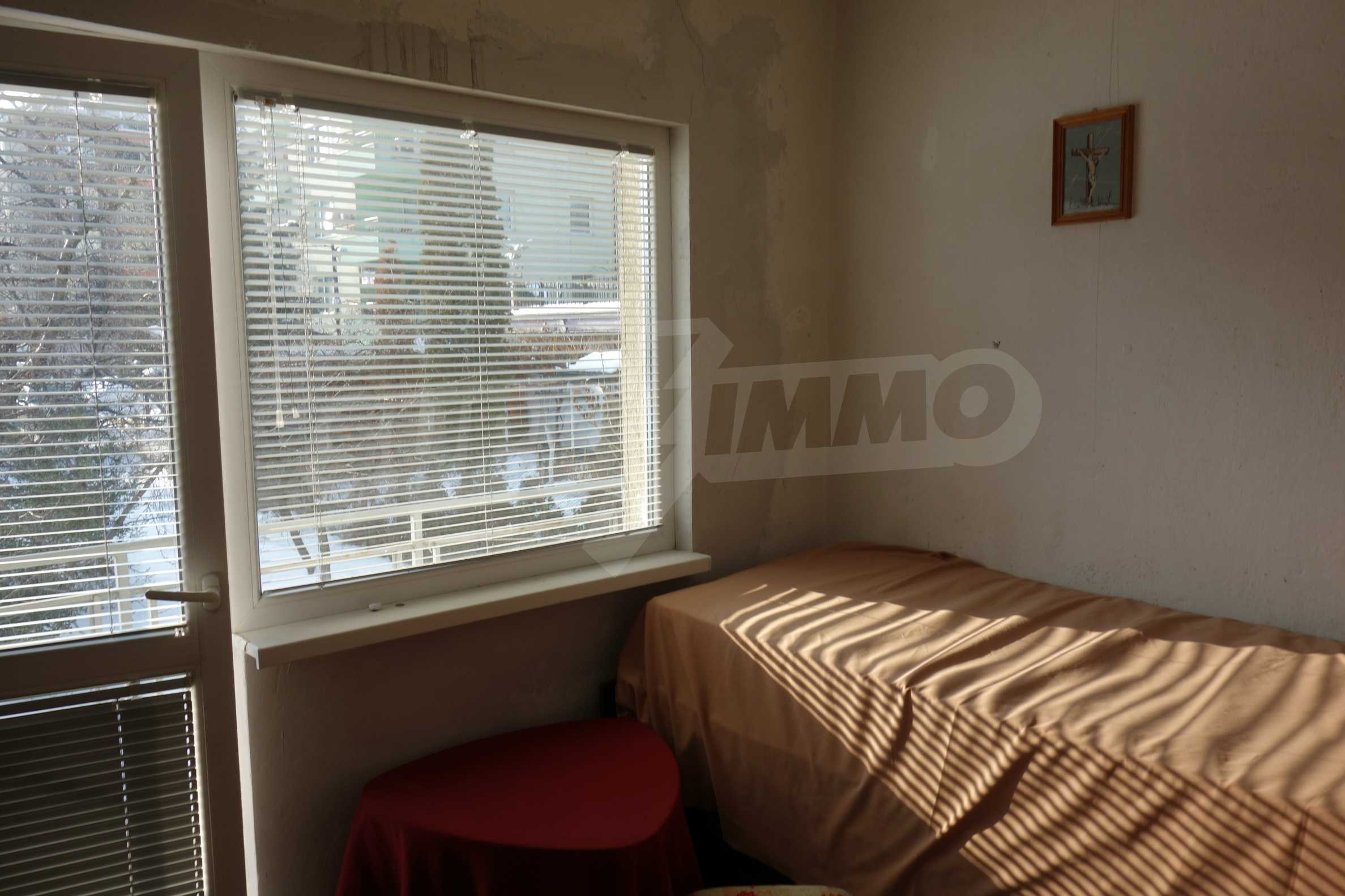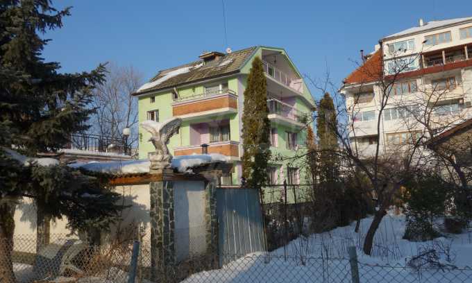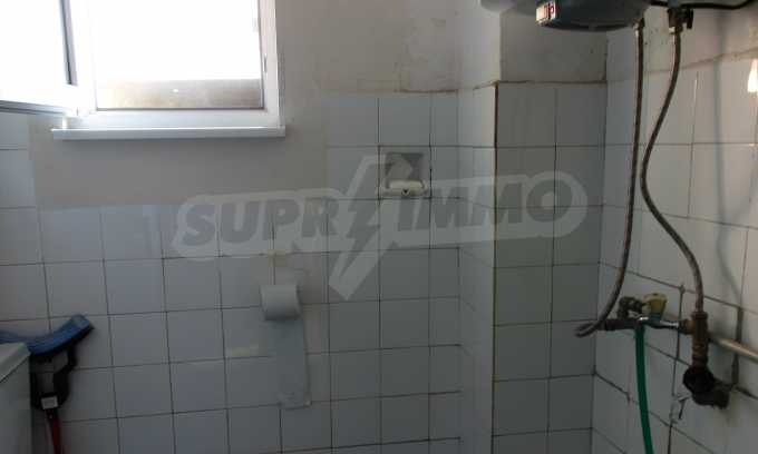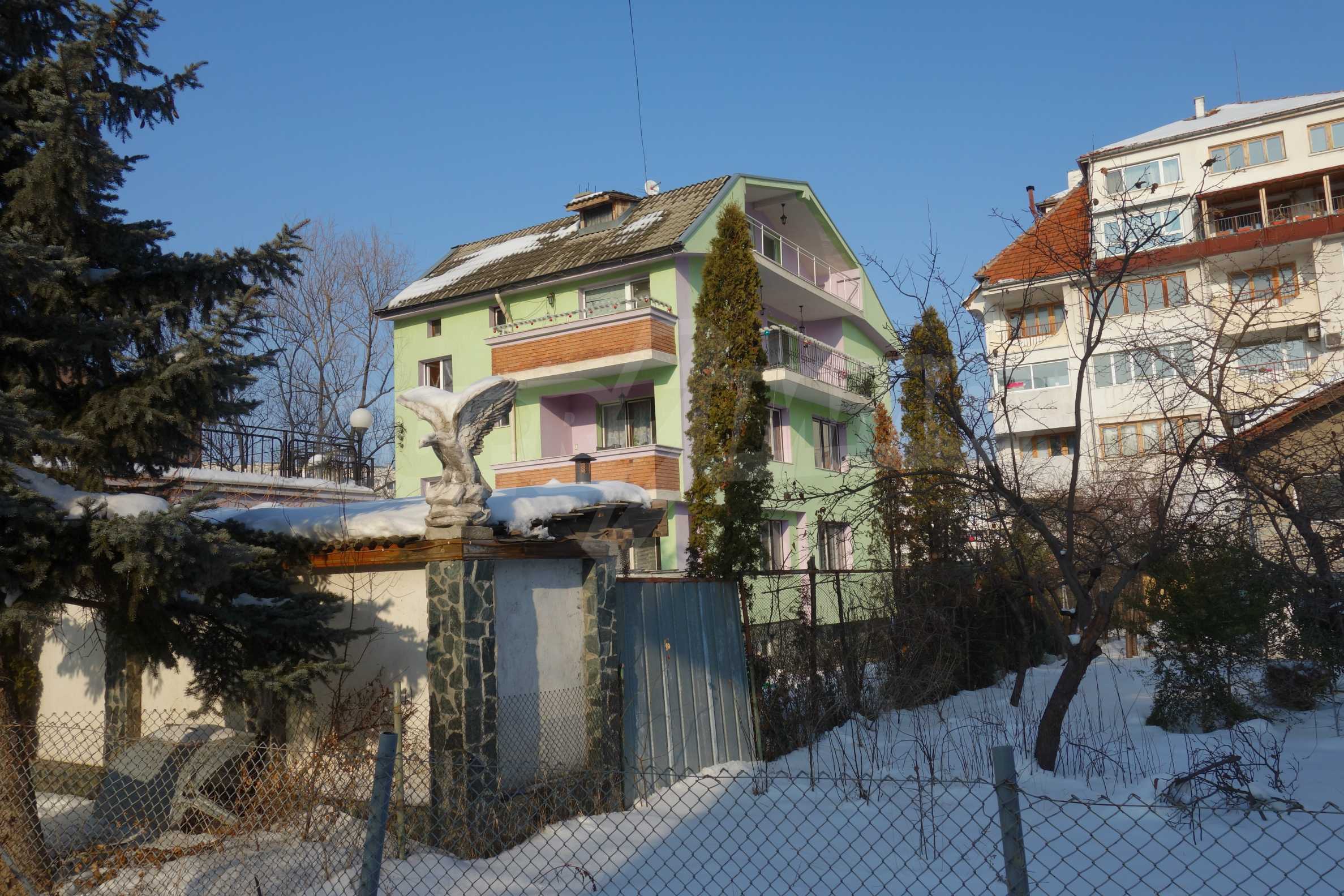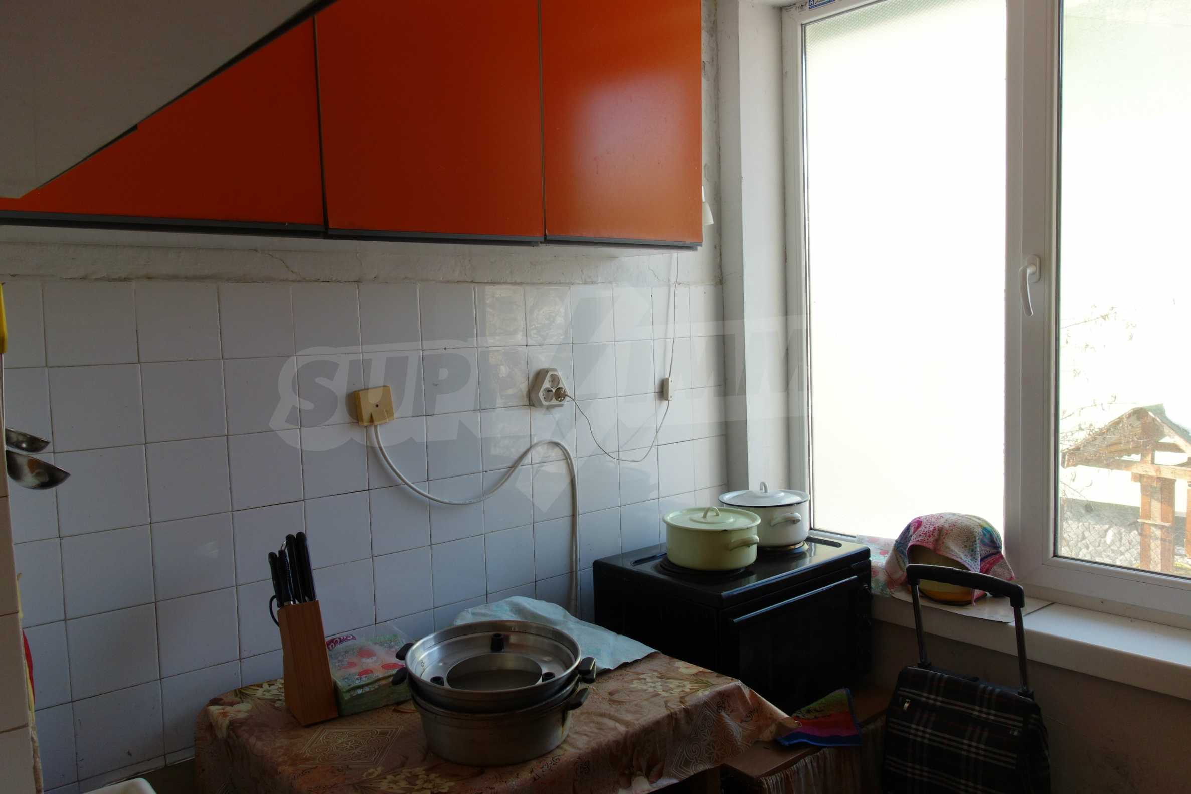 The two-storey house, located in the plot, was built in 1975 with an area of 46 sq.m. and two garages - 23.4 sq.m. and 21.5 sq.m. The property is facing south, but needs repairs. It is divided between 2 rooms, a kitchen, a hallway, a bathroom with WC, a veranda. The rooms are finished with painted walls, parquet floors, PVC joinery.
