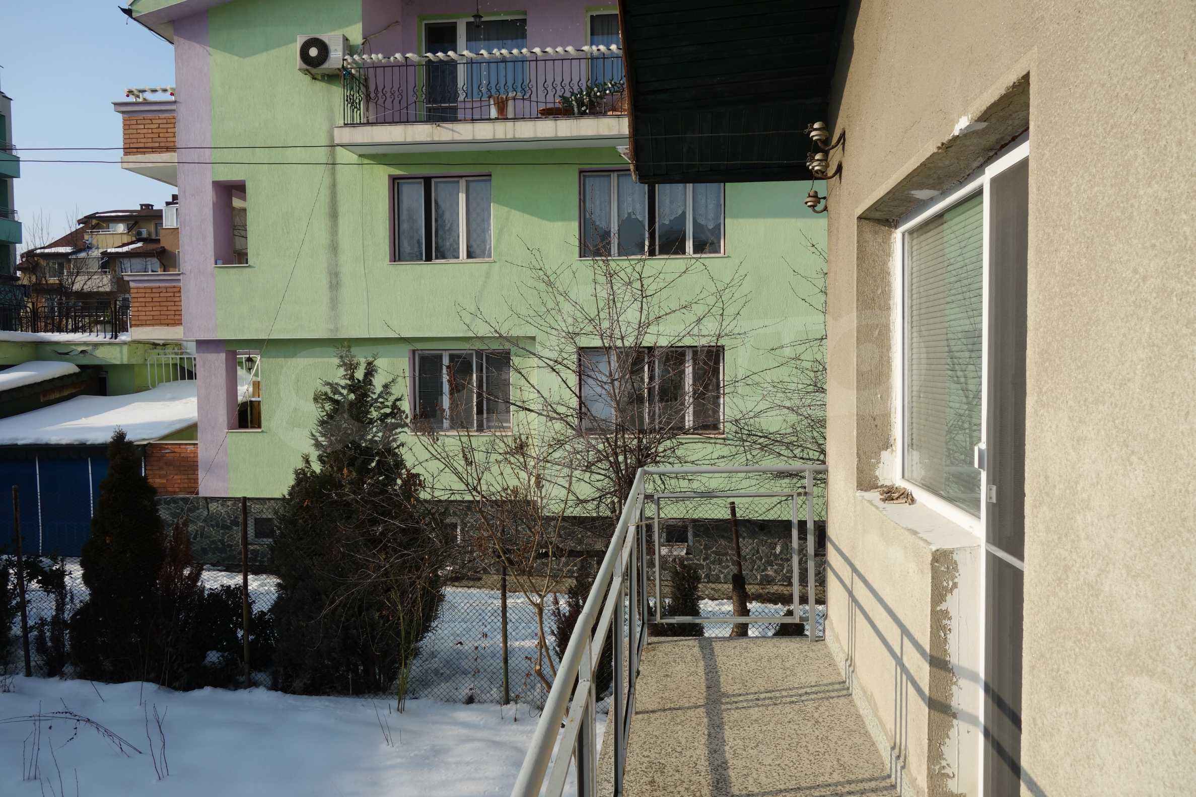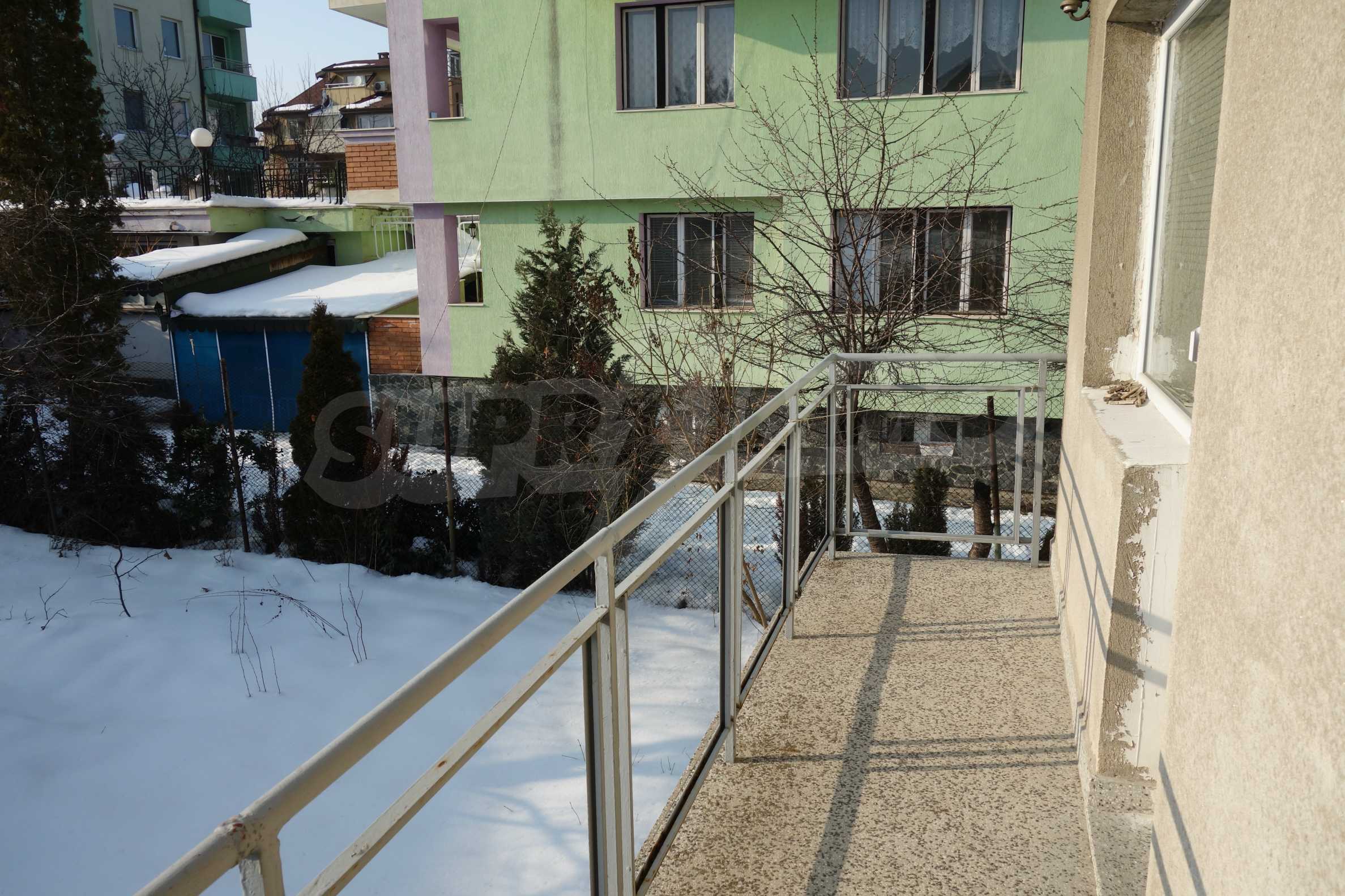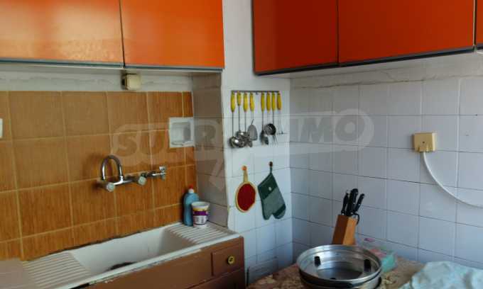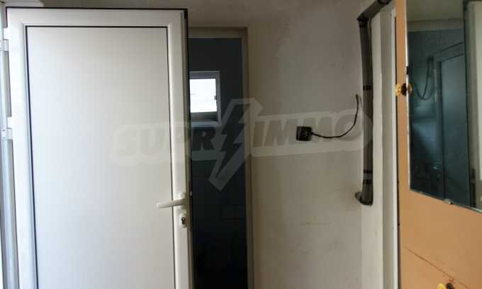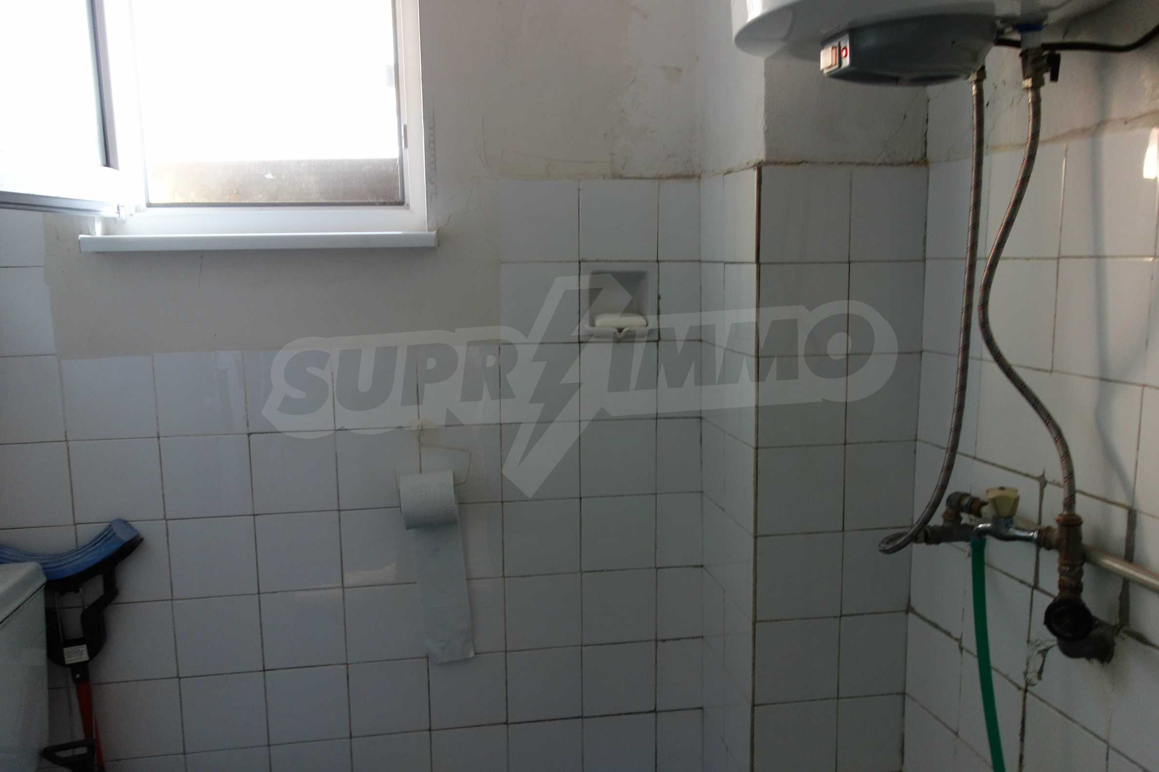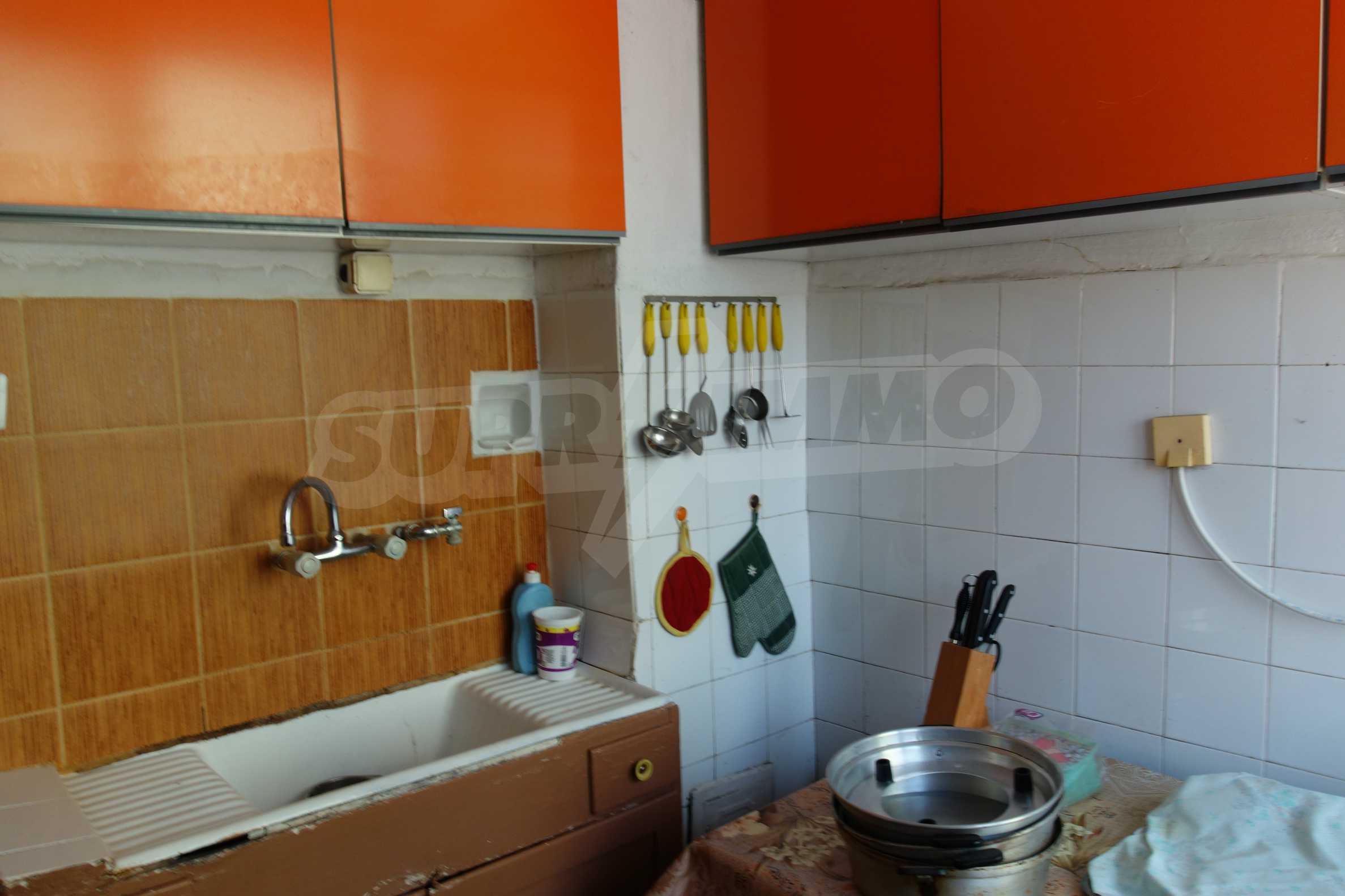 The two-storey house, located in the plot, was built in 1975 with an area of 46 sq.m. and two garages - 23.4 sq.m. and 21.5 sq.m. The property is facing south, but needs repairs. It is divided between 2 rooms, a kitchen, a hallway, a bathroom with WC, a veranda. The rooms are finished with painted walls, parquet floors, PVC joinery.