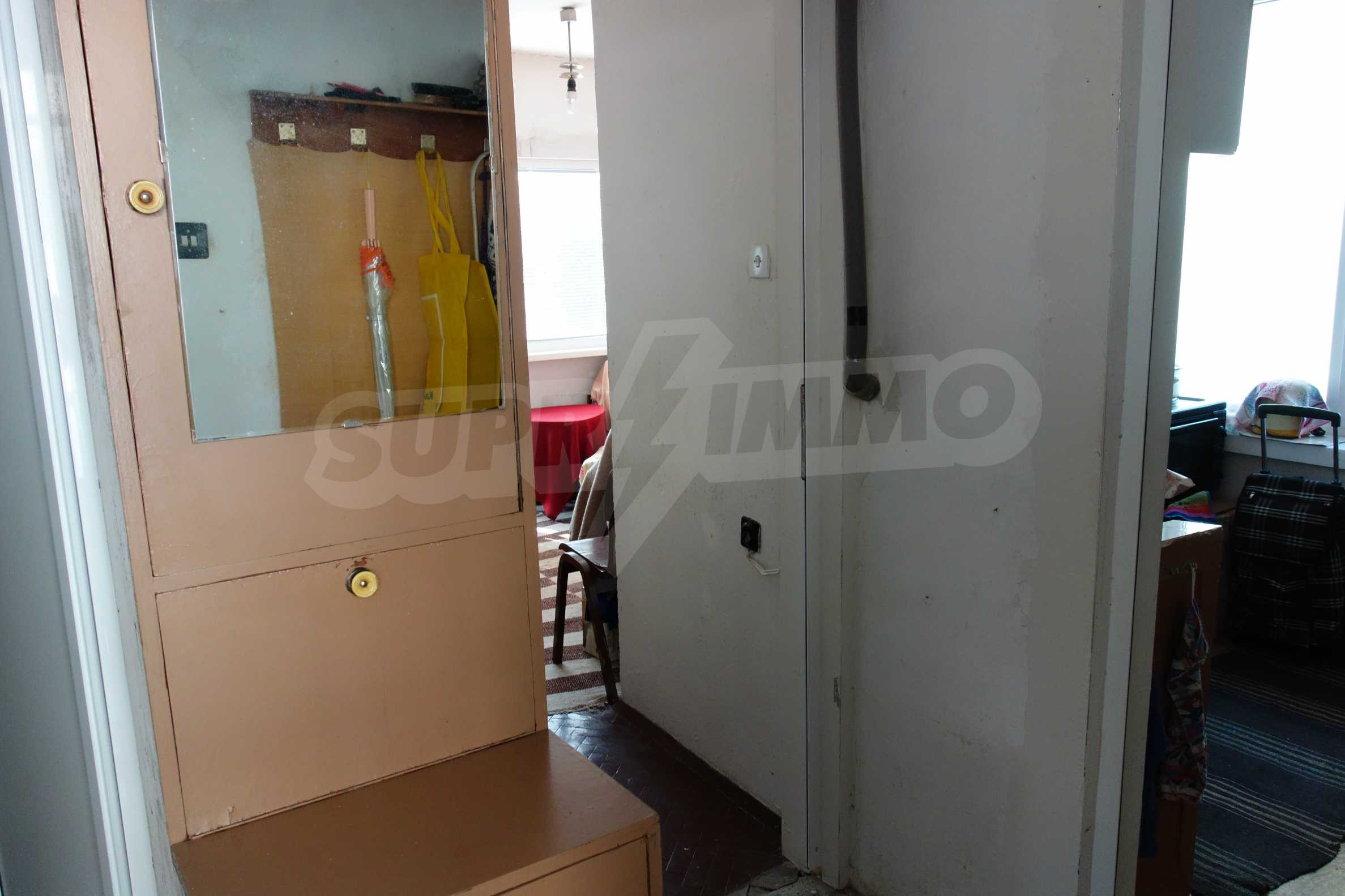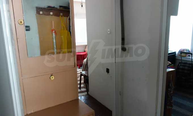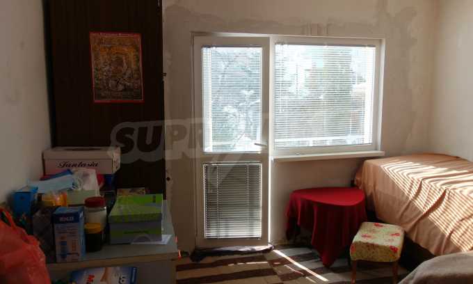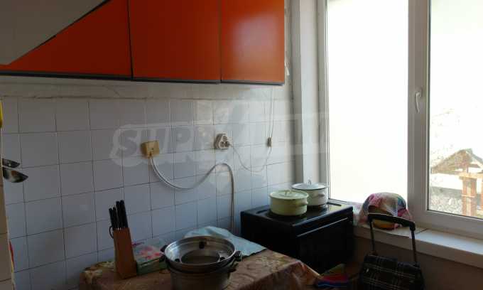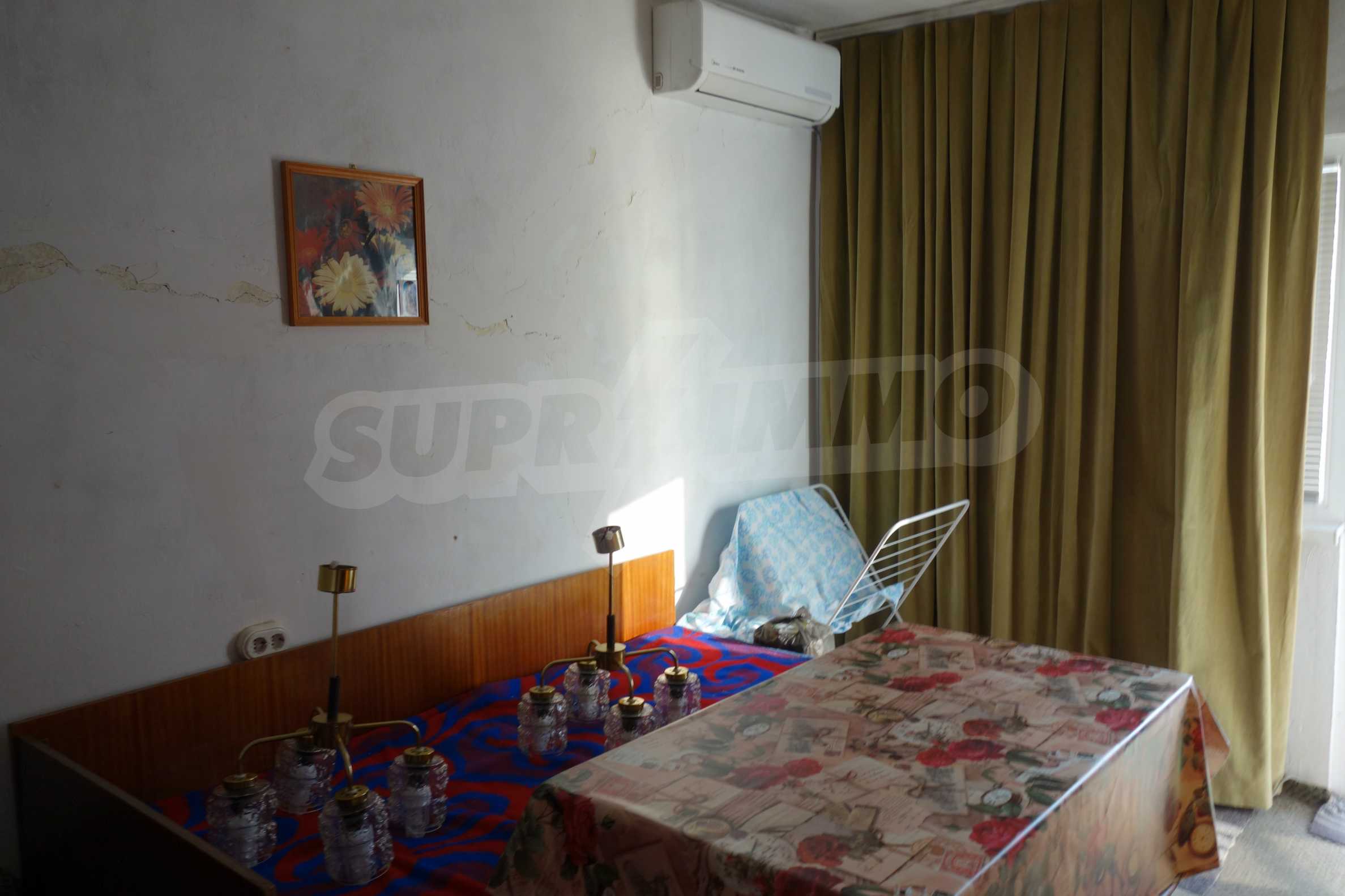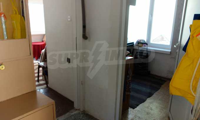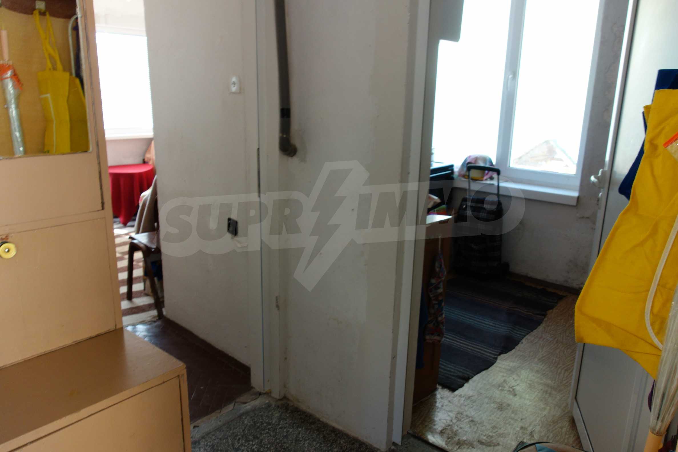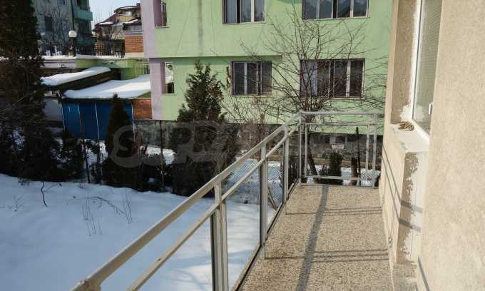 The two-storey house, located in the plot, was built in 1975 with an area of 46 sq.m. and two garages - 23.4 sq.m. and 21.5 sq.m. The property is facing south, but needs repairs. It is divided between 2 rooms, a kitchen, a hallway, a bathroom with WC, a veranda. The rooms are finished with painted walls, parquet floors, PVC joinery.