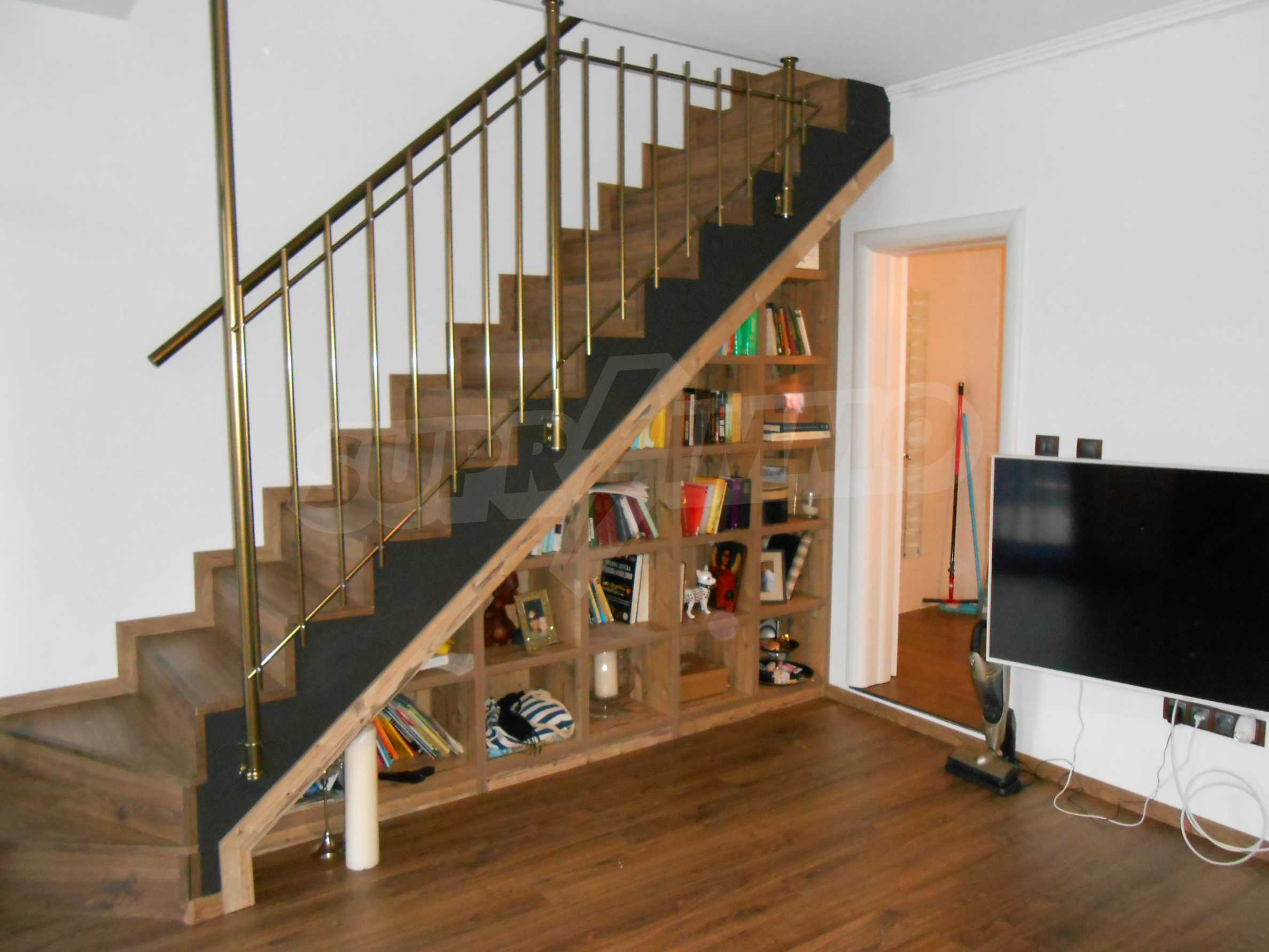 The apartment was built in 2012 and it is located on the fourth last floor. The total area of 86.36 sq.m. is divided between two levels. On the first level there are a living room with kitchenette and dining area, a toilet and a balcony. Second level - two bedrooms (one children room and a master one) and a bathroom with WC and a shower box. The apartment was repaired in 2016, with luxury furniture and equipment.