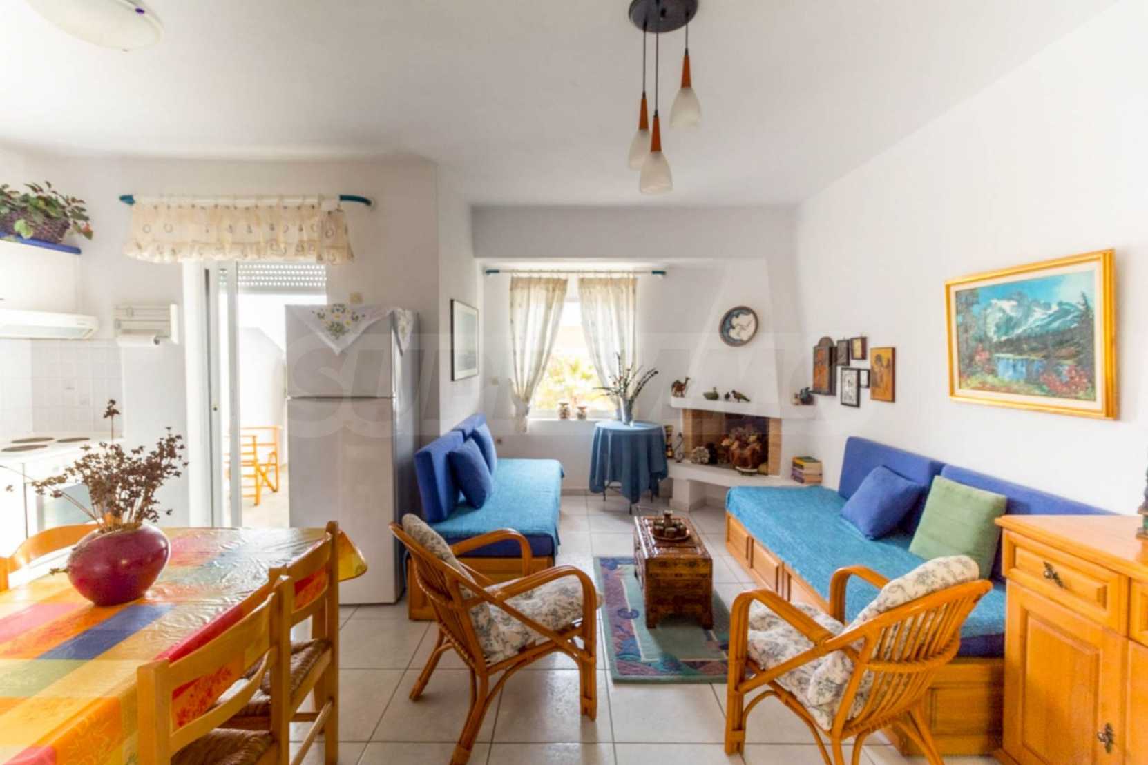 Unique maisonette 96 sqm in Kassandra, Halkidiki, with western orientation and wide, open view. The house is located in a housing complex outside the village, very close to the beach. It is split in three levels, consisted of living room connected with kitchen, three bedrooms and three bathrooms. It has two storage rooms, spacious verandas, aluminum window frames, barbecue, mosquito nets, security services and a gardener. The price includes all the furniture and appliances. The complex also has an outdoors, shared swimming pool, tennis court and basketball court.