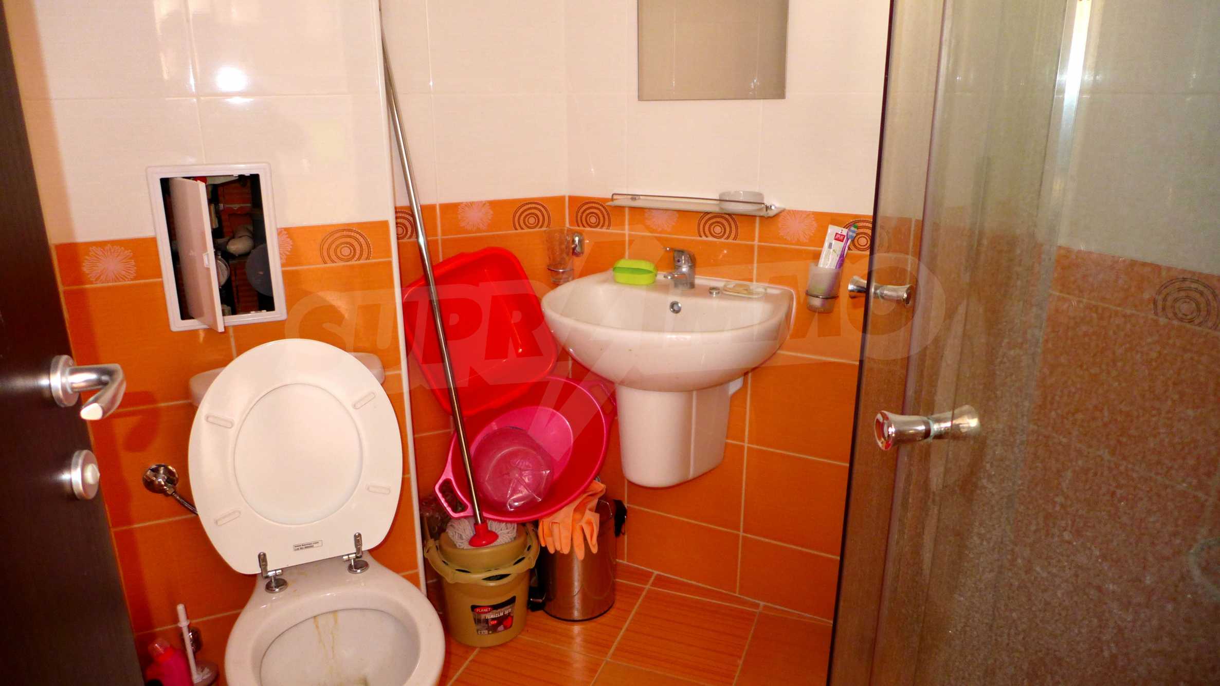 The property occupies a total area of 33.11 m2, of which the net area is 26.38 m2. It consists of a living room with kitchenette, a bathroom with WC and shower cabin, a balcony. The flat includes full furniture and equipment needed for your comfortable vacations here. It is wired for telephone, cable TV, internet and it is luxuriously fitted with sanitary equipment, air conditioning, terracotta flooring, painted walls, PVC window frames, fitted kitchen with household appliances and comfortable furniture. The studio is in excellent condition, offering opportunities for rental or permanent residence. The annual maintenance fee of the complex is 9 Euro per sq.m. from the apartment's territory.