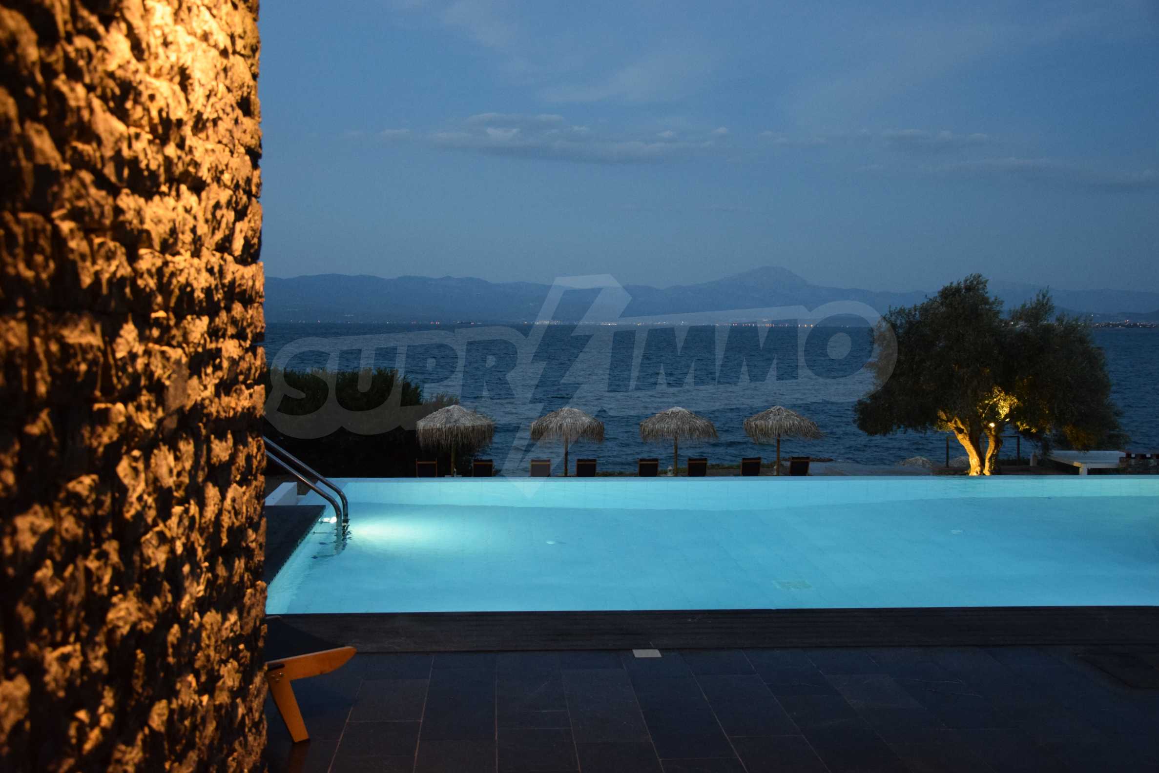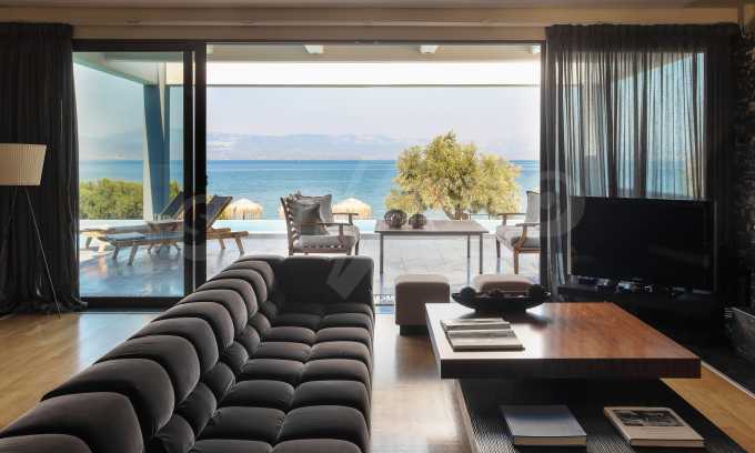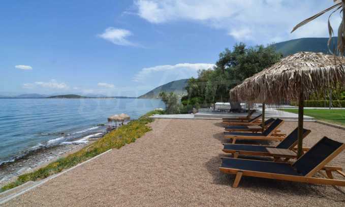 We offer you this beautiful villa for sale,right on the beachfront in Loukisia of Anthidona. The Villa is situated on a 6000sq.m. (1 ½ acre) lot on the seafront, and consists of comfortable rooms (6 bedrooms, 6 bathrooms) to stay in (two levels) as well as places for exercising and doing sports.