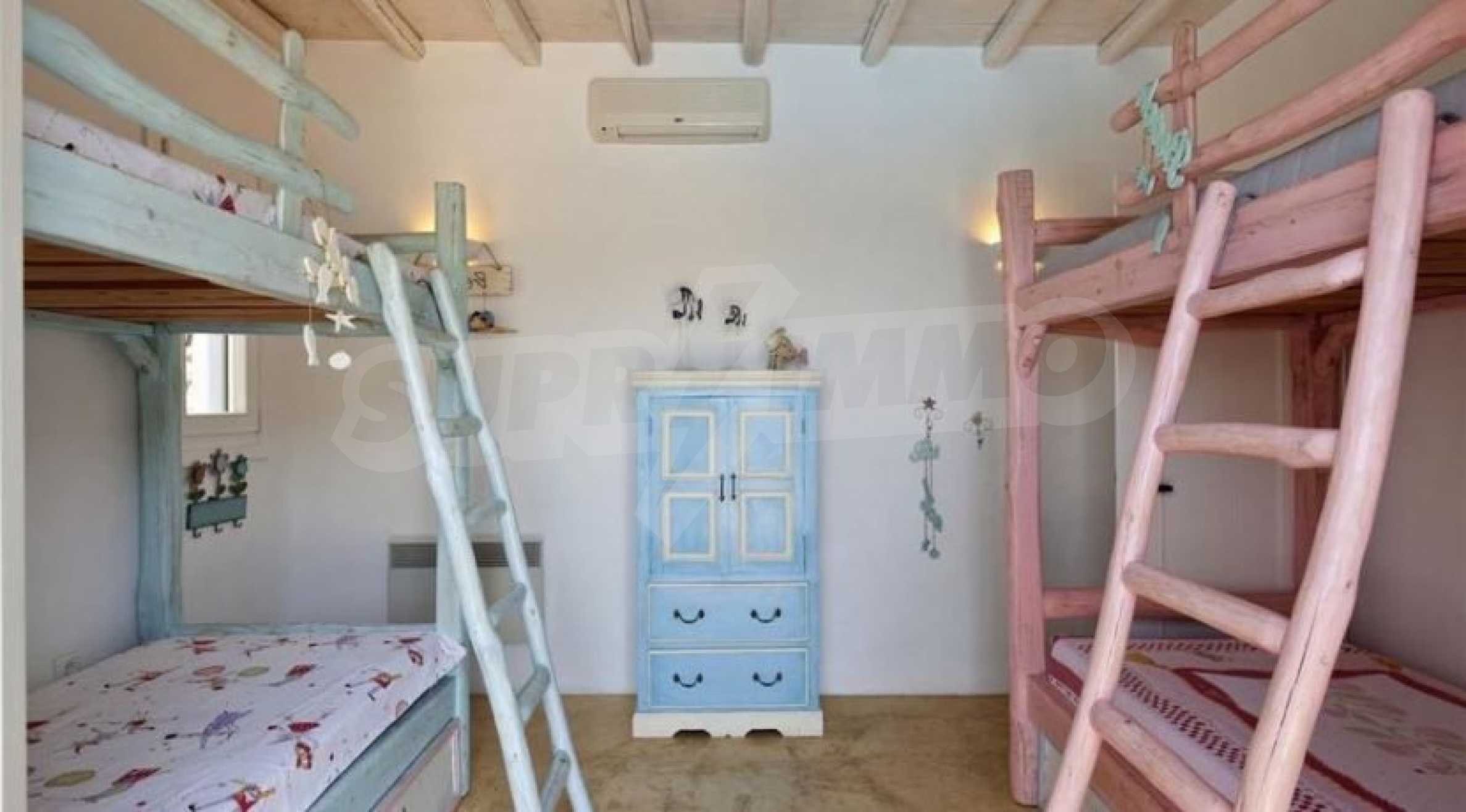 We offer you this villa with a total area of 300 m2. The property has air-conditioners and electric heating appliances (fan heater, radiators, etc.). An inverter air-conditioner - also available. Armored front door, dobile glazing, painted walls, solid walls, tiled flooring and wooden window frames are available in the property. The property is connected to electricity and water. Some of the other available facilities that you will certainly consider important include: a bathroom, a bathroom with toilet, a veranda, a swimming pool, internet, a secure entry system, a telephone line and a wi-fi. From the inside you will be able to enjoy wonderful bay views, beach views, hills views, swimming pool views and views to inner garden.