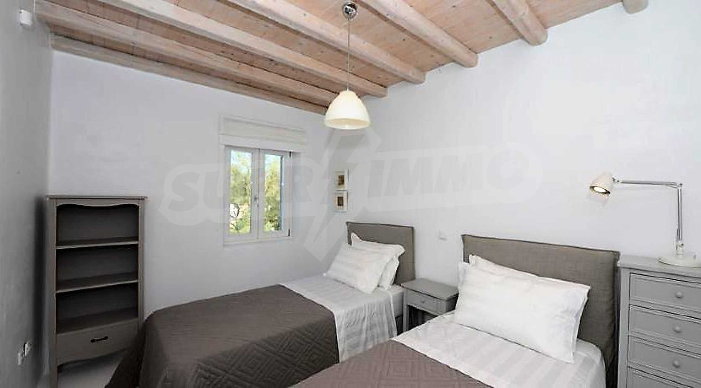 We offer you this villa with a total area of 149 m2 which is situated in a gated development. It was constructed in 2014. The property is supplied with air-conditioners and fireplace. An air-conditioning system - also available. Armored front door, interior doors, painted walls, parquet flooring, solid walls, tiled flooring and upvc window frames are available in the property. The property is connected to electricity and water. Some of the other available facilities that you will certainly consider important include: a balcony, a balcony, a bathroom, a bathroom with toilet, an open-air parking lot, a veranda, internet, a satellite tv, a secure entry system, a telephone line and a wi-fi. From the inside you will be able to enjoy wonderful bay views, beach views, hills views, swimming pool views, views to inner garden and village views.