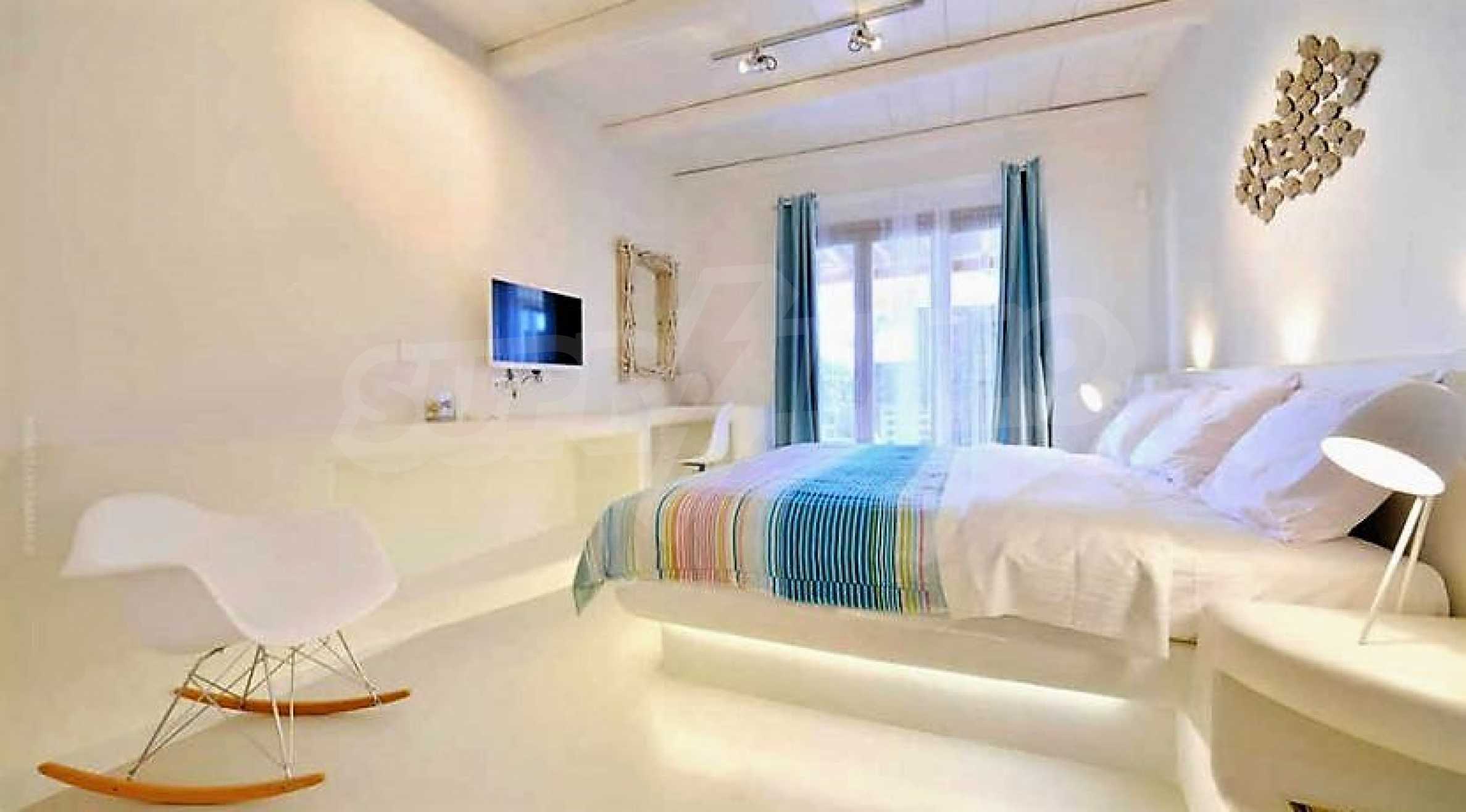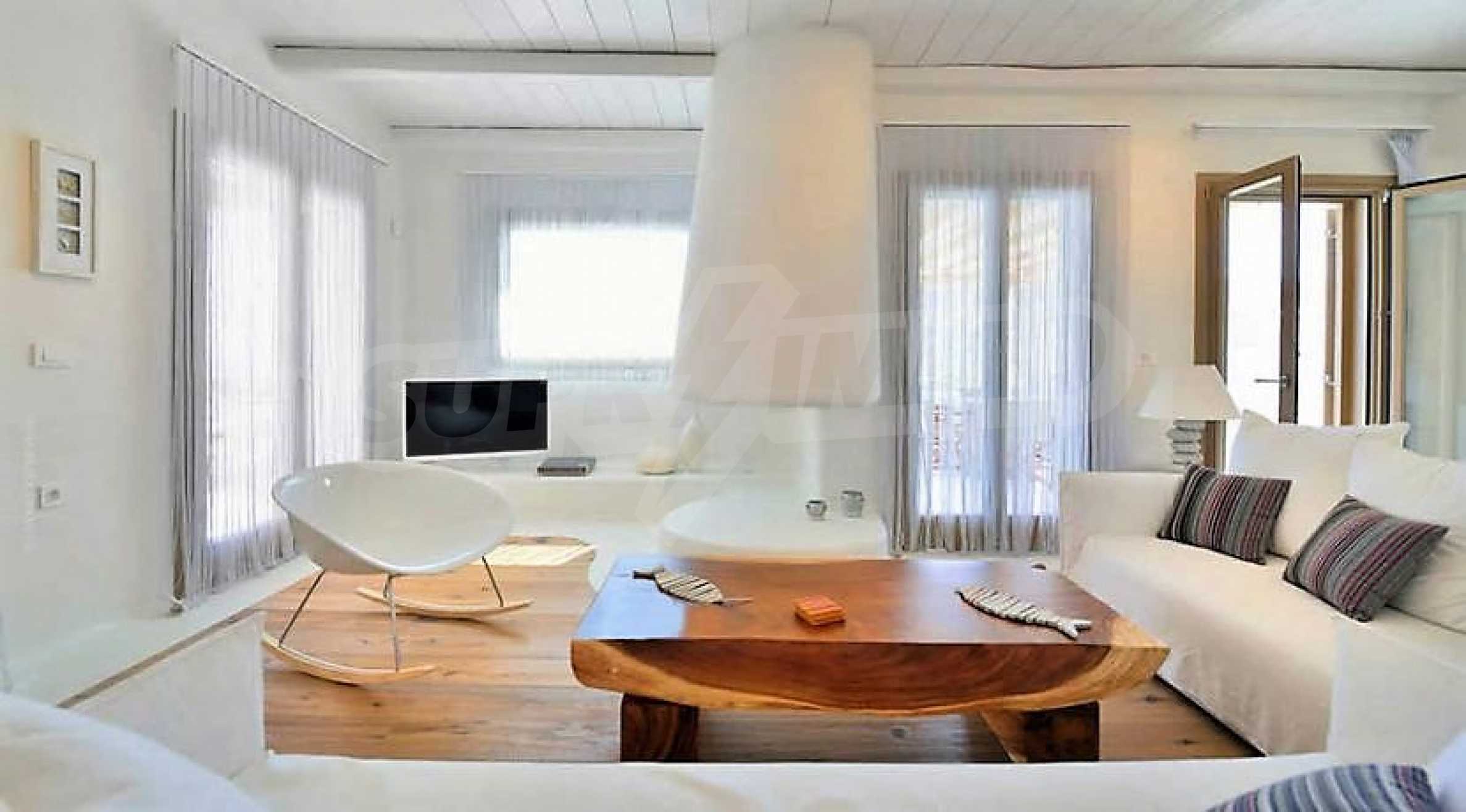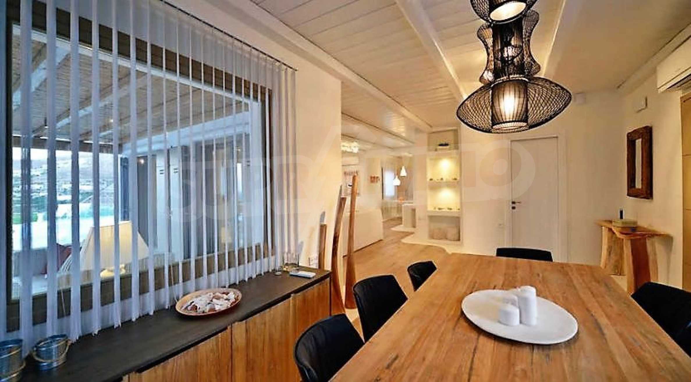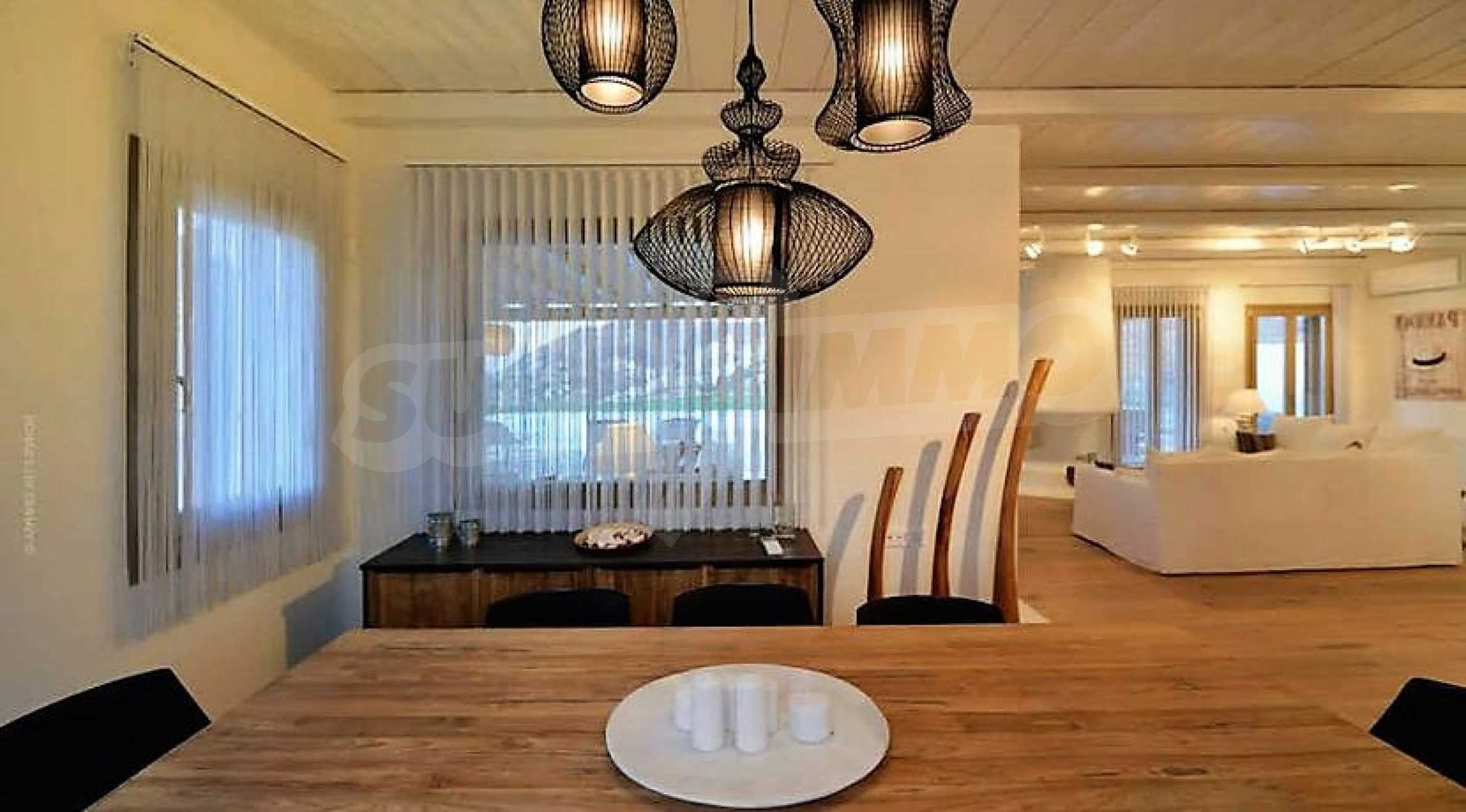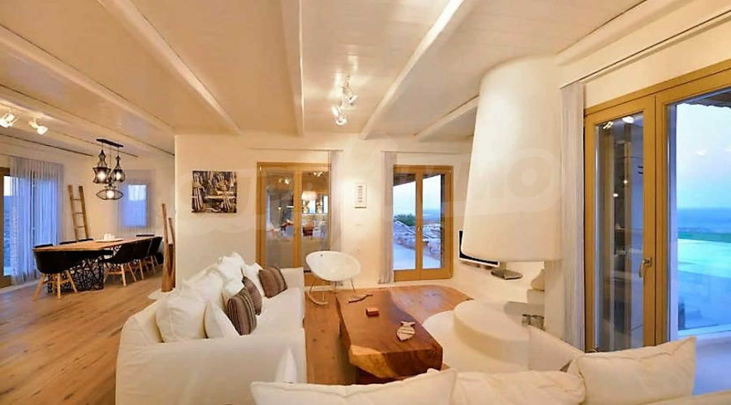 We offer you this villa with a total area of 220 m2 which is situated in a gated development. It was constructed in 2014 and has luxury common parts. The property is supplied with fireplace and heat pump. An air-conditioning system, a central air-conditioning and a heat pump - also available. Aluminum joinery, interior doors, painted walls, parquet flooring and tiled flooring are available in the property. The property is connected to electricity and water. Some of the other available facilities that you will certainly consider important include: a bathroom, a bathroom with toilet, a garage, a veranda, a walk-in wardrobe, a jacuzzi, a swimming pool, internet, a satellite tv, a secure entry system, a telephone line and a wi-fi. From the inside you will be able to enjoy wonderful bay views, beach views, hills views, sea views, swimming pool views, views to inner garden and village views.