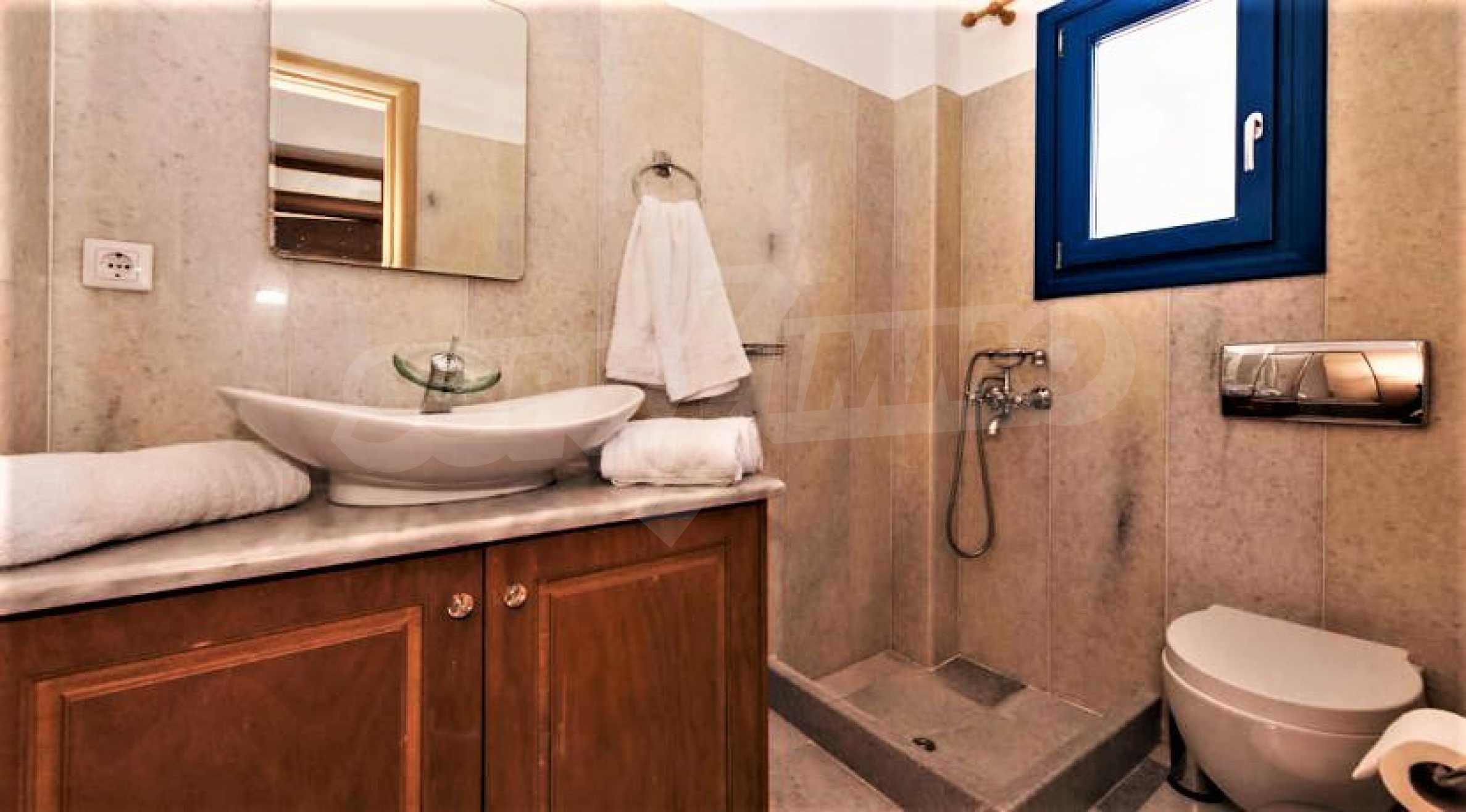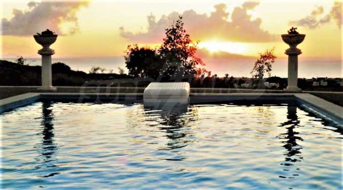 We offer you this villa with a total area of 500 m2. The property has air-conditioners and fireplace. Interior doors, painted walls, solid walls and tiled flooring are available in the property. The furniture and appliances that are available include: a built-in kitchen and an extractor hood. The property is connected to electricity and water. Some of the other available facilities that you will certainly consider important include: a bathroom with toilet, a garage, a toilet, internet and a wi-fi. From the inside you will be able to enjoy wonderful bay views, sea views, swimming pool views and views to inner garden.