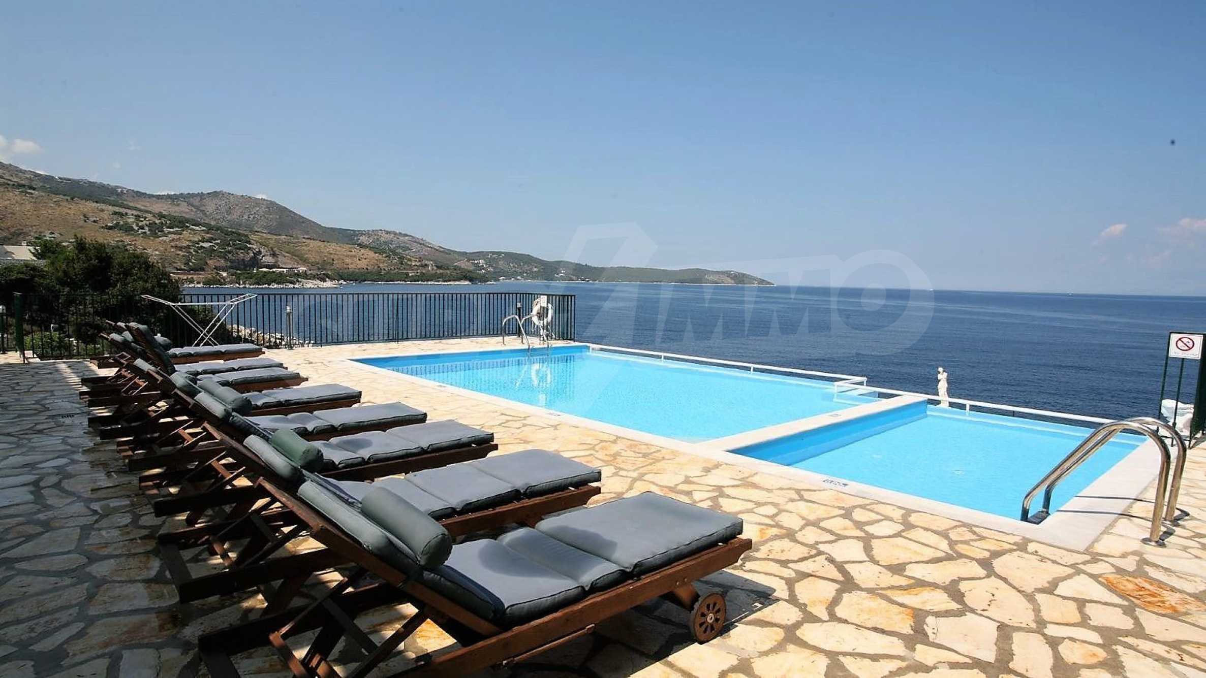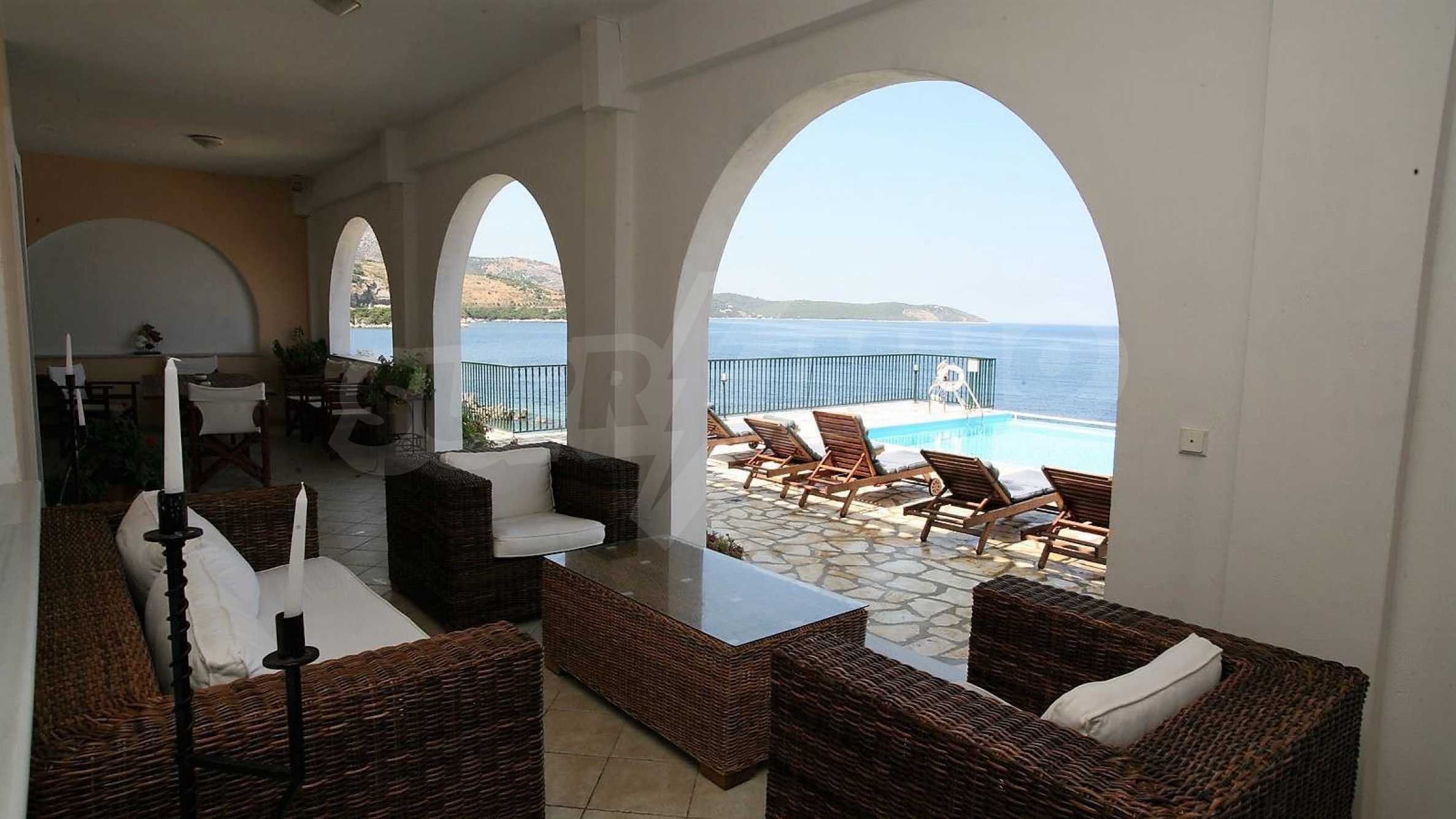 We offer you this villa with a total area of 360 m2. The property has air-conditioners and fireplace. Aluminum joinery, interior doors, solid walls, tiled flooring and triple glazing are available in the property. The property is connected to electricity and water. Some of the other available facilities that you will certainly consider important include: a balcony, a basement, a bathroom with toilet, a parking space, a parking space, a storage room, a toilet, a veranda, a swimming pool, internet and a wi-fi. From the inside you will be able to enjoy wonderful bay views, beach views, forest views, hills views, sea views, swimming pool views and views to inner garden.