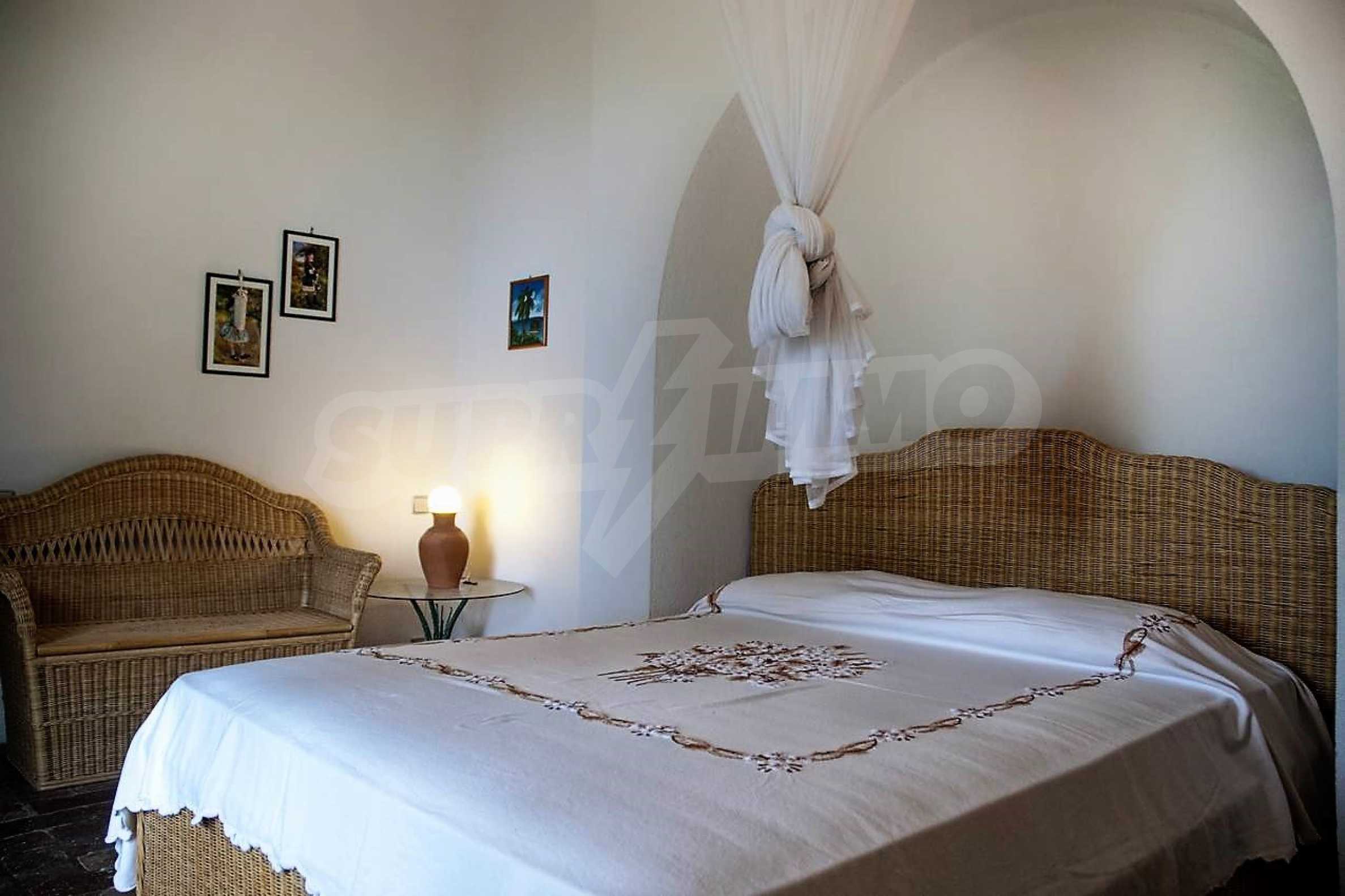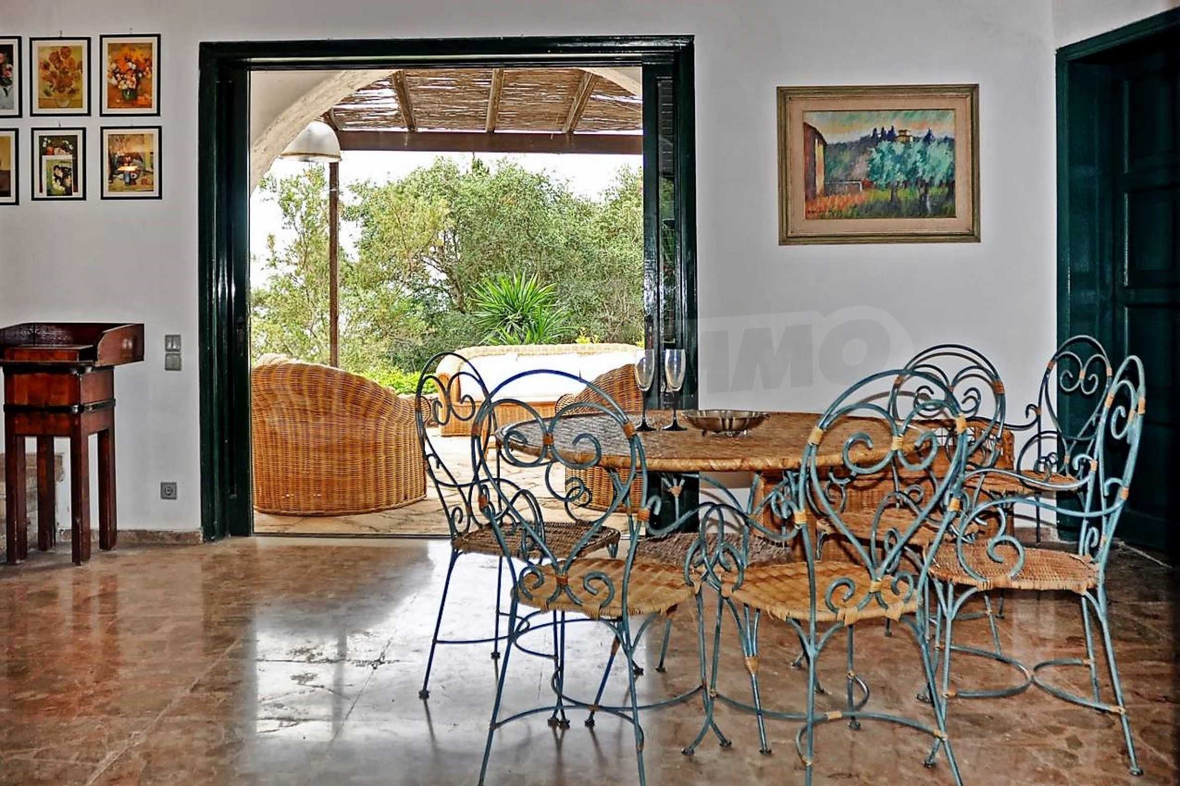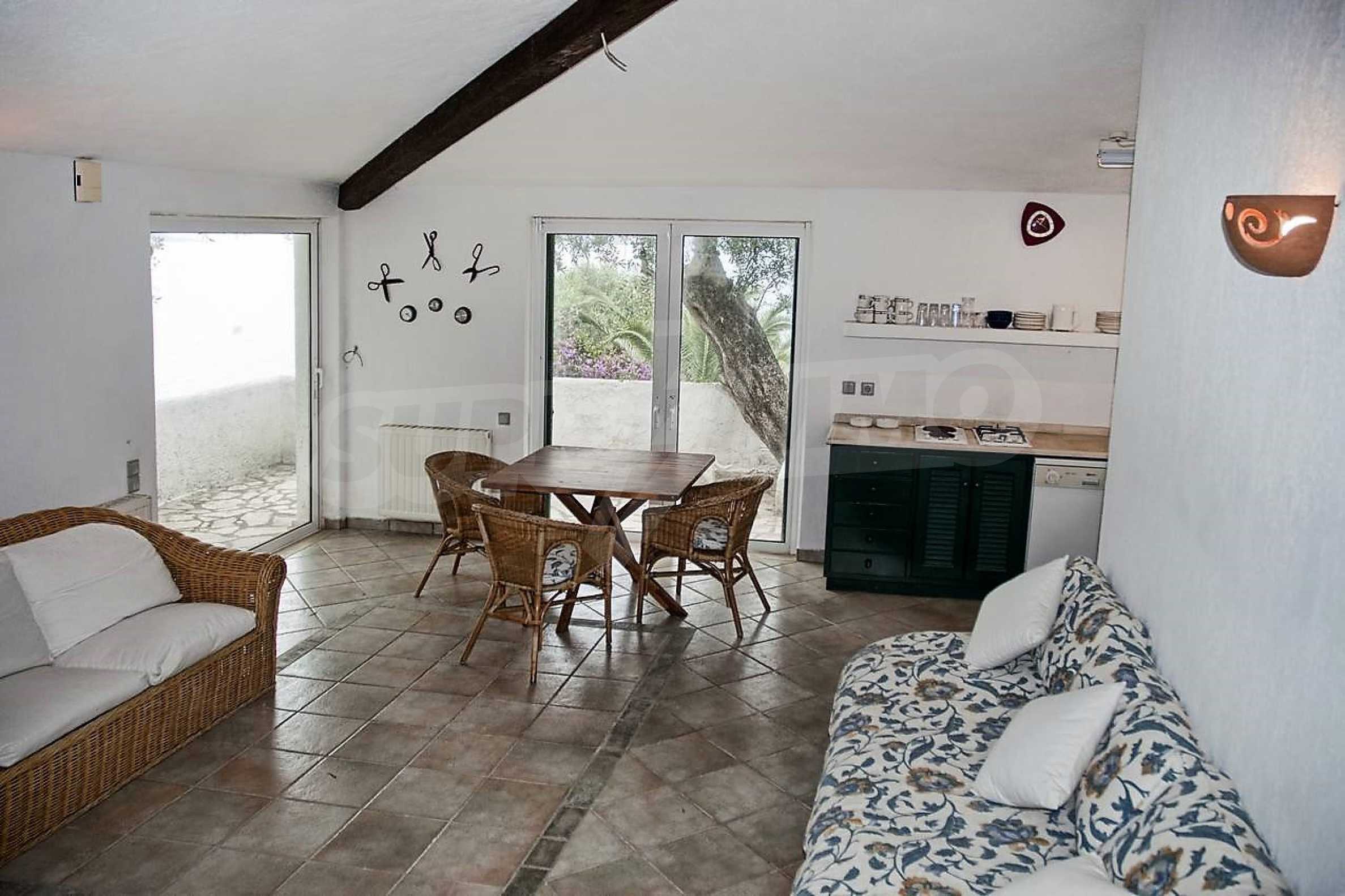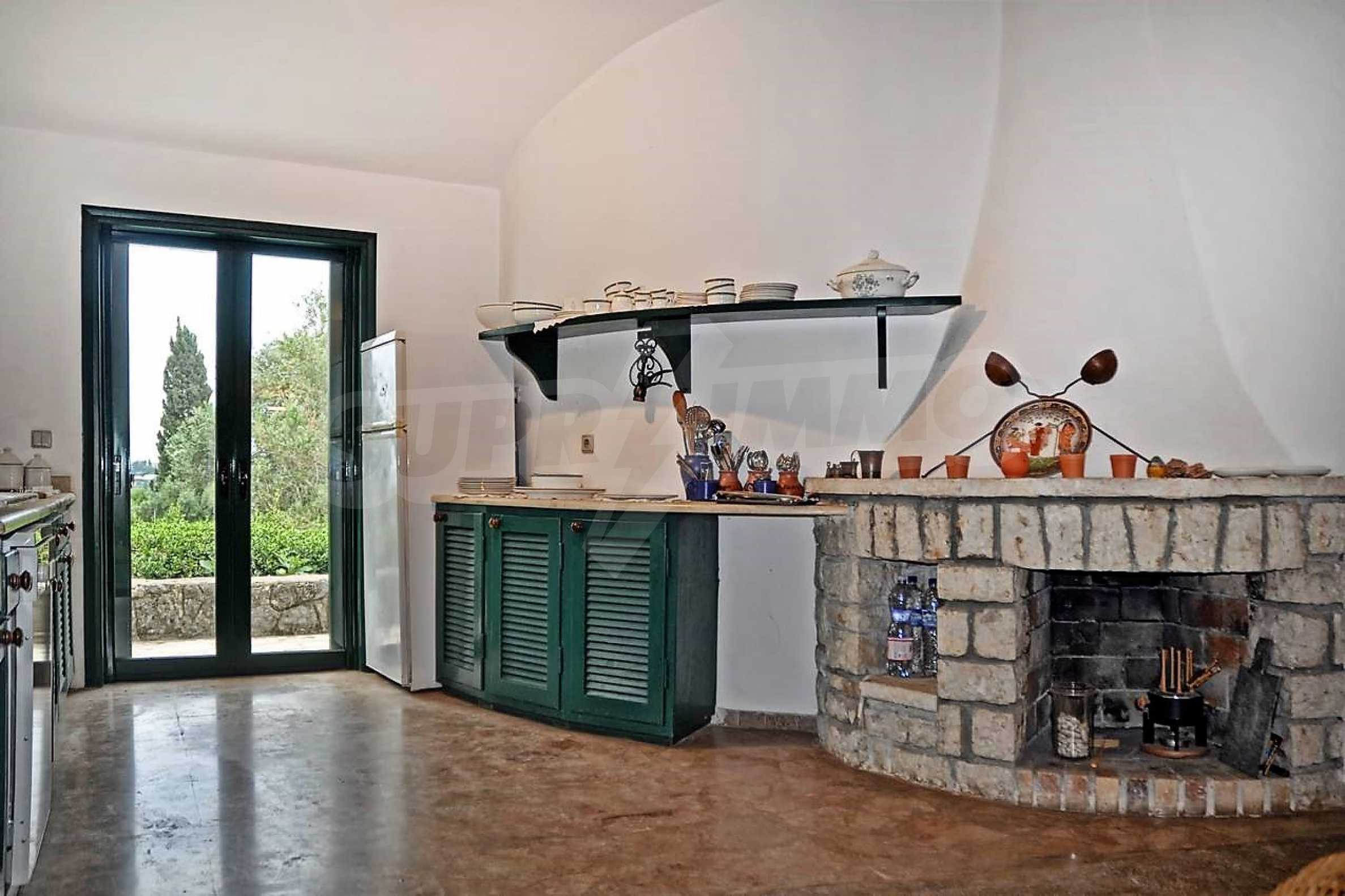 We offer you this villa with a total area of 600 m2. The property is supplied with air-conditioners, fireplace and local heating. Dobile glazing, interior doors, painted walls, solid walls, tiled flooring and wooden window frames are available in the property. The property is connected to electricity and water. Some of the other available facilities that you will certainly consider important include: a bathroom with toilet, a parking space, a parking space, a toilet, a veranda, internet and a wi-fi. From the inside you will be able to enjoy wonderful bay views, hills views, mountain views, sea views and views to inner garden.
