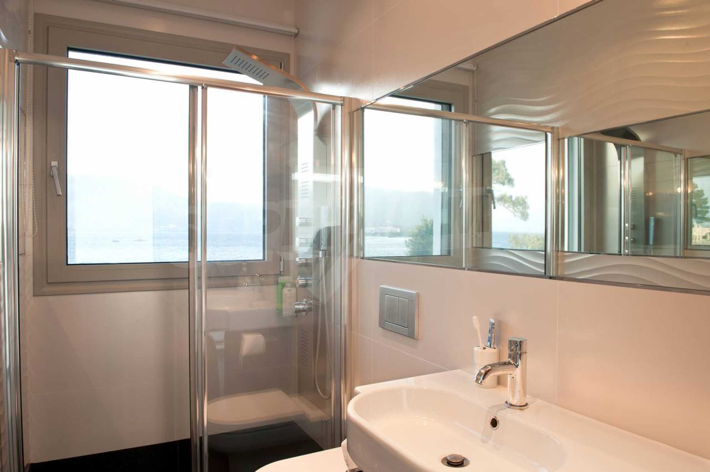 We offer you this villa with a total area of 500 m2. It was constructed in 2012. The property is supplied with air-conditioners, fireplace and underfloor heating. An air-conditioning system and an inverter air-conditioner - also available. Aluminium window frames, armored front door, external insulation, interior doors, painted walls, suspended ceiling and tiled flooring are available in the property. The property is connected to electricity and water. Some of the other available facilities that you will certainly consider important include: a balcony, a bathroom, a bathroom with toilet, a parking space, a veranda, a swimming pool, internet, a satellite tv, a secure entry system, a telephone line and a wi-fi. From the inside you will be able to enjoy wonderful bay views, beach views, forest views, mountain views, sea views, swimming pool views and views to inner garden.