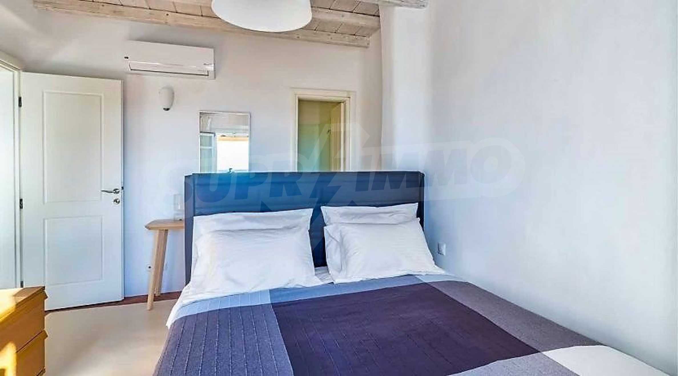 We offer you this villa with a total area of 140 m2 which is situated in a gated development. It was constructed in 2015 and has luxury common parts. The property has air-conditioners and fireplace. An inverter air-conditioner - also available. Interior doors, painted walls, solid walls, tiled flooring and upvc window frames are available in the property. The property is connected to electricity and water. Some of the other available facilities that you will certainly consider important include: a balcony, a bathroom, a bathroom with toilet, an open-air parking lot, a parking space, a parking space, a toilet, a veranda, internet, a satellite tv, a secure entry system, a telephone line and a wi-fi. From the inside you will be able to enjoy wonderful bay views, beach views, hills views, sea views and views to inner garden.