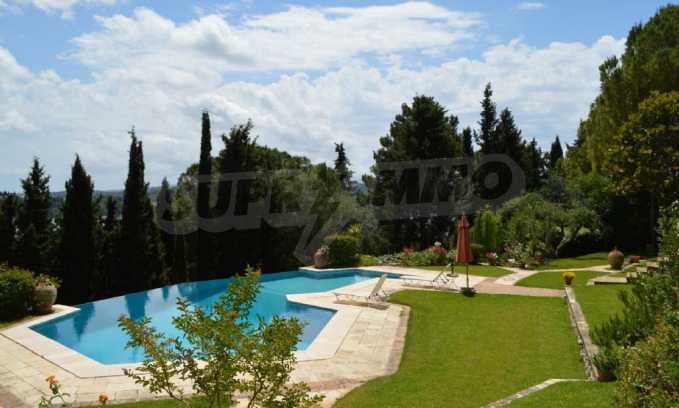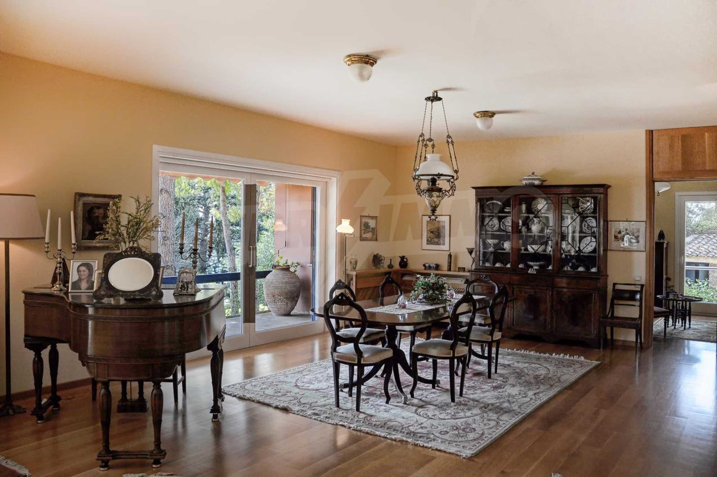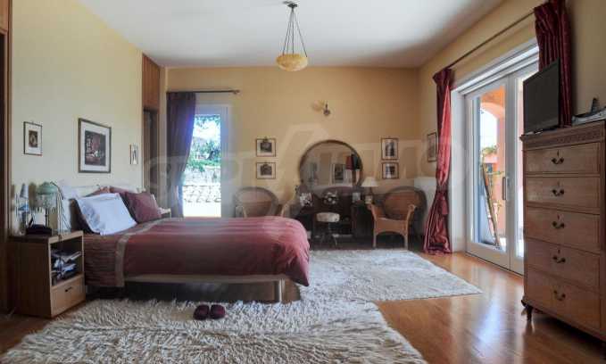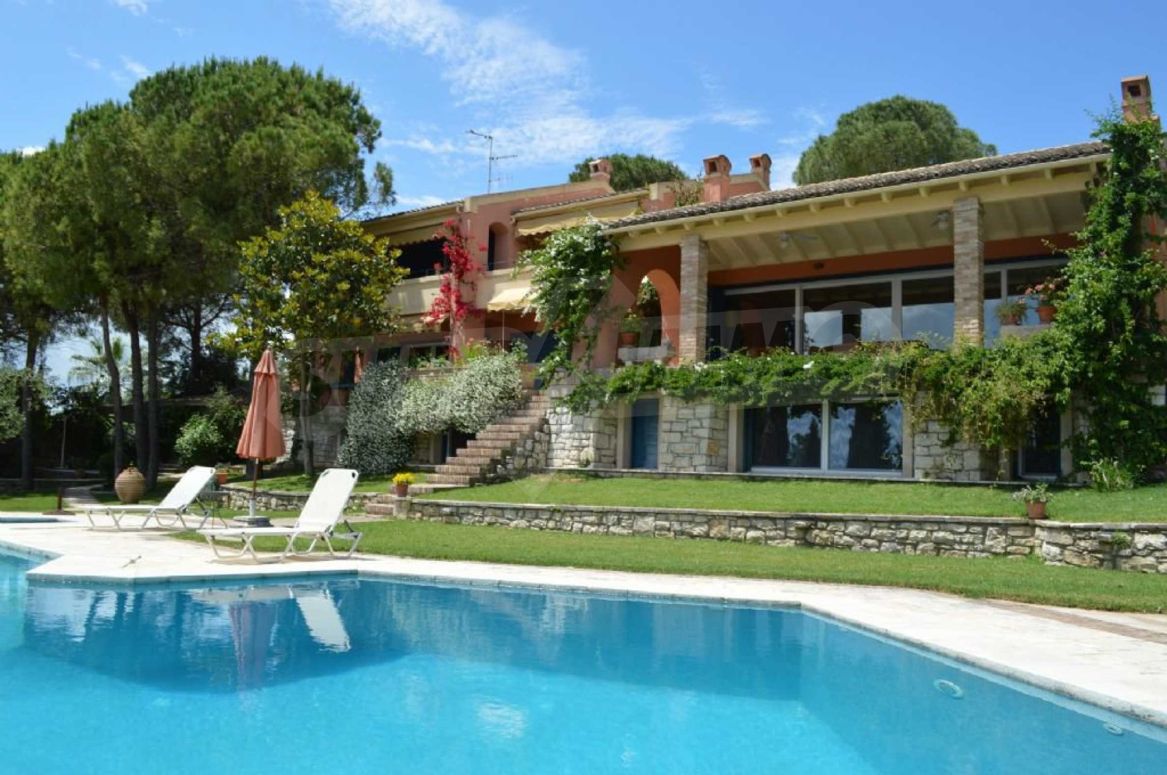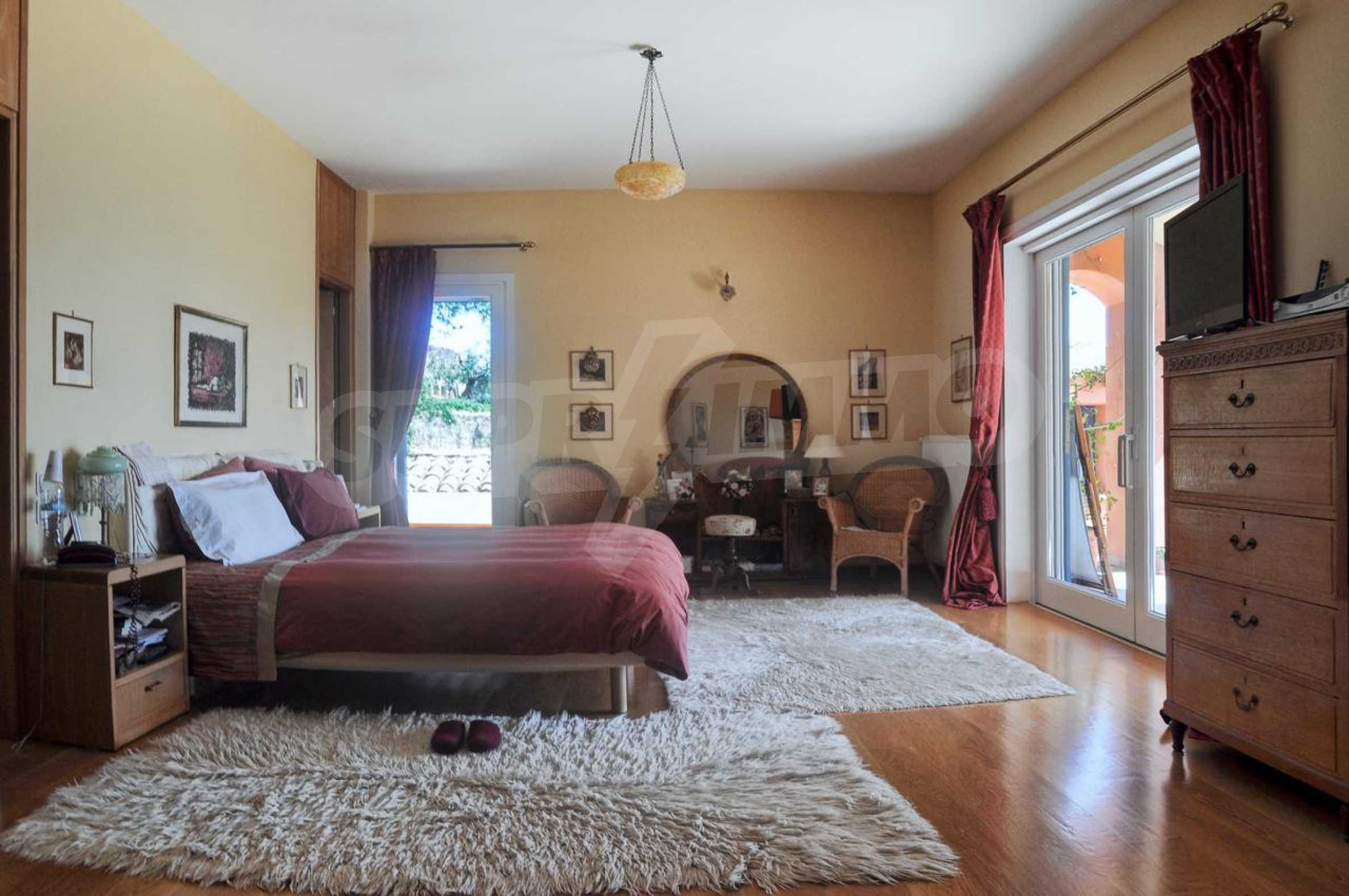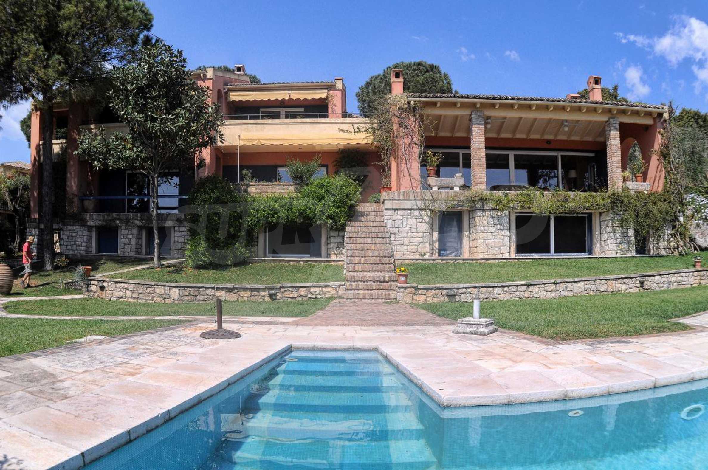 We offer you this villa with a total area of 750 m2. The property has local heating. Aluminium window frames, armored front door, interior doors, painted walls, solid walls, suspended ceiling and wooden floors are available in the property. The property is connected to electricity and water. Some of the other available facilities that you will certainly consider important include: a basement, a bathroom with toilet, a parking space, a parking space, a storage room, a toilet, a veranda, internet and a wi-fi. From the inside you will be able to enjoy wonderful bay views, beach views, forest views, park views, sea views, swimming pool views and views to inner garden.