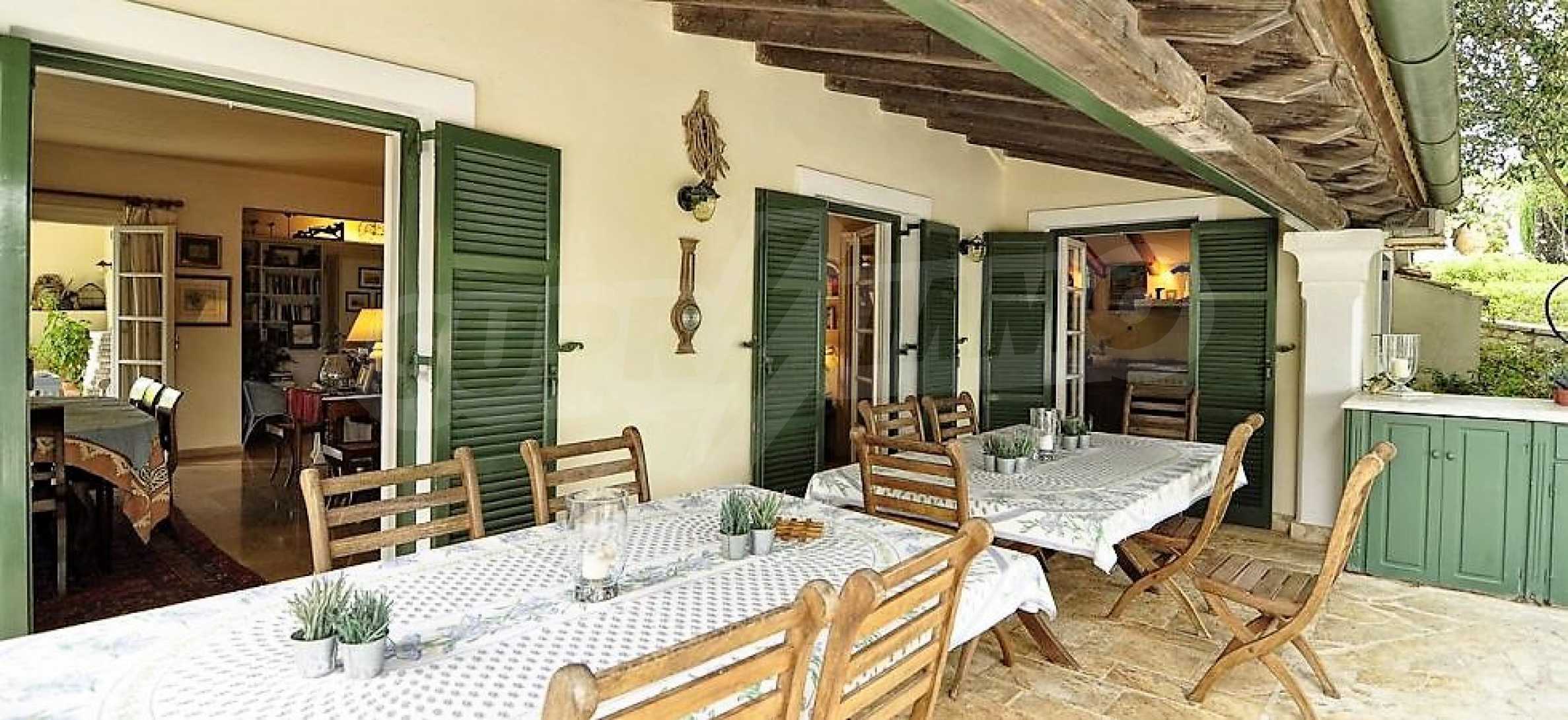 Villa Kokkokila is the pearl of Corfu. Nestled above the hills of Agios Stephanos, on a hill top and among ancient olive groves, with glimpses of the sea of the Corfu canal. The entrance to this charming villa leads into a large open plan living room- dining room with fireplace and windows all around allowing the light to enter the room. The big number of rooms and art furniture transform the villa in small heaven! An important part of property is amazing infinity pool.
