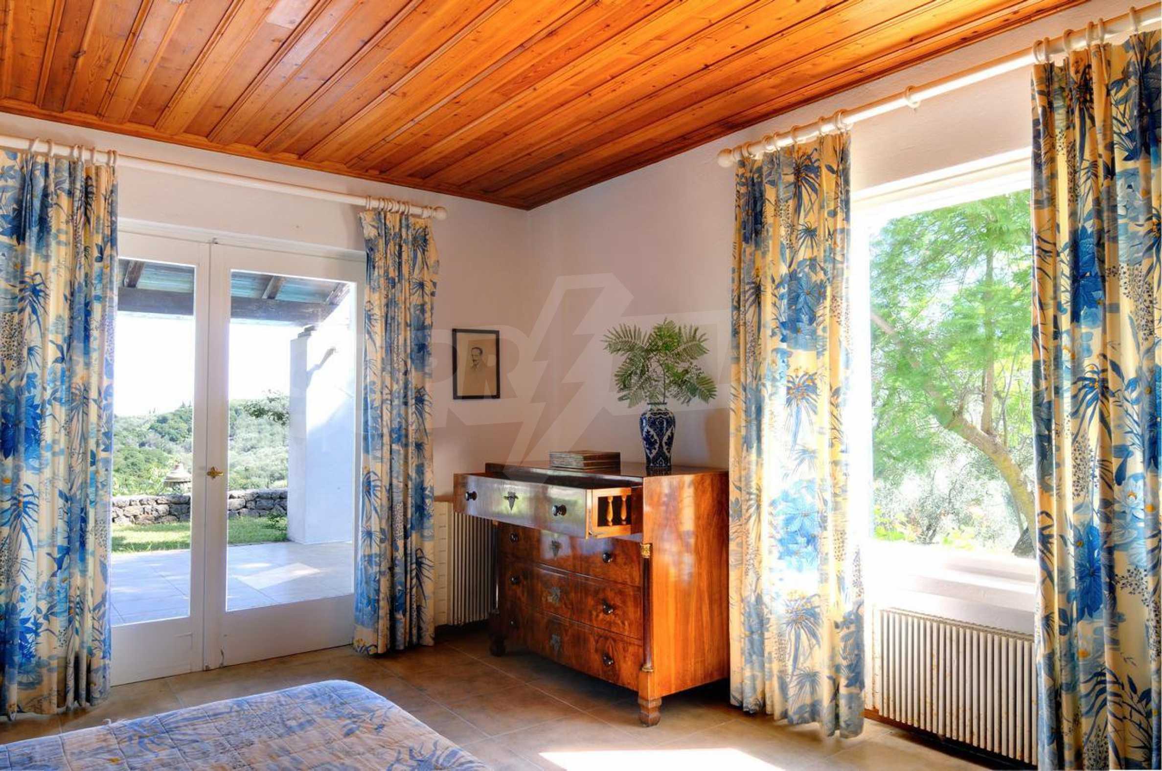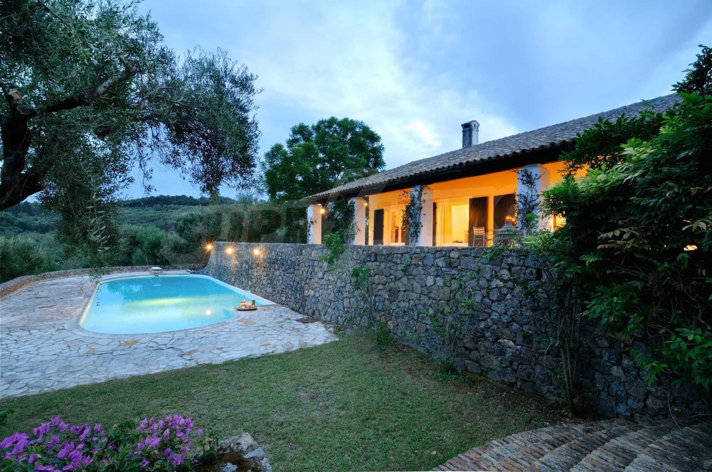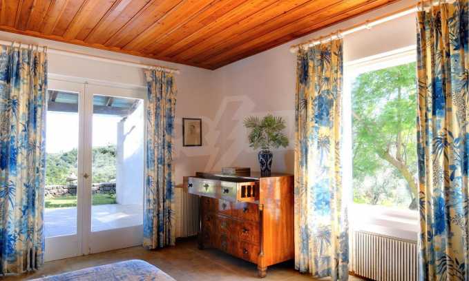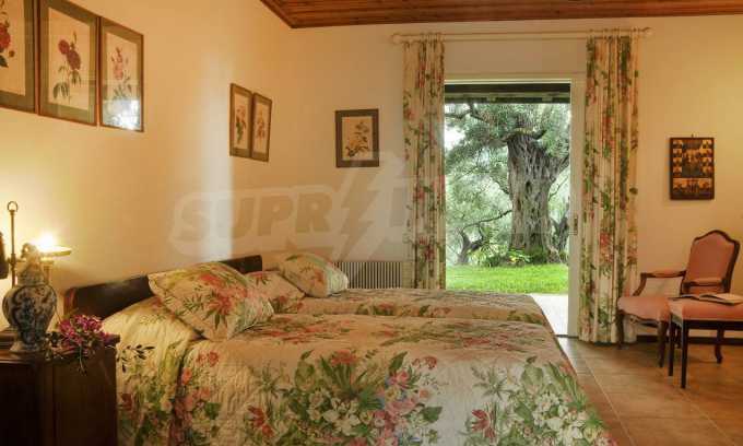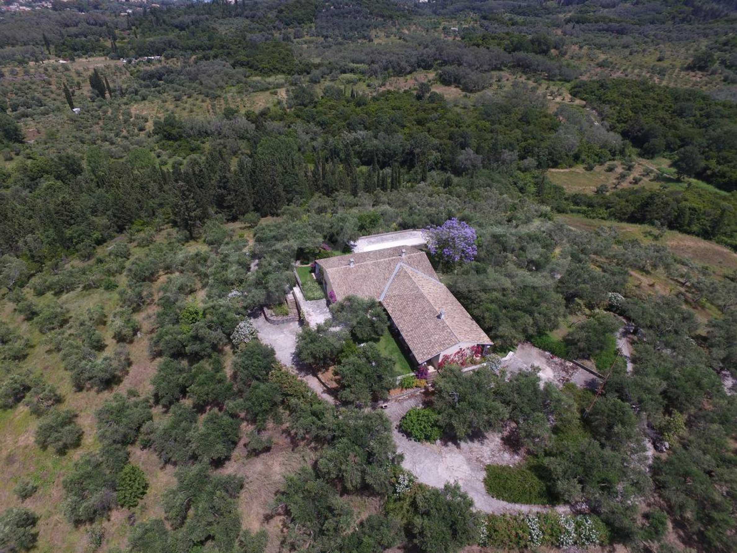 Set amonst the greenery, at the end of a private, shaded driveway, this house boasts peace and tranquility making it the perfect hideaway. The whole property is fenced and gated and set in a lovely position on top of a hill 25km south of Corfu Town with lovely views across the countryside to the sea.