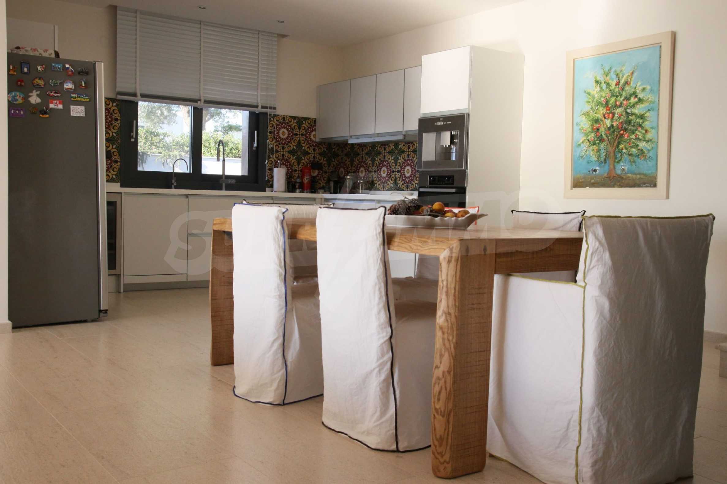 We offer to your attention villa with an area of 300 m2. Construction type: brick Year of construction: 2017 Heating: Local heating. The property comes with the following degree of completion: aluminum joinery. The property is supplied with sewage system. It is important to note that the property has: bathroom with toilet, garage, closet, cellar, parking and swimming pool. The property has views of the sea.