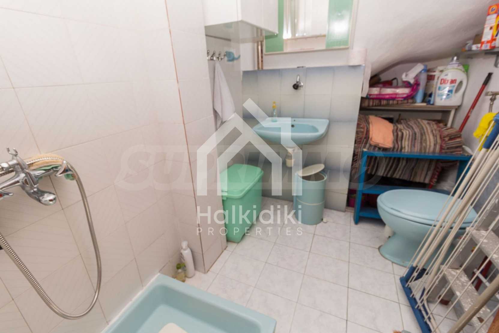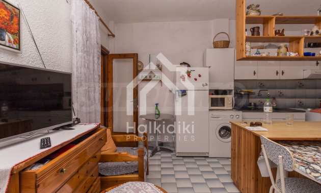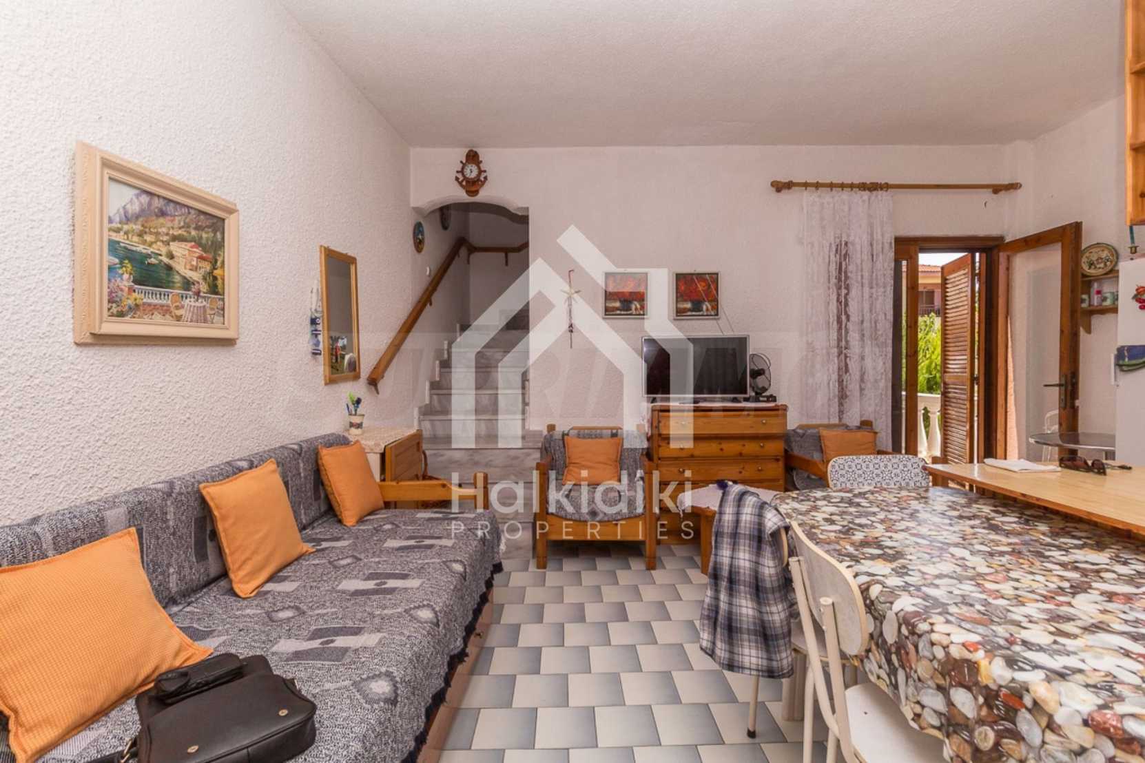 Amazing maisonette, 70 sqm, in the Municipality of Athos, Halkidiki, located very close to a lovely, sandy beach. The house has two levels. The ground floor, 35 sqm, is consisted of a living room connected with kitchen, and the outdoor bathroom. The first floor, 35 sqm, is consisted of the bedroom and the second bathroom. The house has wooden window frames, tiled floor and a marble inside stair, is lighted from side to side, has an outdoor shower, barbecue, large garden 500 sqm, parking lot, a kiosk. It is available for sale with all the furniture and equipment.
