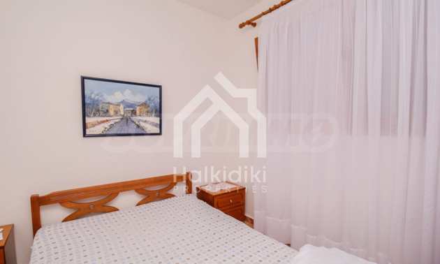 Beautiful maisonette, 80 m,in Athos with unobstructed permanent sea view and an eastern orientation.The property is only 500 m. away from the beach and 2 km. away from the village center.It is split in two levels,consisted of a living room connected with the kitchen,three bedrooms,two bathrooms and two storage rooms.The house has big balconies,automated watering, water tanks,barbecue,heating system pre-installation,PVC joinery and parking spot.The maisonette is fully equipped and furnished.