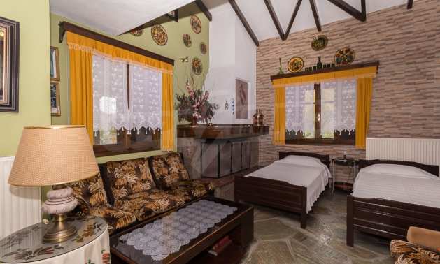 We offer to your attention a house of 265 m2. Year of construction: 1986. Heating with fireplace and central heating. There is air conditioning. The property is offered with the following degree of completion: wooden joinery. The property is supplied with its own water source and septic tank. It is important to note that the property has: balcony, bathroom with toilet, cellar, basement and parking.