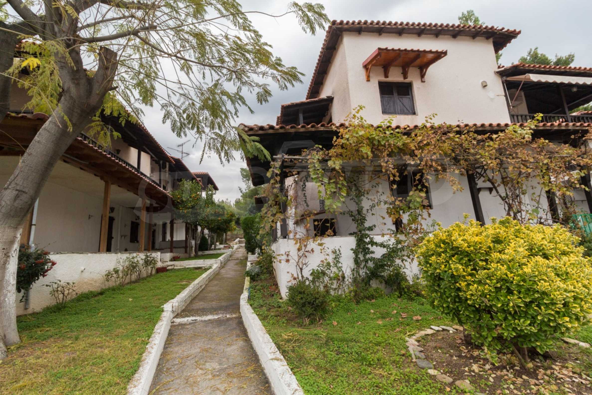 Beautiful maisonette,80 m,in Sithonia with unobstructed permanent view.It is only 50 m. away from an enchanting beach.The property is located in a complex of houses in front of the sea, which was constructed in 1993.It is split in two levels,consisted of a living room connected with a kitchen,three bedrooms and two bathrooms.The maisonette has stone floors,wooden joinery,air conditioning,modeled outside spaces and a spacious garden.