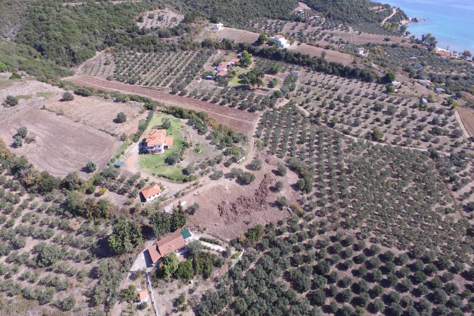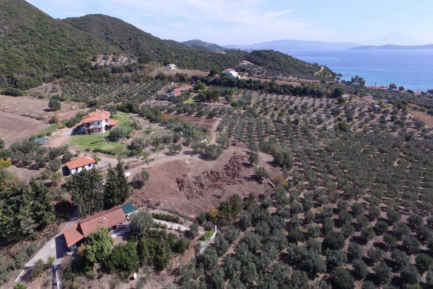 Field, 4300 m, in Athos with unobstructed permanent view and an eastern orientation.The corner property is only 500m away from the sea and is located outside the village.It is fenced and has a beautiful olive grove.The field is perfect for a residential construction.