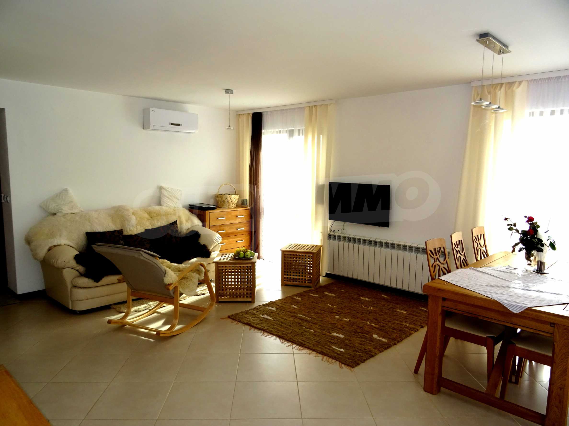 The house has an area of 173 m2 and is located on a plot of 867 m2. It is offered for sale fully furnished and equipped. The heating is with air conditioning and a fireplace. In the yard there is a summer kitchen, barbecue and fruit trees.