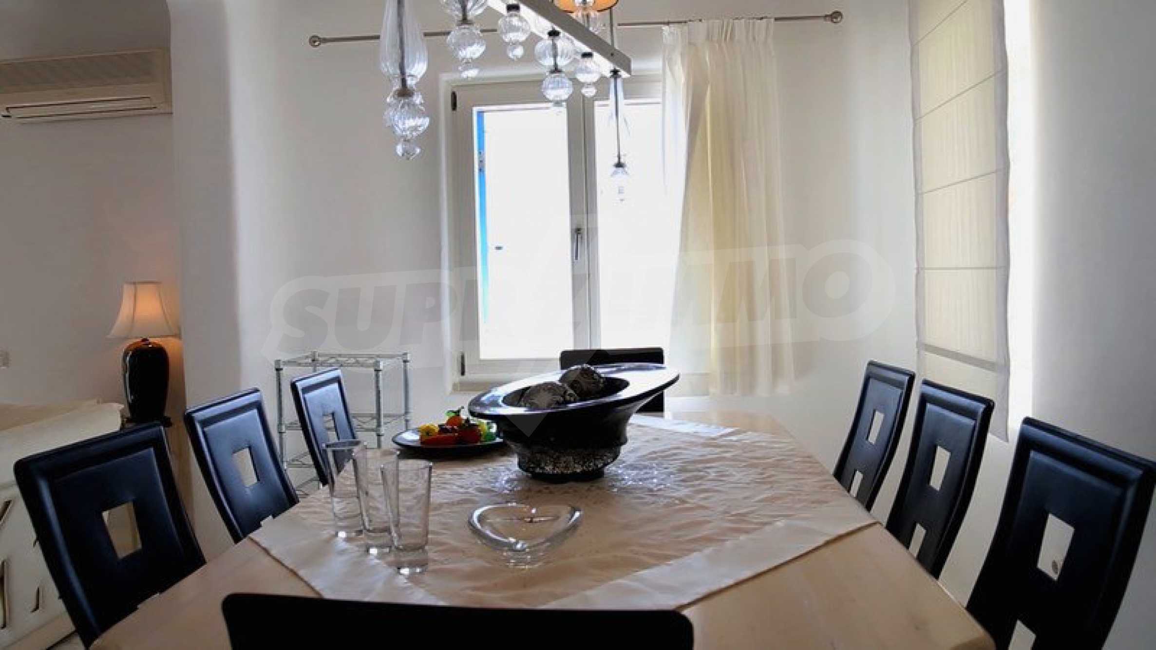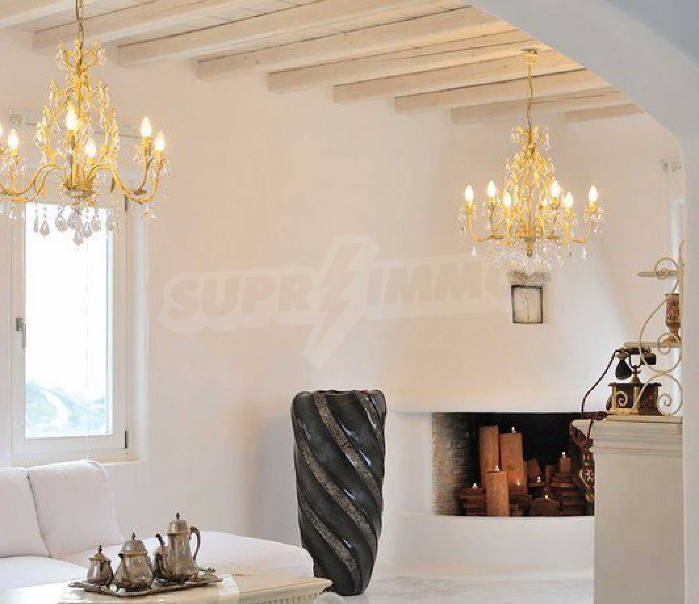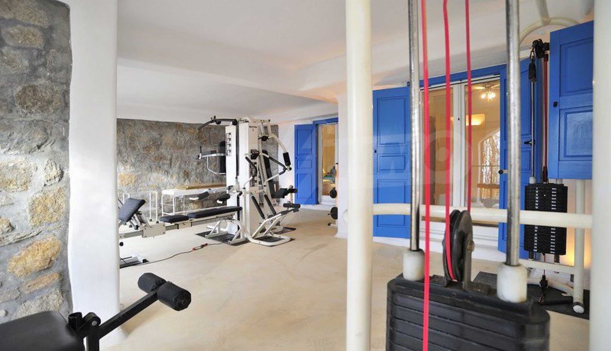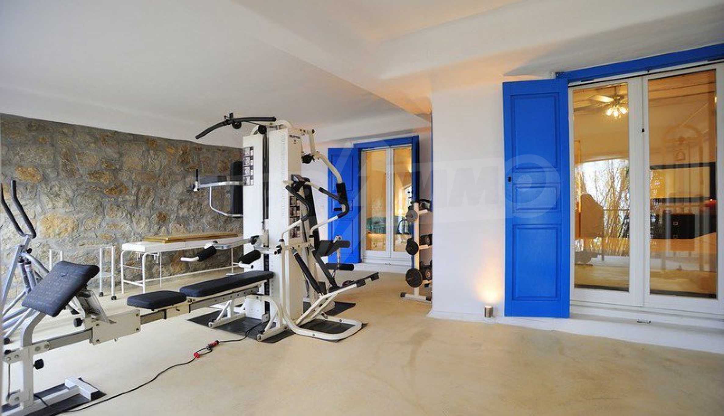 We offer you this house with a total area of 250 m2. Aluminium window frames, external insulation, interior doors, internal insulation, natural stone flooring and painted walls are available in the property. The property is connected to electricity, communal water supply and water. Some of the other available facilities that you will certainly consider important include: a balcony, a balcony, a bathroom, a bathroom with toilet, a parking space, a toilet, a veranda, a gym, a jacuzzi, a swimming pool, a cable tv, internet and a satellite tv. From the inside you will be able to enjoy wonderful sea views, swimming pool views and views to inner garden.