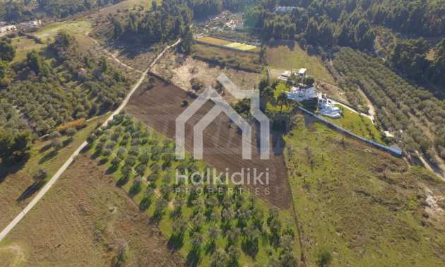 Flat,corner field, 5000 m,in Kassandra,Halkidiki,with an eastern orientation and with unobstructed permanent view.The property is only 850m. away from the beach and 3,5 km. away from the center of the village.There is also an olive field inside.The field is perfect for the construction of a villa or detached houses.