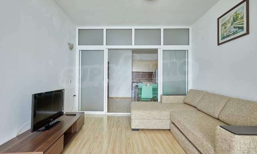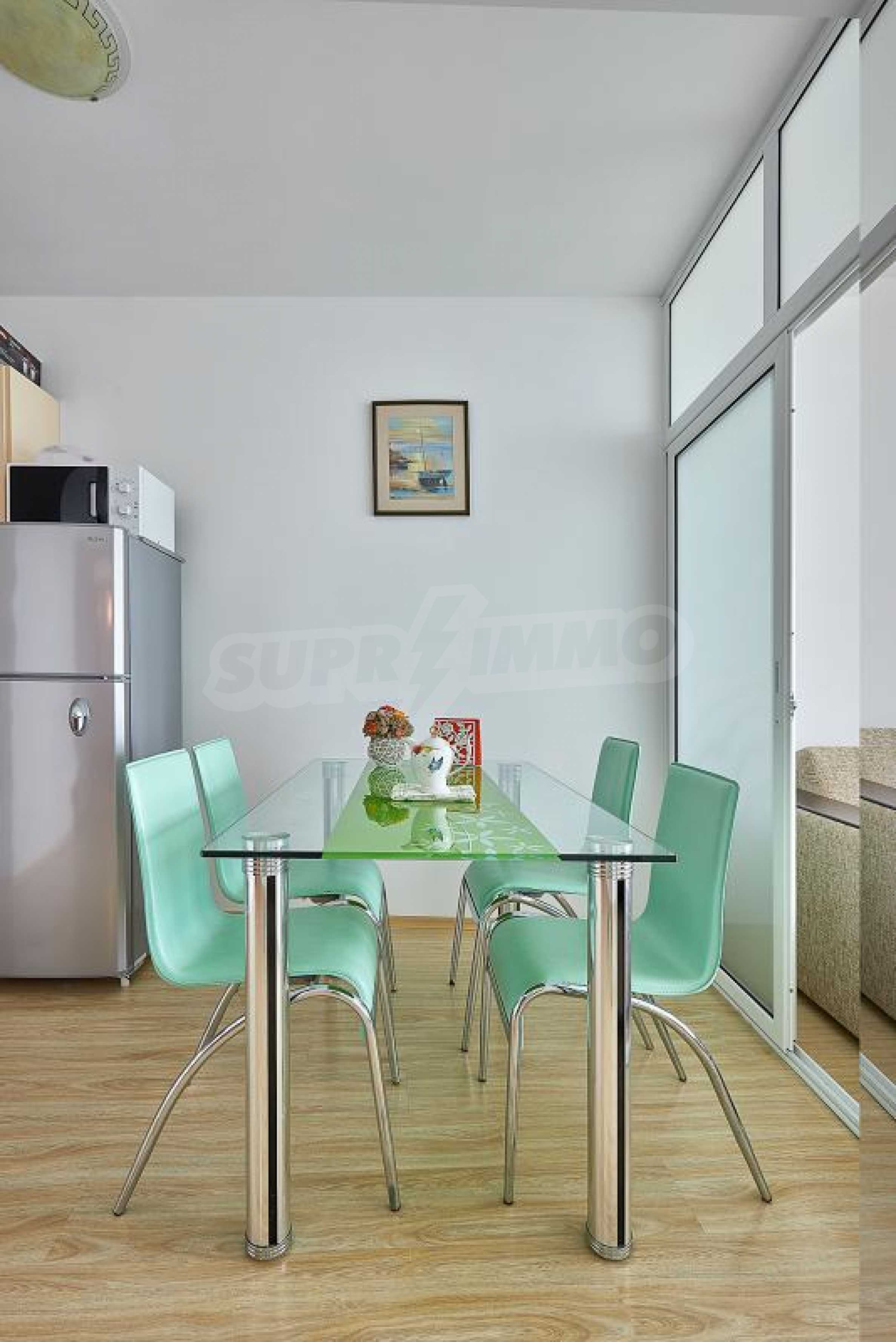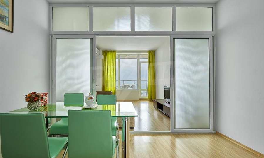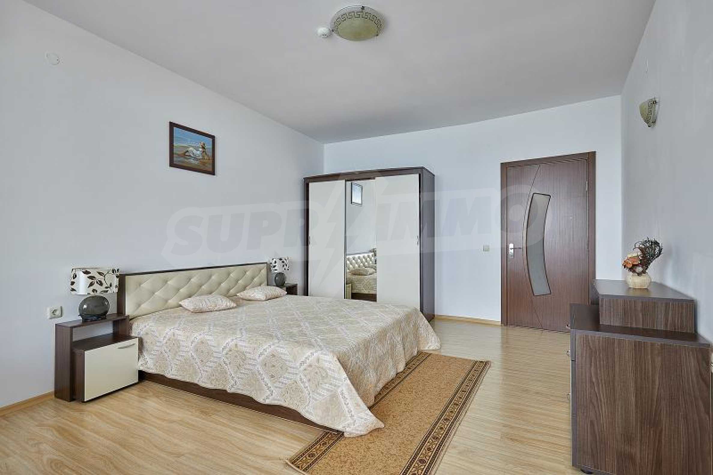 We offer you this 1-bedroom apartment with a total area of 110 m2 which is situated in a gated development. The property has air-conditioners. Laminate flooring and upvc window frames are available in the property. The furniture and appliances that are available include: a built-in kitchen, an electric boiler, a fridge and a washing machine. The property is connected to electricity and communal water supply. Some of the other available facilities that you will certainly consider important include: a balcony, a bathroom with toilet, an open-air parking lot, a swimming pool, a cable tv and internet. From the inside you will be able to enjoy wonderful beach views, sea views, swimming pool views and views to inner garden.