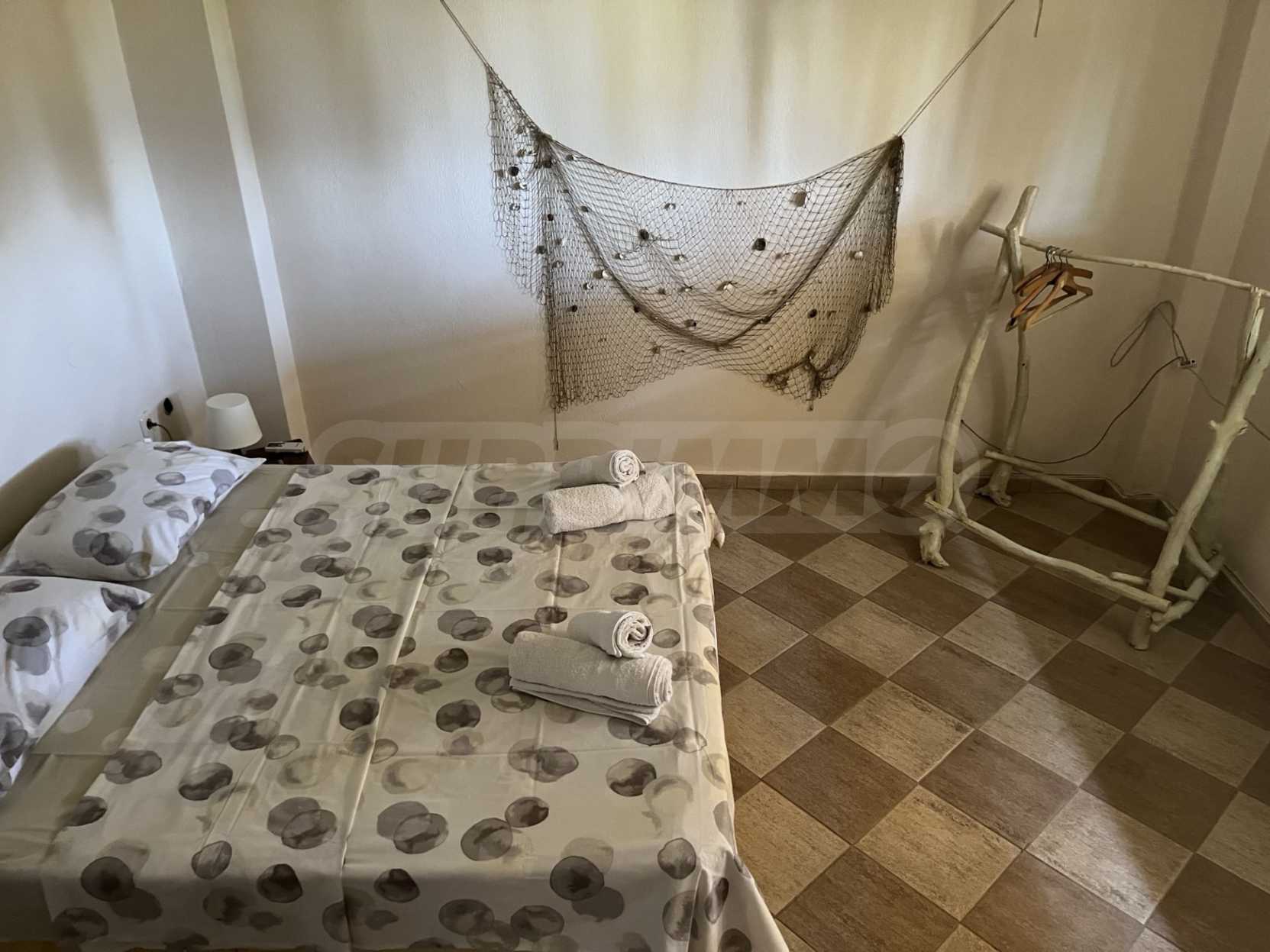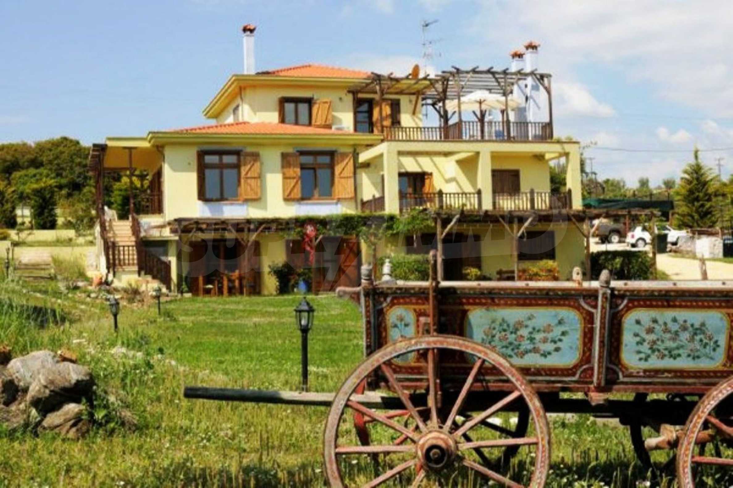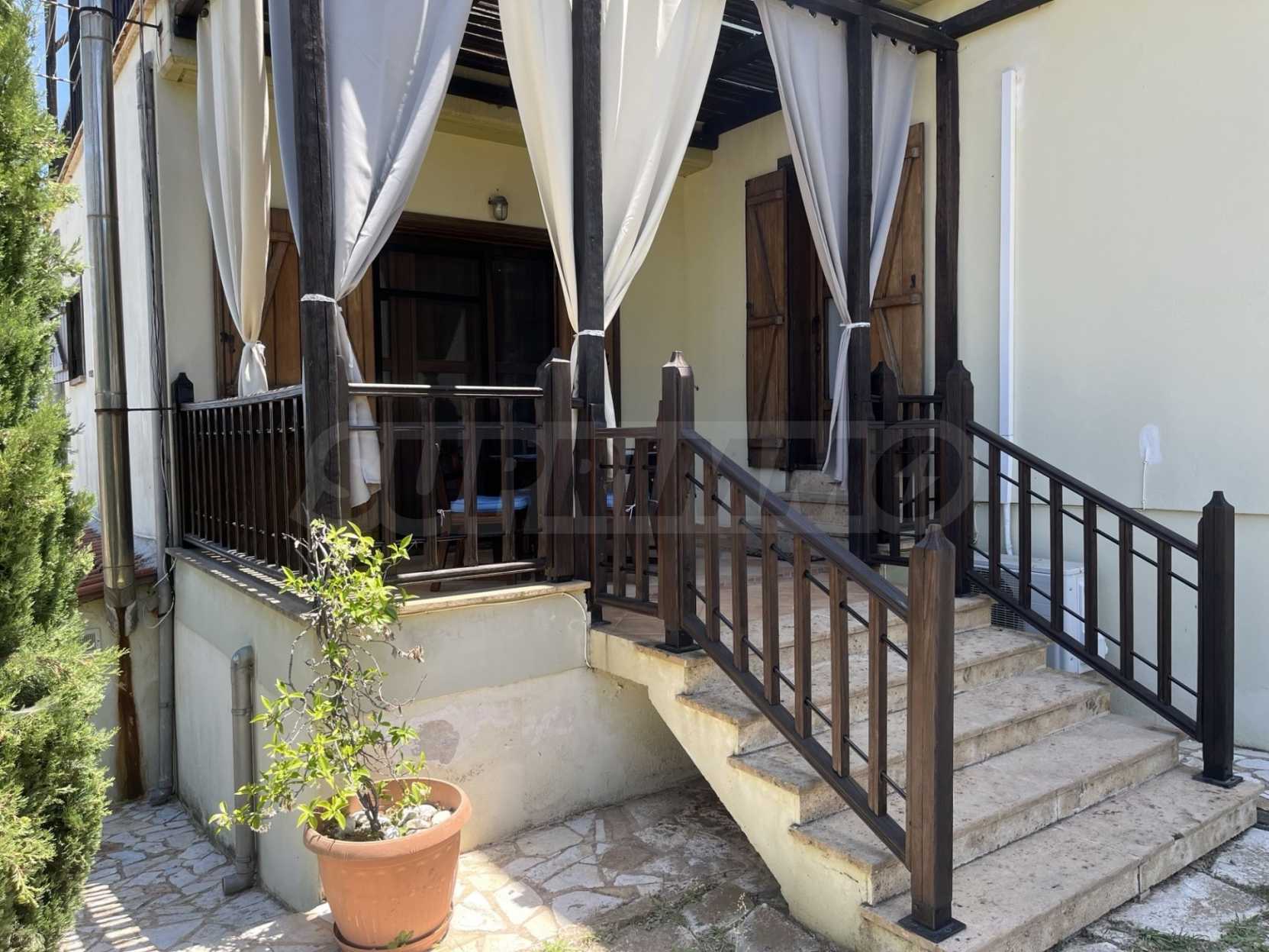 We offer to your attention a house of 427 m2. Year of construction: 2004. Heating is provided by a fireplace, local heating and solar collectors. There is air conditioning. The property is offered with the following degree of completion: armored front door and wooden windows. The property has its own water source and septic tank. It is important to note that the property has: balcony, bathroom with toilet, closet, parking and a cellar. The property has a sea view.