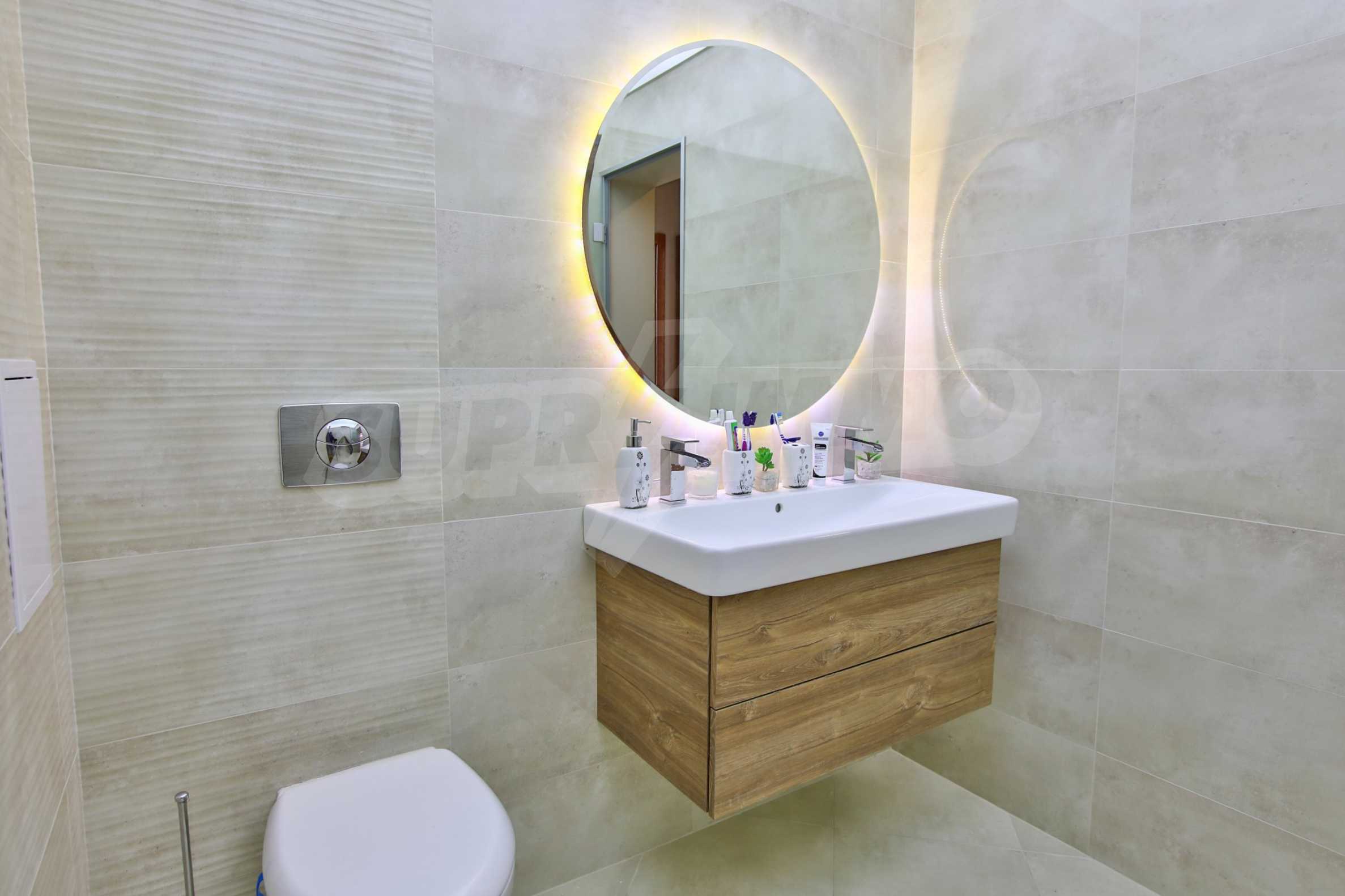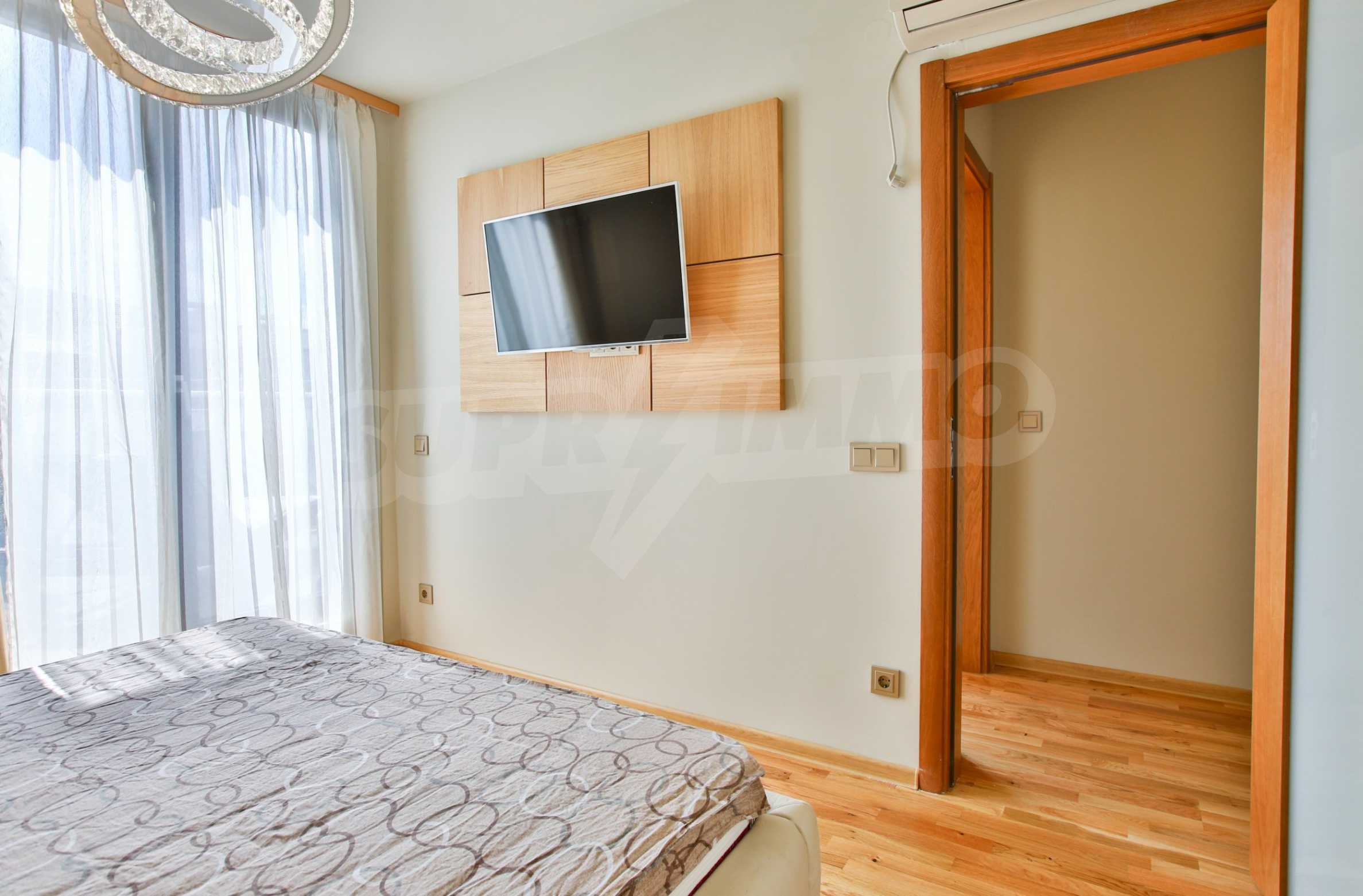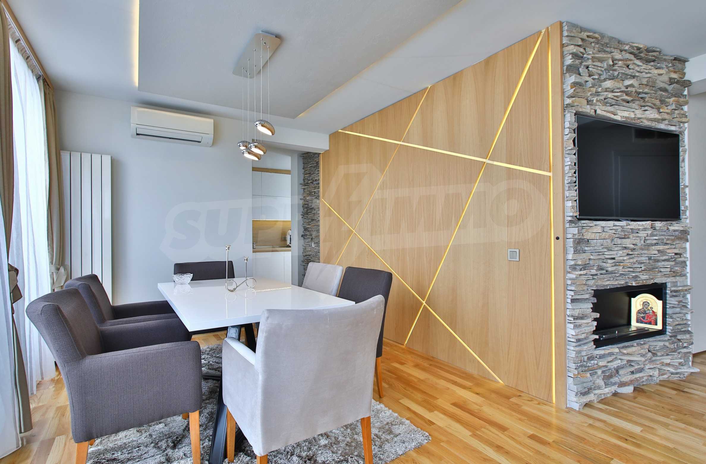 The apartment occupies the fifth floor of a five-storey building. The exhibition is to the south / west / east. The property has a wonderful view towards the mountain and the patio. The apartment impresses with its stylish interior: