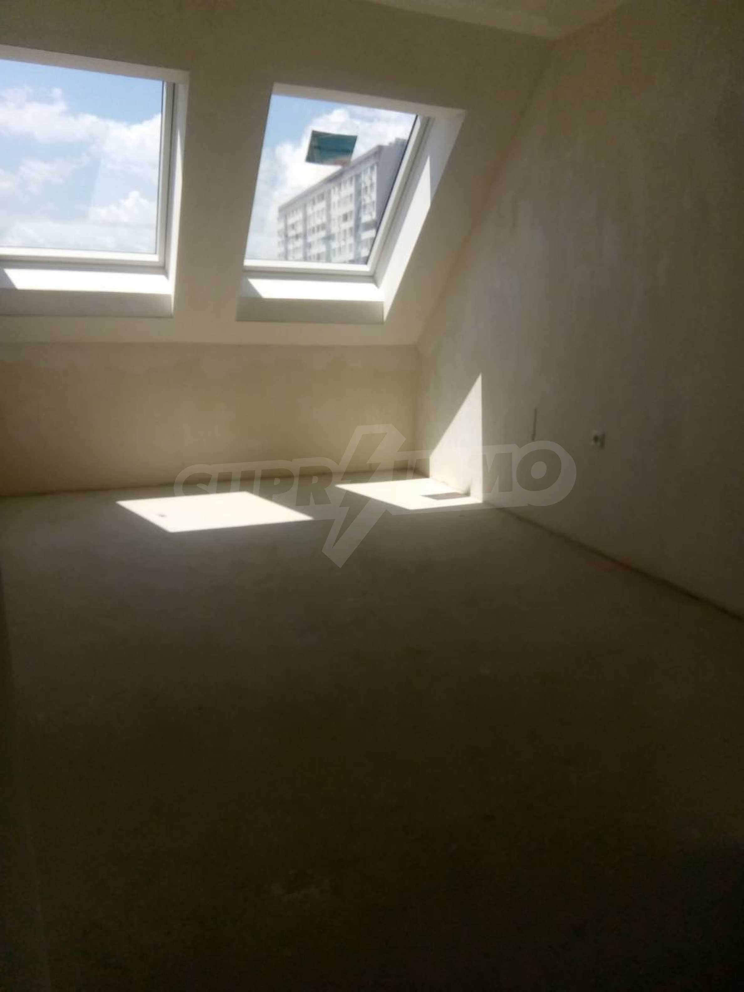 The apartment is offered with quality finishing according to the Bulgarian Standard: plastered walls and cemented floors, electricity and plumbing installations, PVC windows frames, French type, interior and entrance doors, finished terraces.