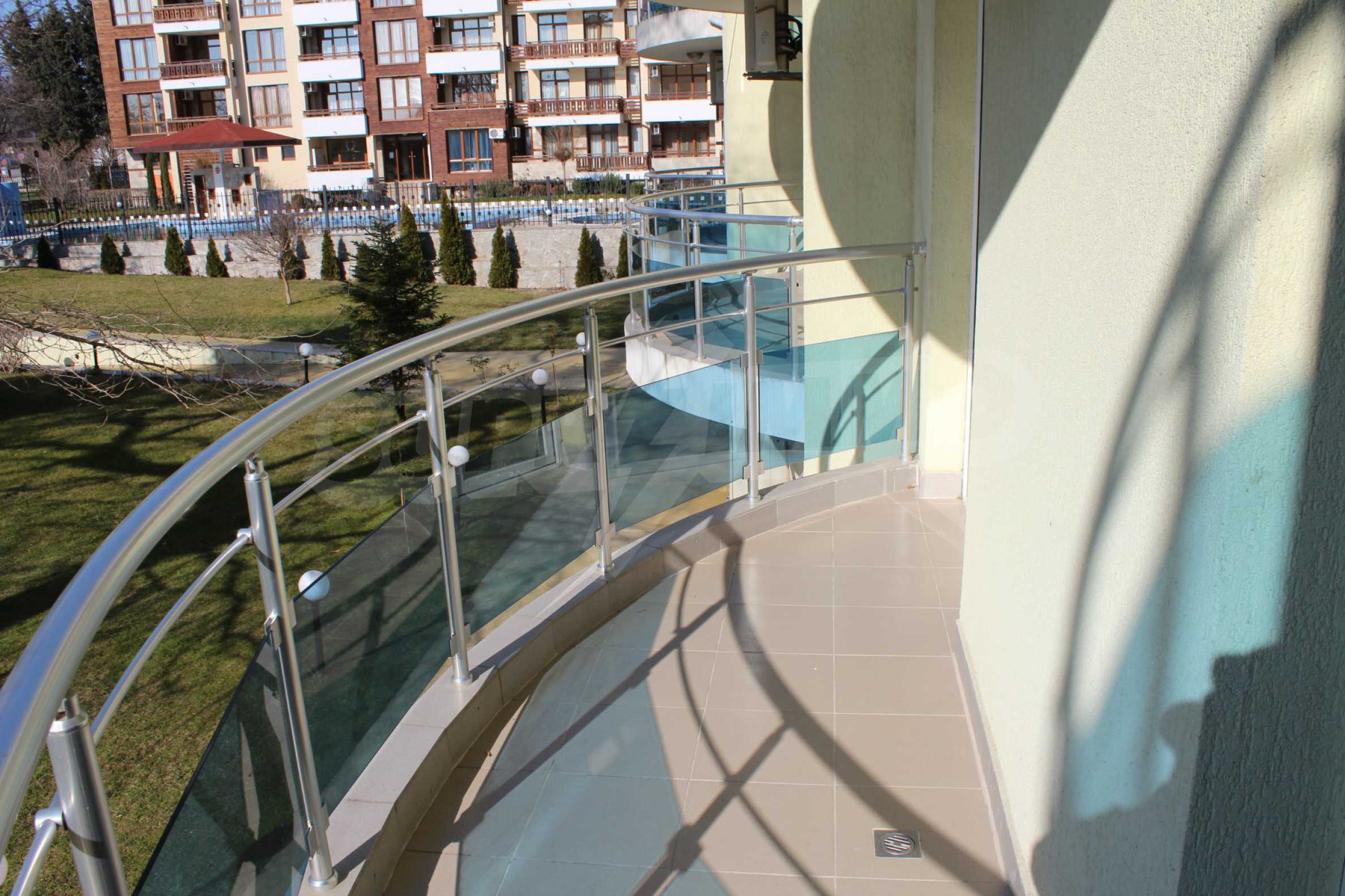 We offer you this 2-bedroom apartment with a total area of 117 m2. The property is supplied with air-conditioners. Laminate flooring, latex painted walls, tiled flooring and upvc window frames are available in the property. The property is connected to electricity and communal sewage system. Some of the other available facilities that you will certainly consider important include: a balcony and a bathroom with toilet. From the inside you will be able to enjoy wonderful park views and swimming pool views.