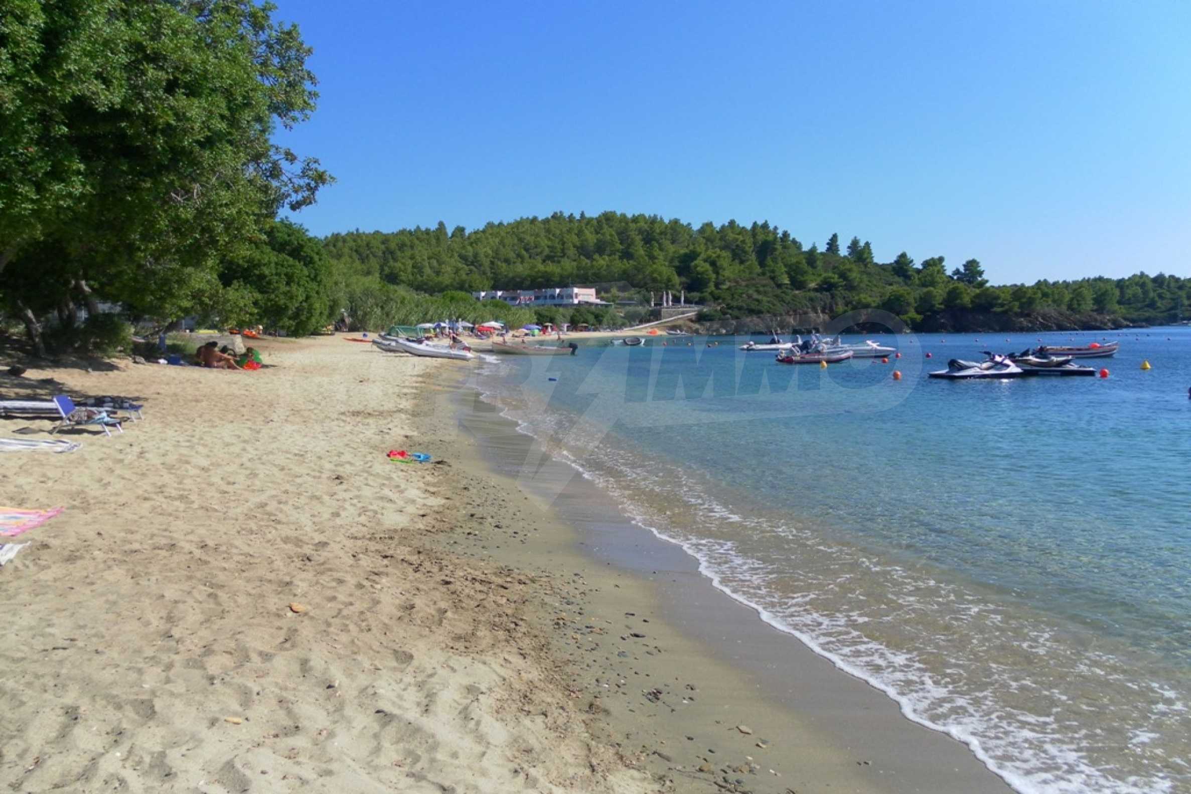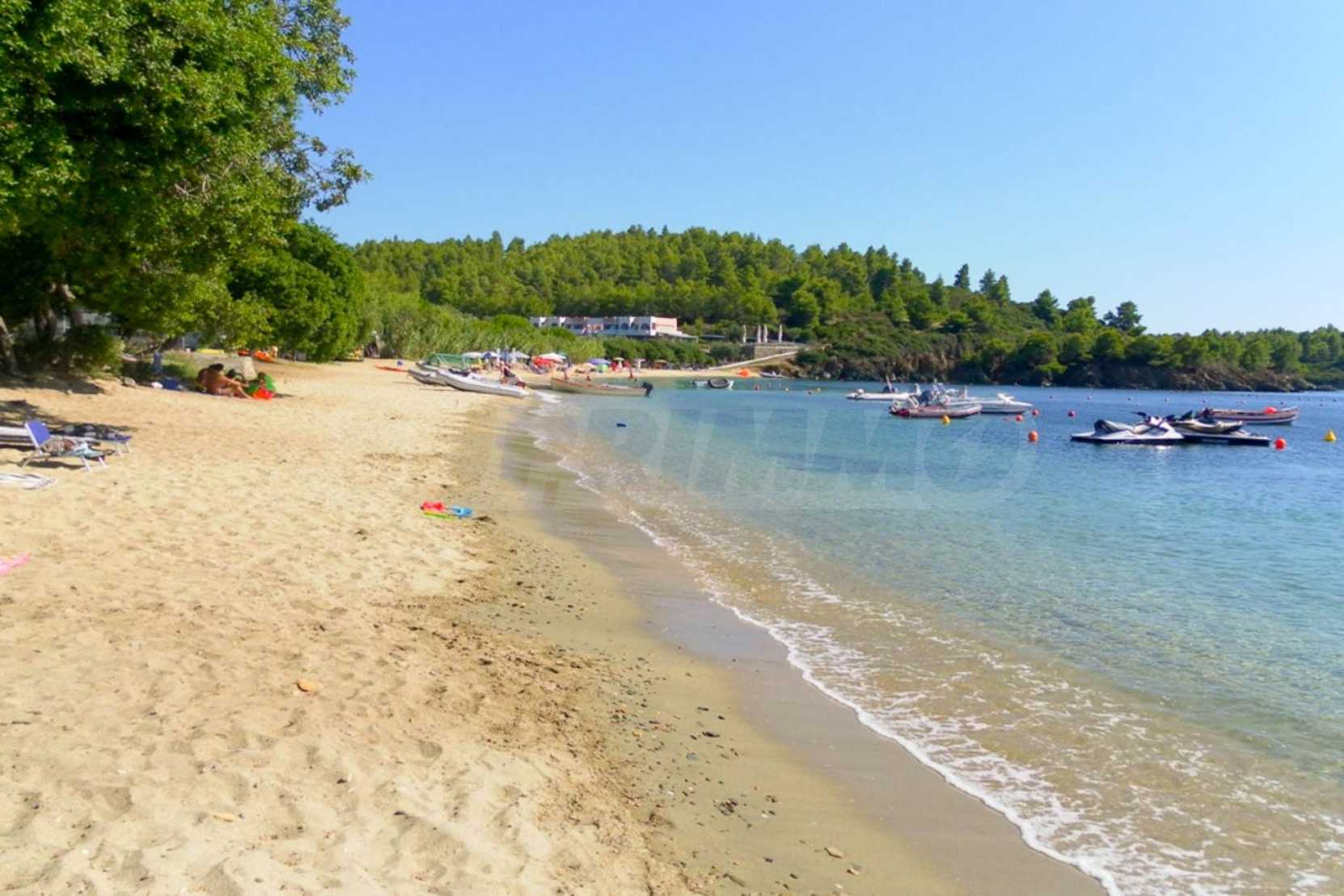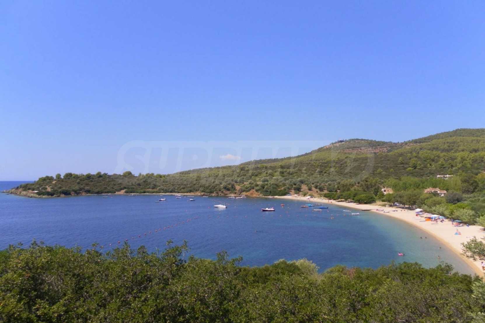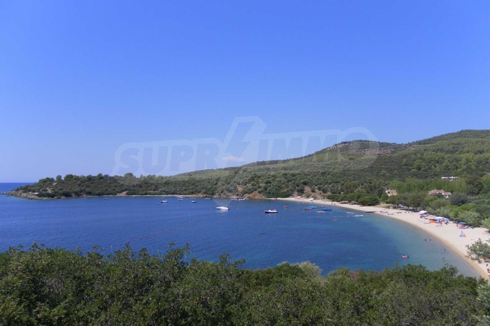Unique field, 4000m,in Sithonia,Halkidiki with a western orientation and with unobstructed permanent view.The property is only 100 m. away from a beautiful beach.The flat field is amphitheatrical and faces the main road.The property is complete,buildable(200m can be built) , is perfect for the construction of a villa or detached houses and professional use.