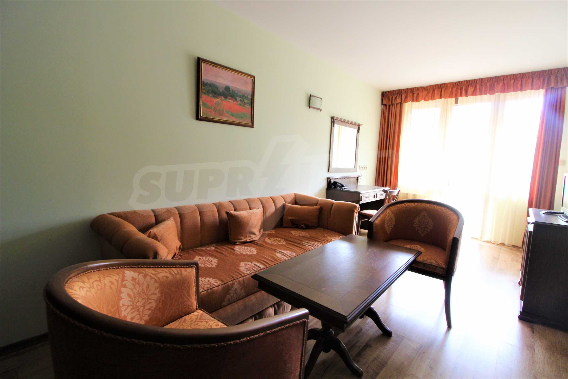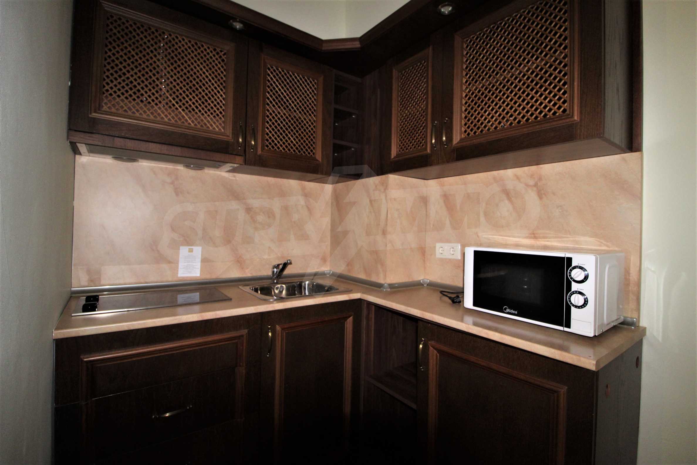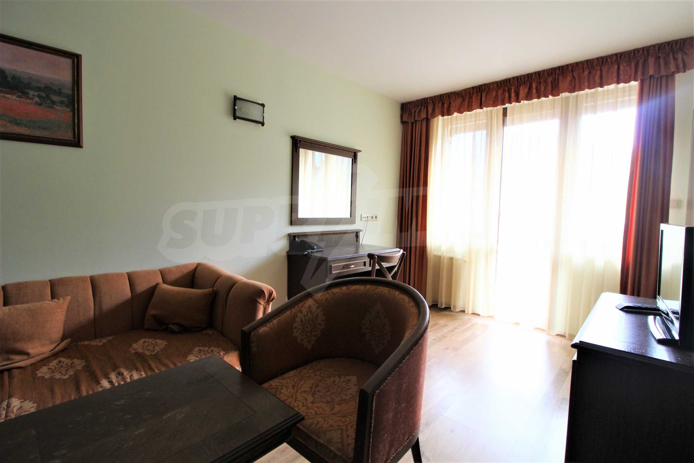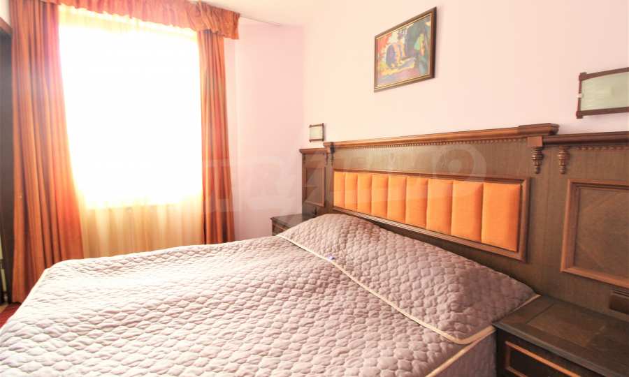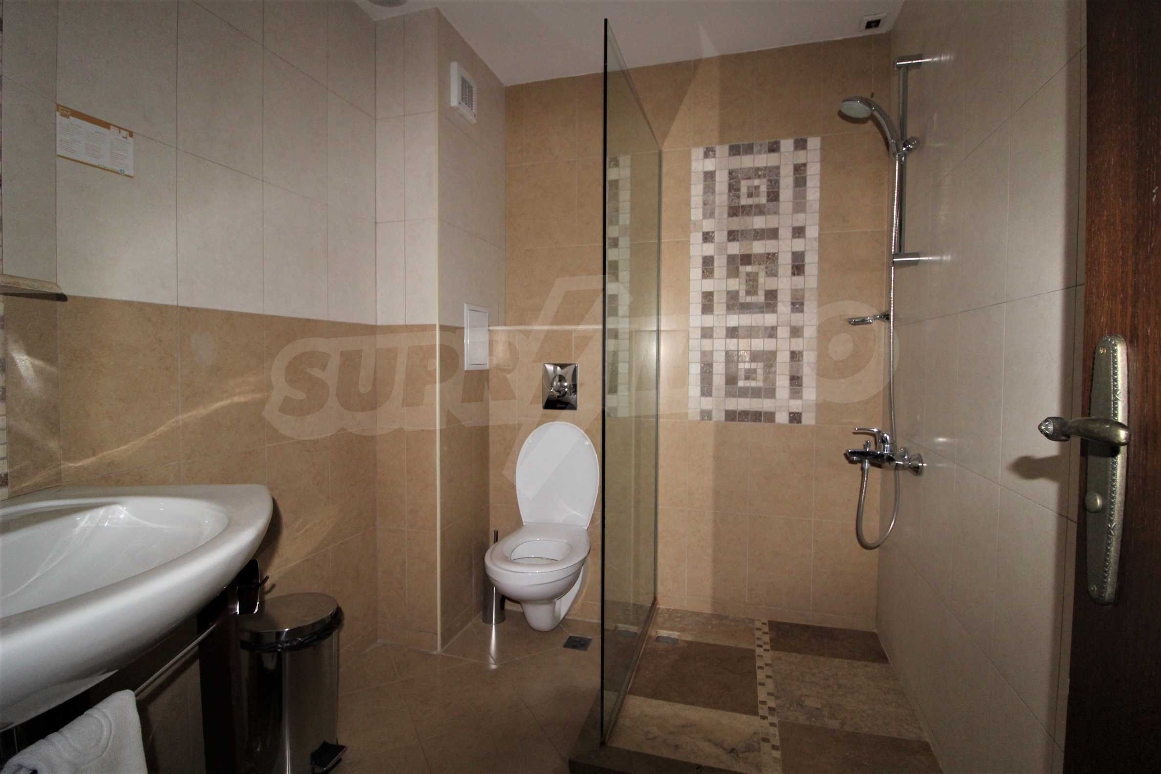 We are happy to present you this one-bedroom apartment with an area of 54.30 sq.m. The property consists of: spacious living room with kitchen, one bedroom, corridor, bathroom, terrace with Mountain view. The property is located on the third floor of a complex with swimming pool, lobby bar, restaurant and SPA center. The apartment is close to the Gondola. The property is suitable for relaxing in all seasons of the year, for permanent living or for renting. The stylish furniture in the apartment creates the feeling of luxury and comfort. Exposure: south.