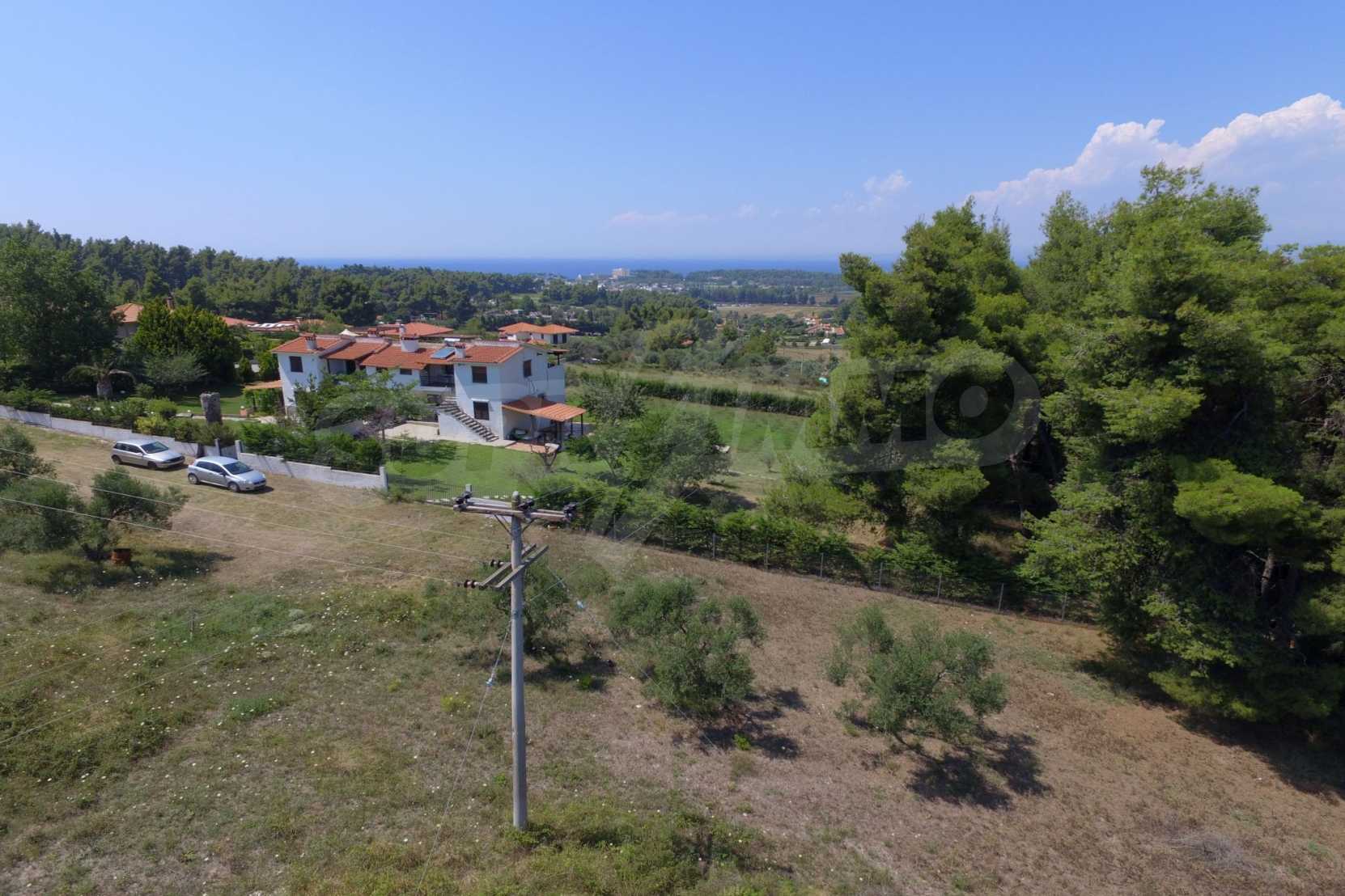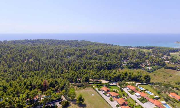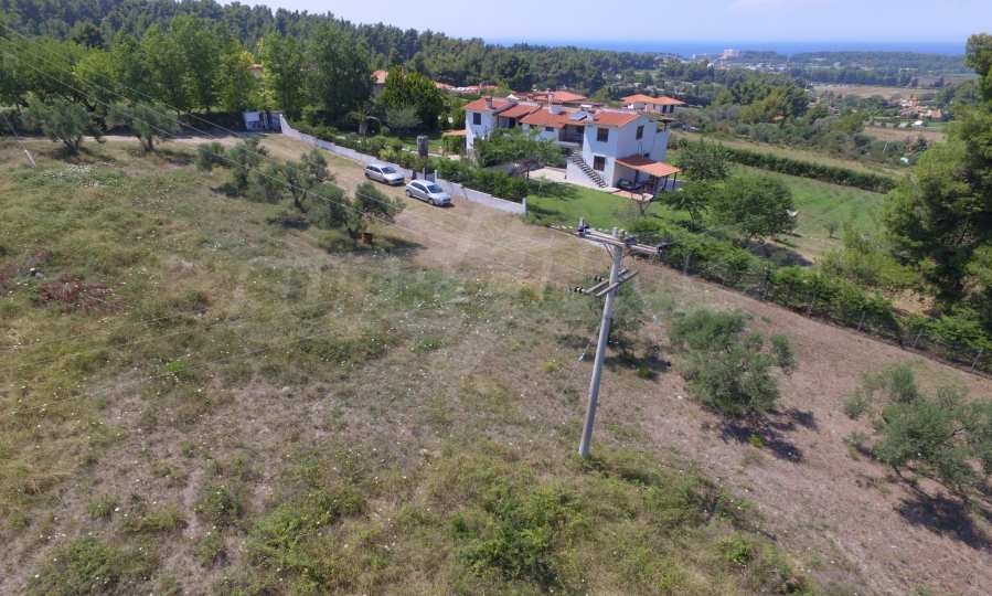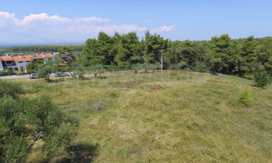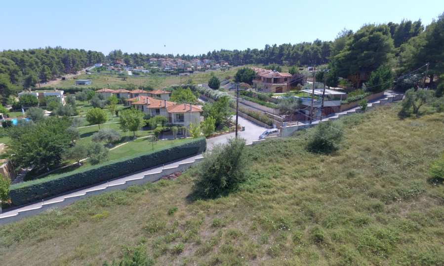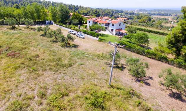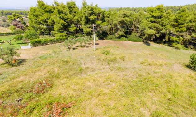 Slanted field, 7000 m, in Kassandra,Halkidiki with unobstructed permanent view and with a northern,western orientation.The property is 1,6 km. away from the beach and is fenced.The field is complete and buildable(200 m can be built).The property is perfect for the construction of a villa or detached houses.