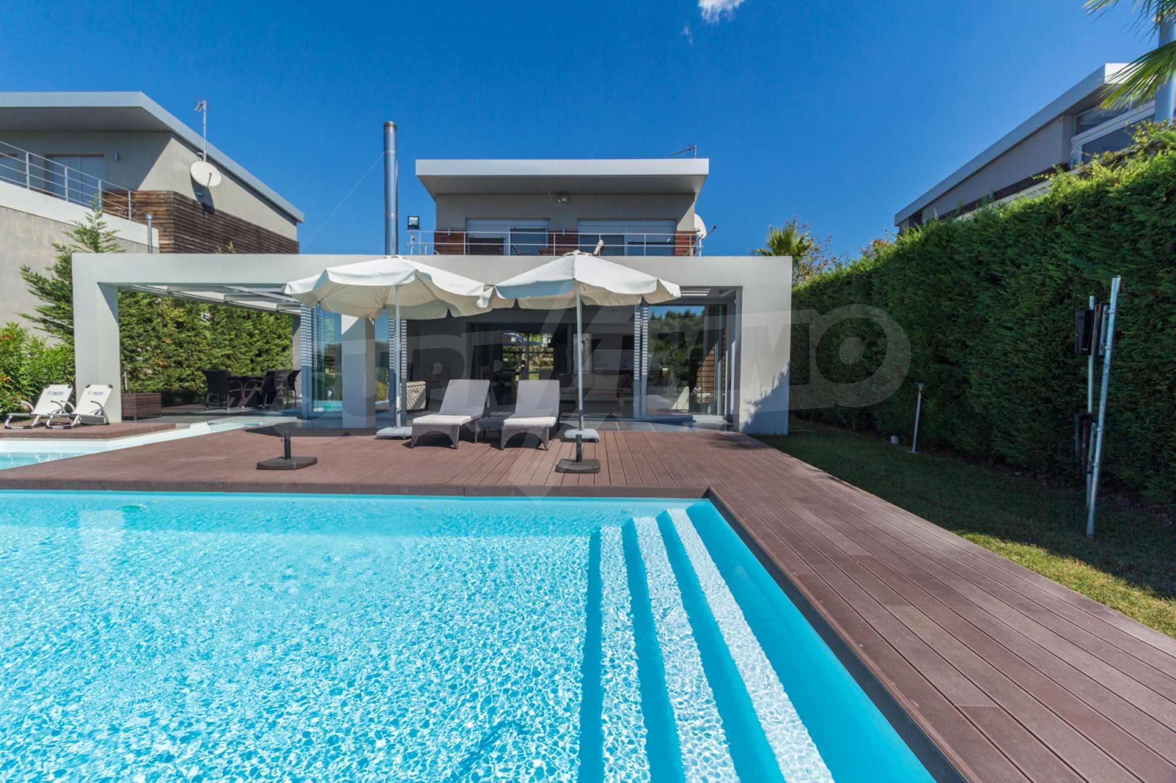 We offer you this house with a total area of 140 m2. It was constructed in 2011. The property has fireplace and local heating. An air-conditioning system - also available. Armored front door are available in the property. The property is connected to septic tank. Some of the other available facilities that you will certainly consider important include: a balcony, a bathroom with toilet, a parking space, a storage room, a swimming pool and a secure entry system. From the inside you will be able to enjoy wonderful sea views.