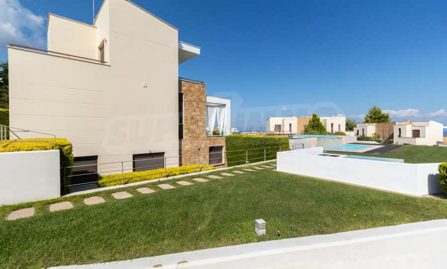 We offer you this villa with a total area of 200 m2. It was constructed in 2010. The property has fireplace and local heating. An air-conditioning system - also available. Aluminum joinery and armored front door are available in the property. The property is connected to own water supply and septic tank. Some of the other available facilities that you will certainly consider important include: a balcony, a basement, a bathroom with toilet, a parking space, a storage room, a swimming pool and a secure entry system. From the inside you will be able to enjoy wonderful sea views.