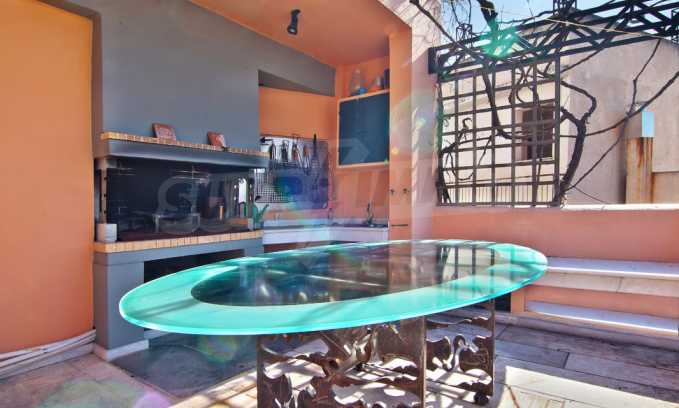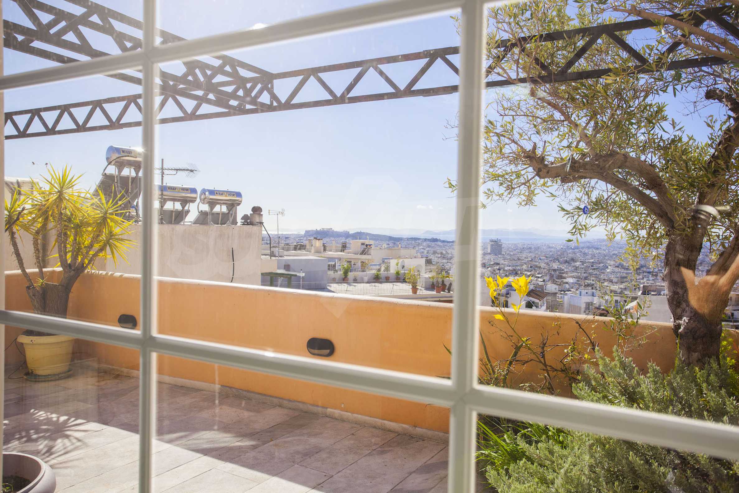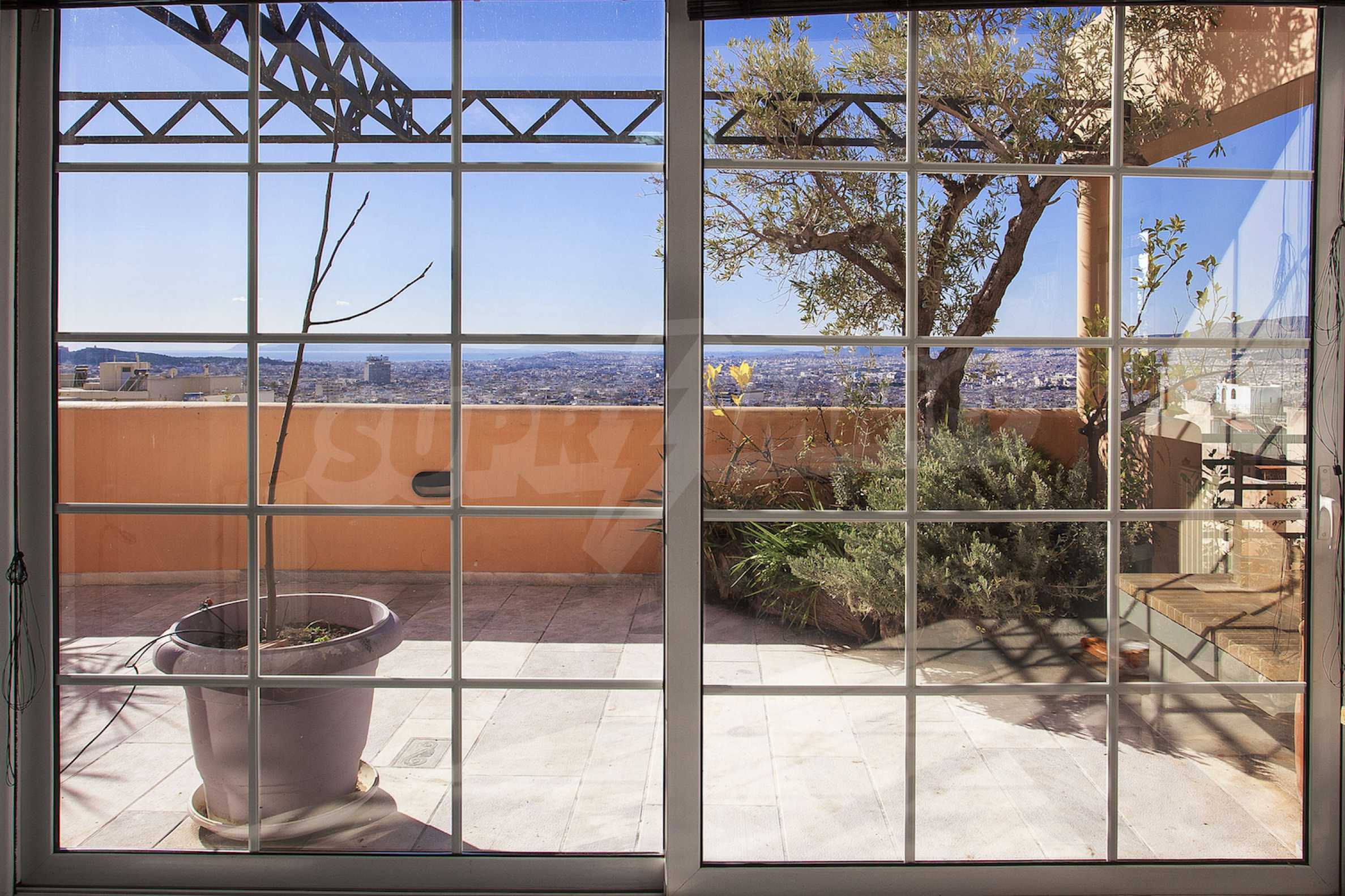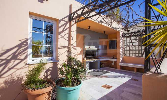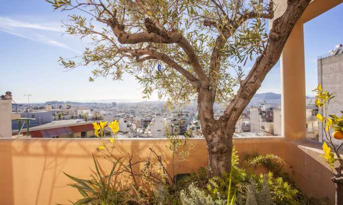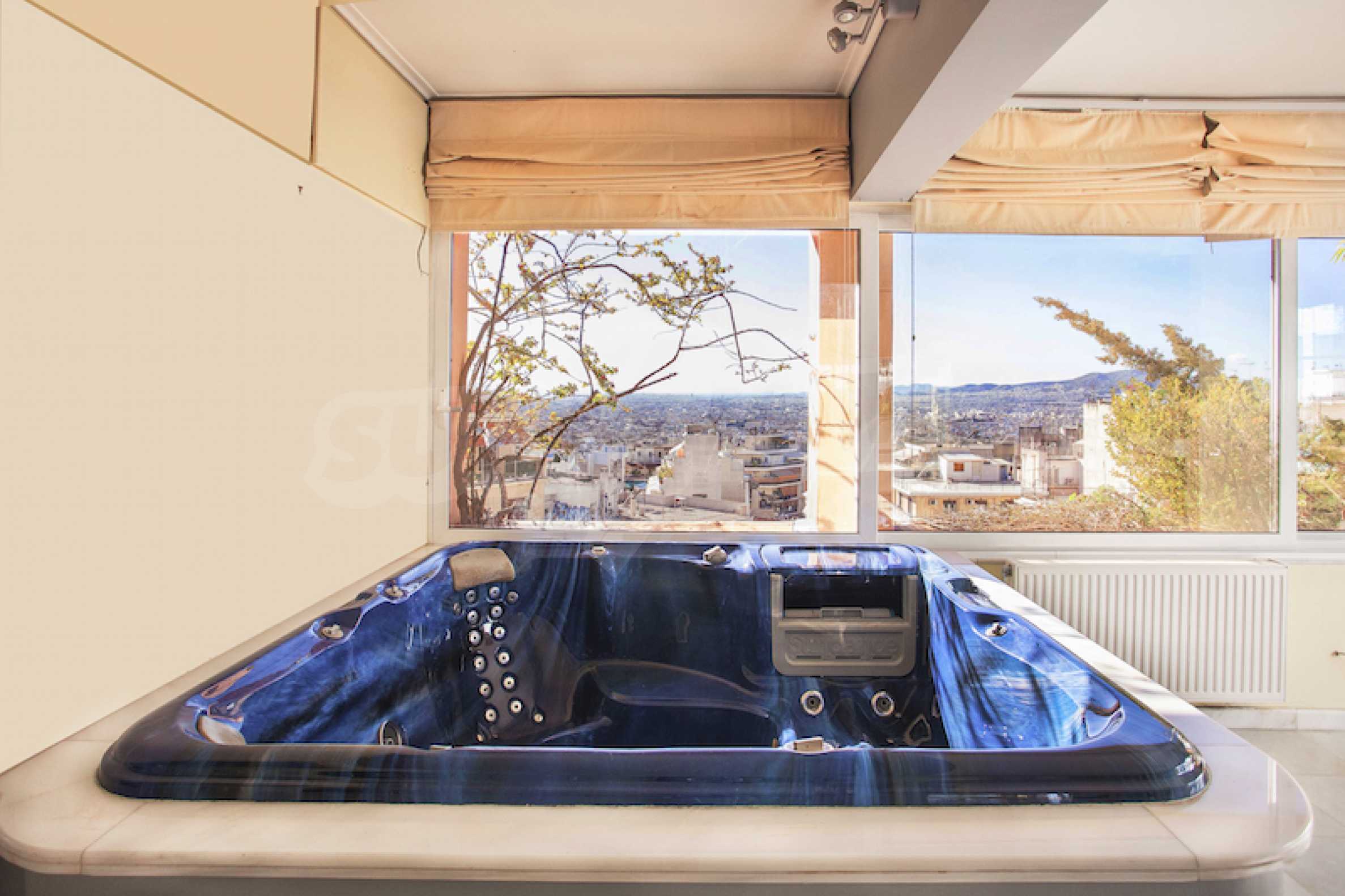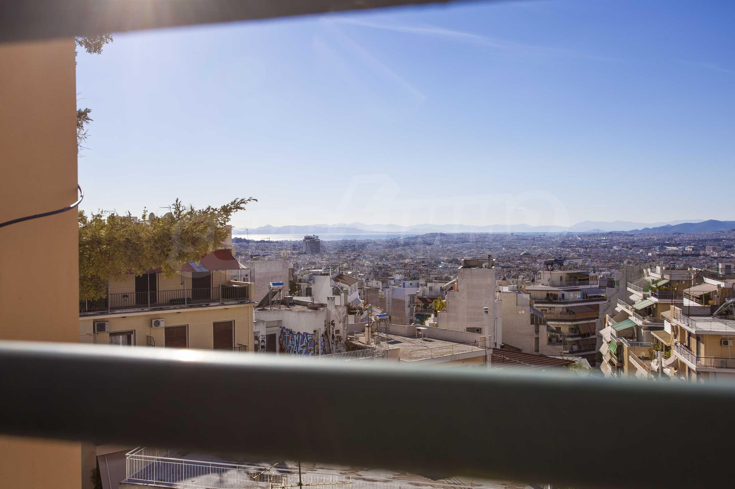 The fourth floor has an area of 22 sq.m and consists of an open-plan living room with large windows and a fireplace. The main house has a veranda with a built-in barbecue and a rock garden with trees and herbs. It overlooks the Acropolis, the sea and Piraeus. The building also has:
